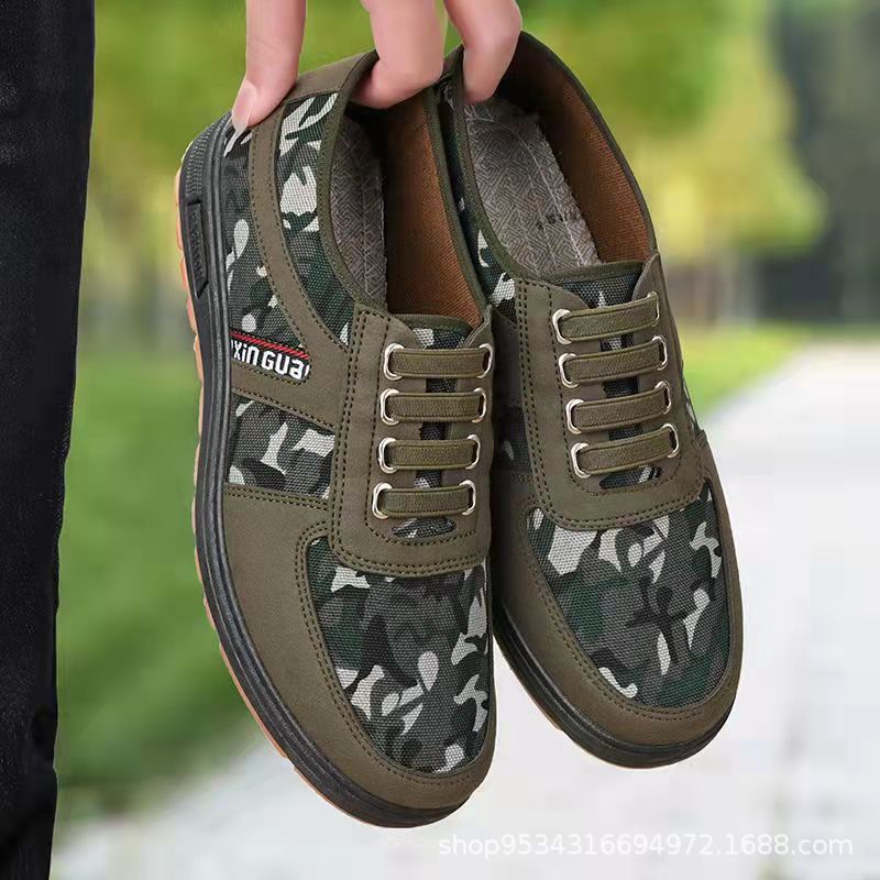 새로운 올드 베이징 천 신발 슬립온 남성 신발 4 개의 힘줄 플랫 바닥 중년 및 노인 아빠 신발 도매 주문 남성 슈퍼마켓