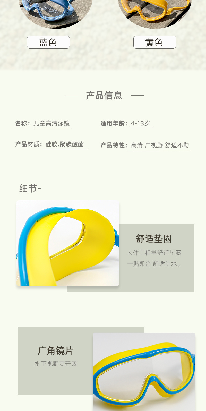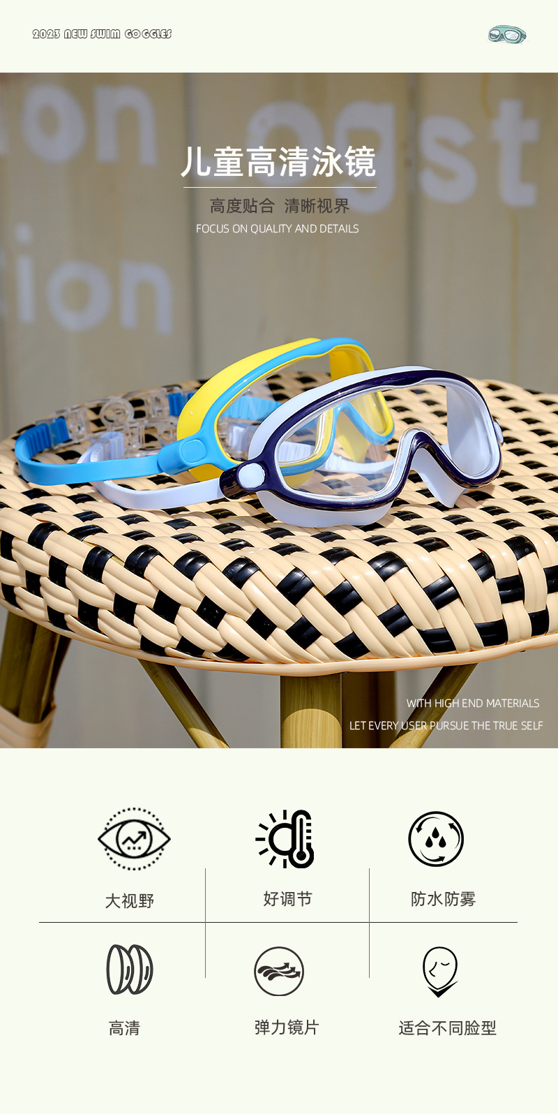 儿童泳镜高清防水防雾游泳大框眼镜男女童专业游泳训练潜水套装备