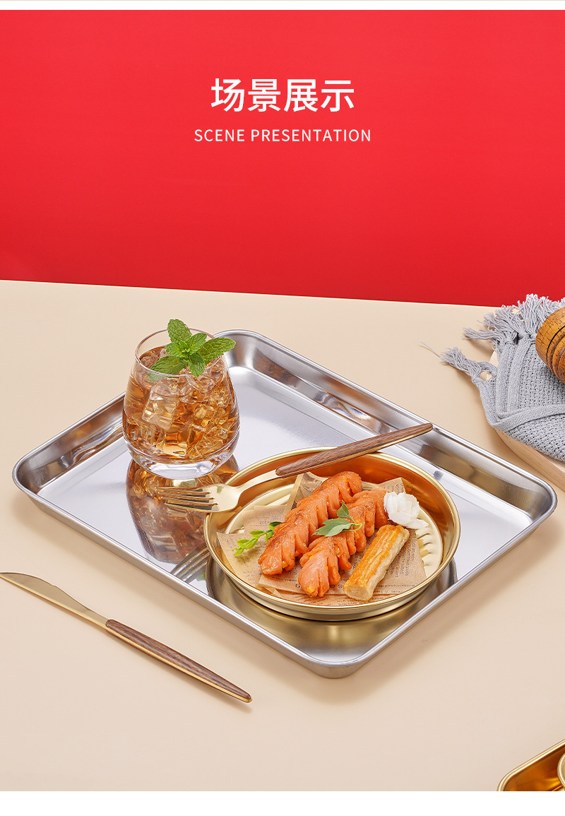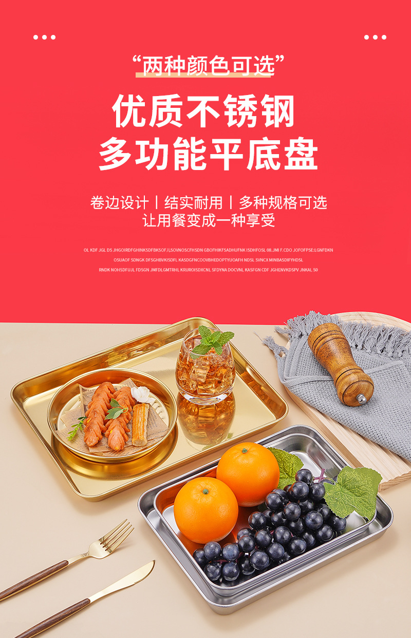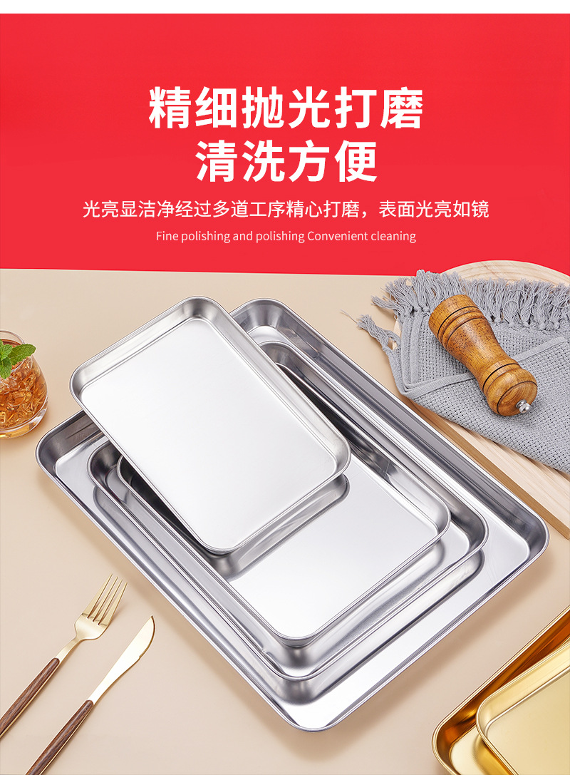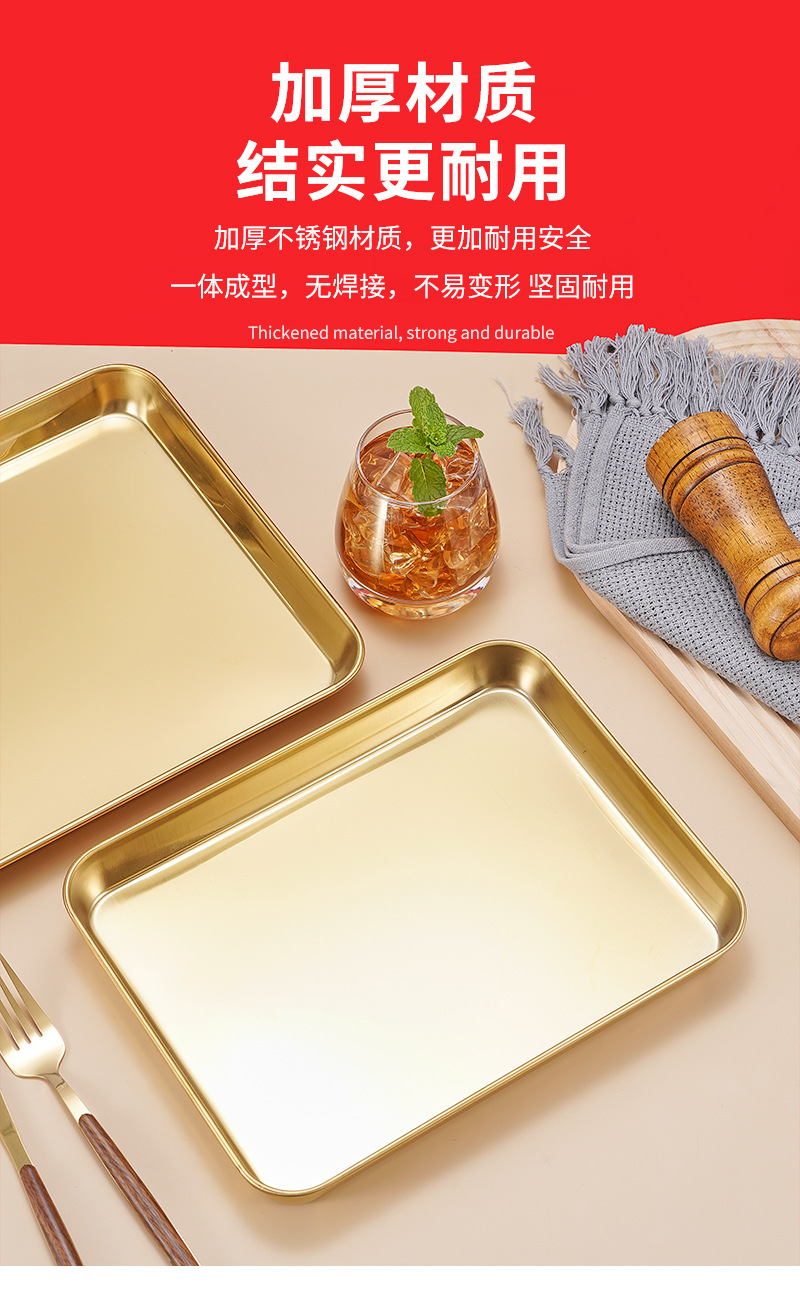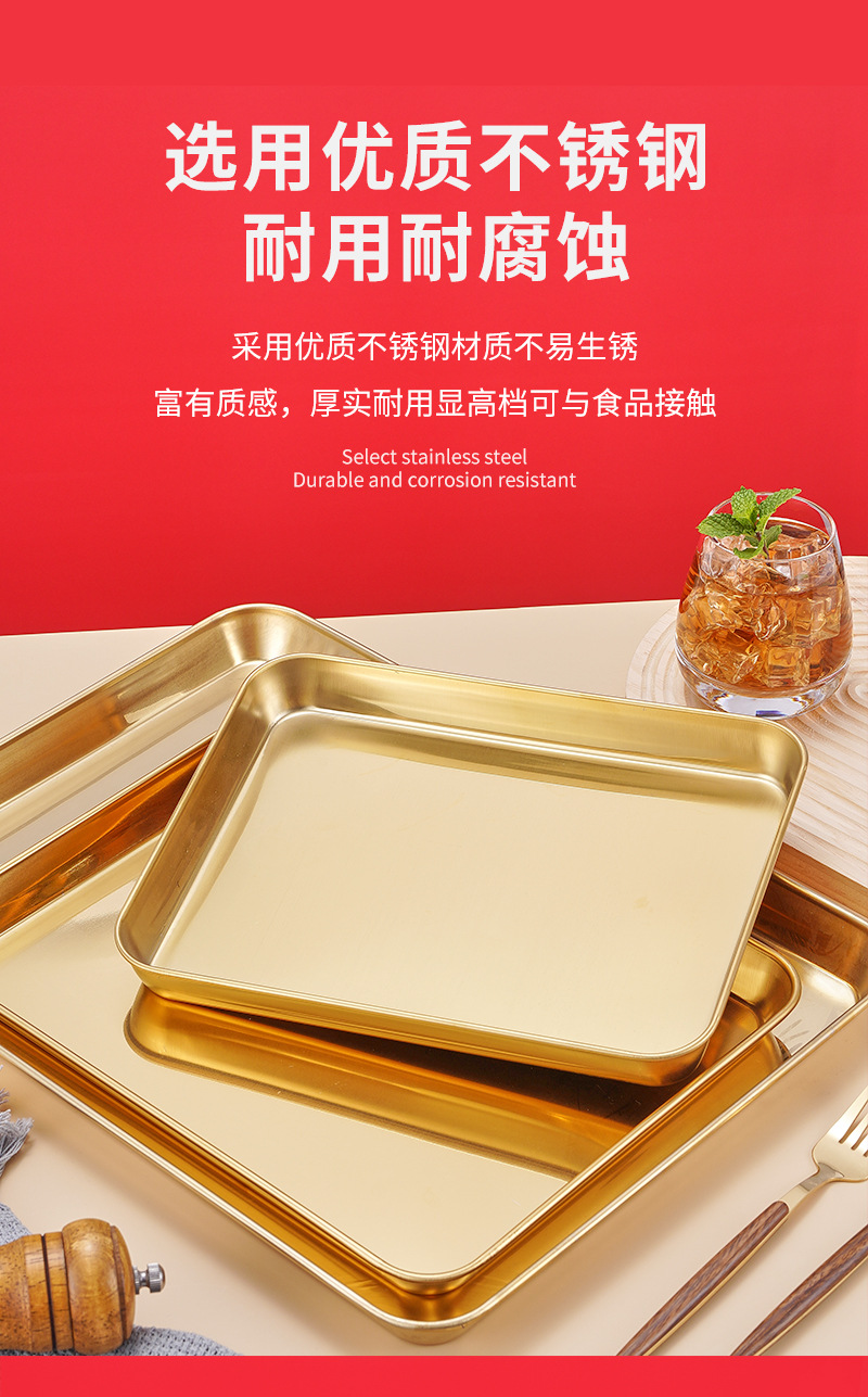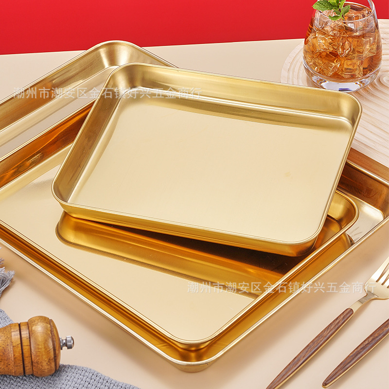 가정용 쌀 창자 특수 스팀 플레이트 직사각형 스테인레스 스틸 황금 플레이트 플랫 바닥 트레이 시원한 피부 분말 플레이트 도구 세트