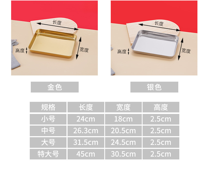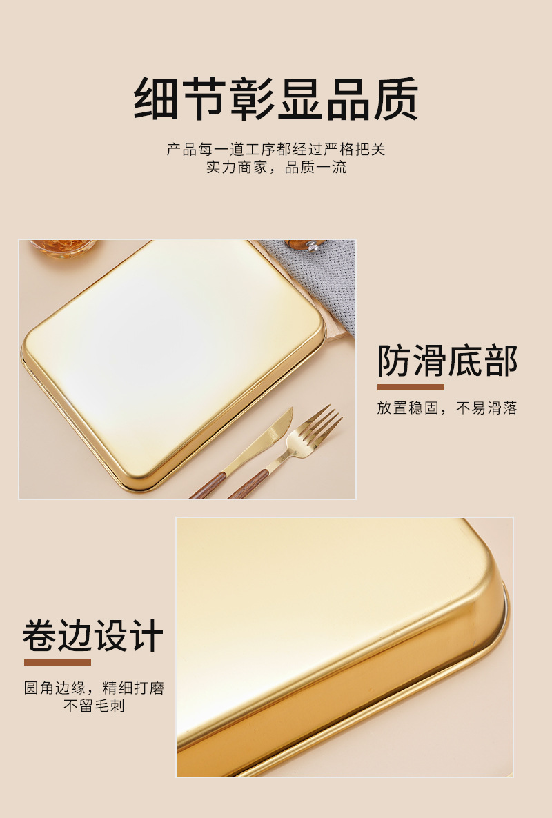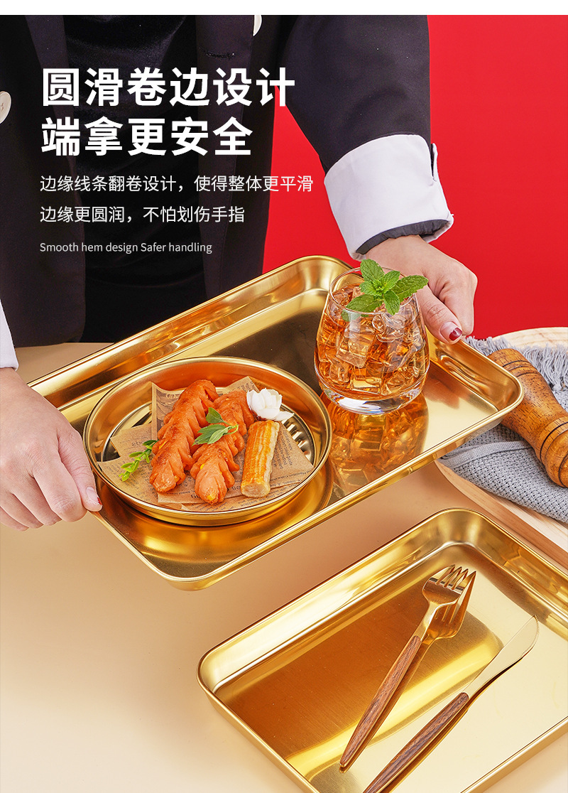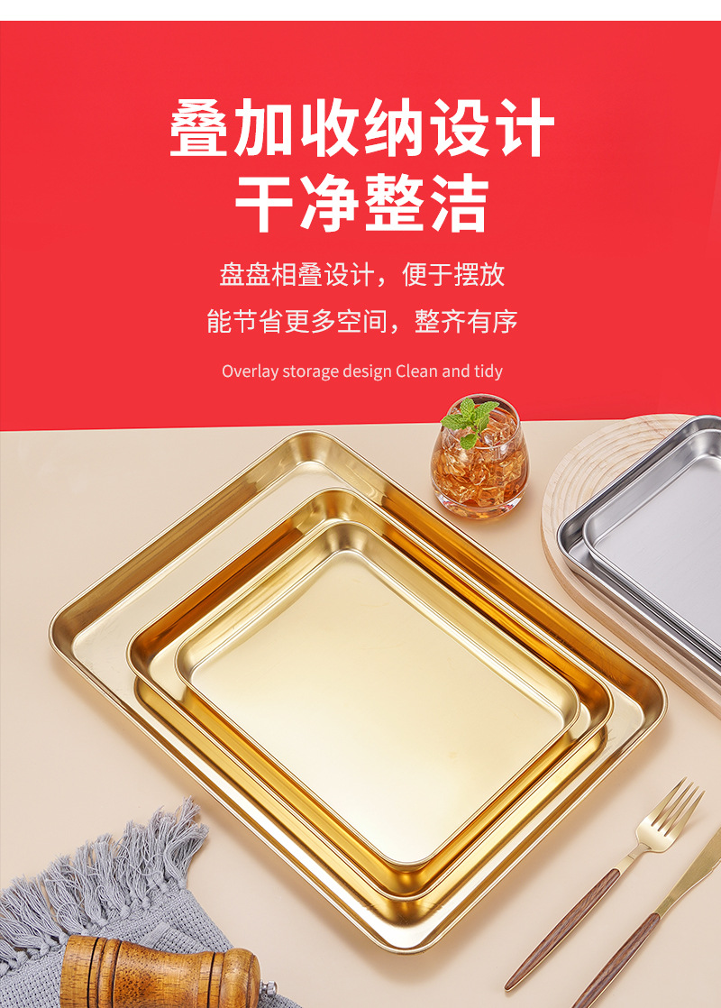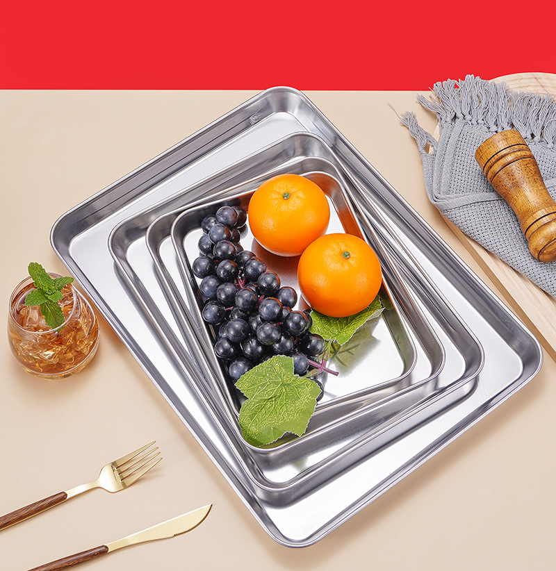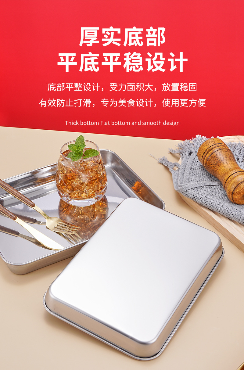 가정용 쌀 창자 특수 스팀 플레이트 직사각형 스테인레스 스틸 황금 플레이트 플랫 바닥 트레이 시원한 피부 분말 플레이트 도구 세트