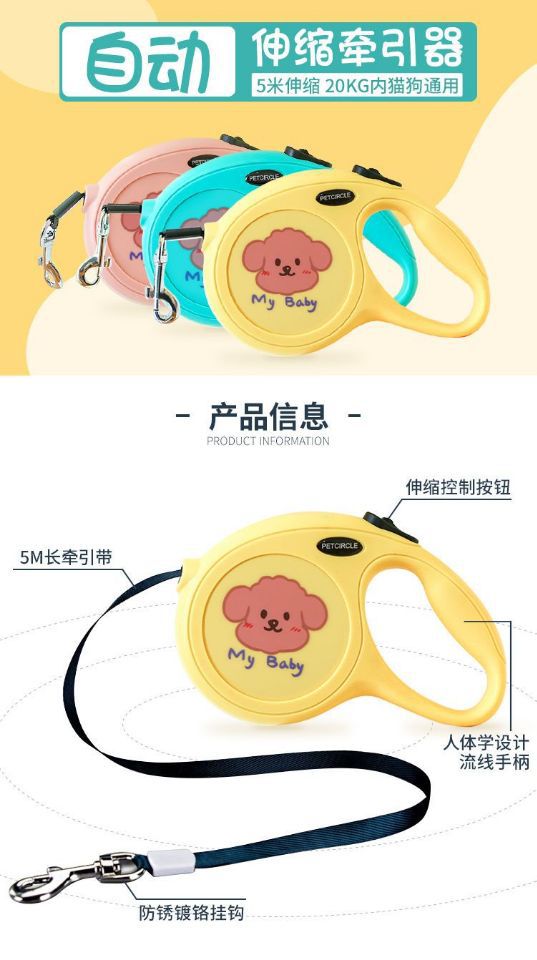 펫서클 강아지 고양이 목줄 자동 신축식 도그 리드 도매 귀여운 제조업체 직배송