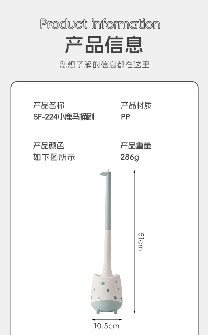 Songtai 홈 크리 에이 티브 새끼 사슴 화장실 브러시 아니 죽은 각 긴 손잡이 화장실 부드러운 머리 플라스틱 화장실 청소 브러시 도매