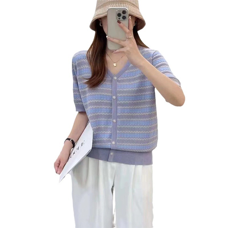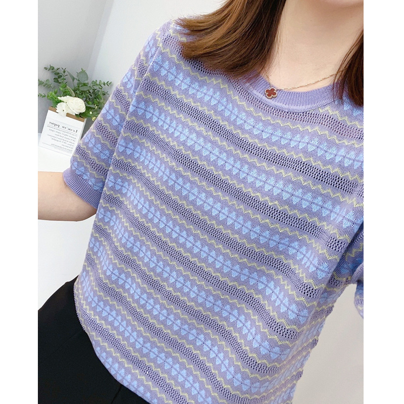 2026년 여름 여성복 신상 여성 반팔 티셔츠 니트웨어 배를 가려주는 상의 스타일리쉬하고 나이를 줄여주는 슬리밍 티셔츠