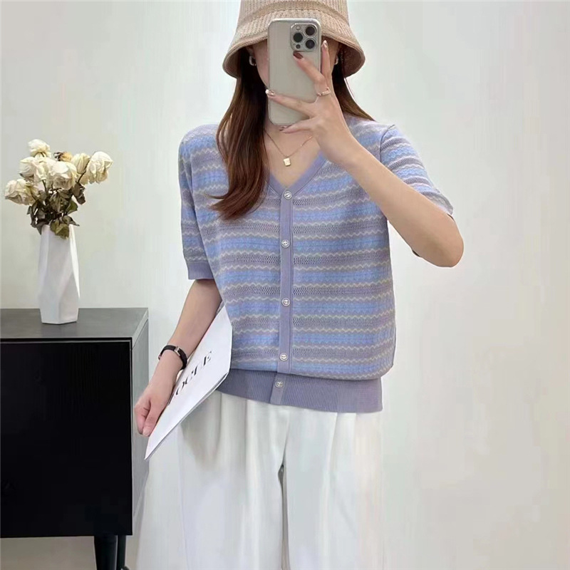2023夏女装新款女士短袖t恤针织衫遮肚子上衣洋气减龄显瘦体恤衫