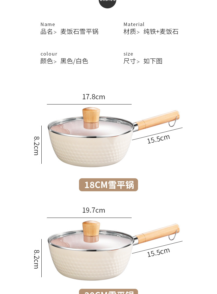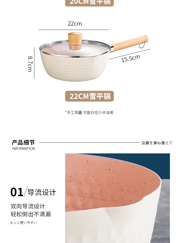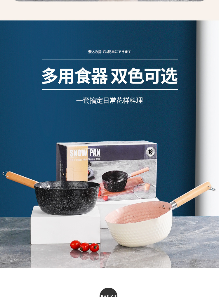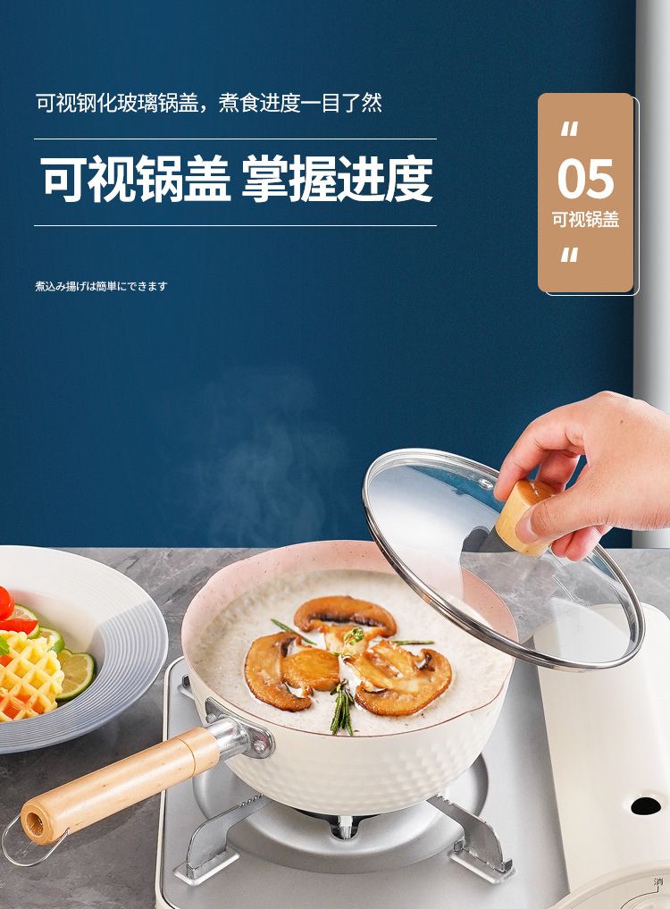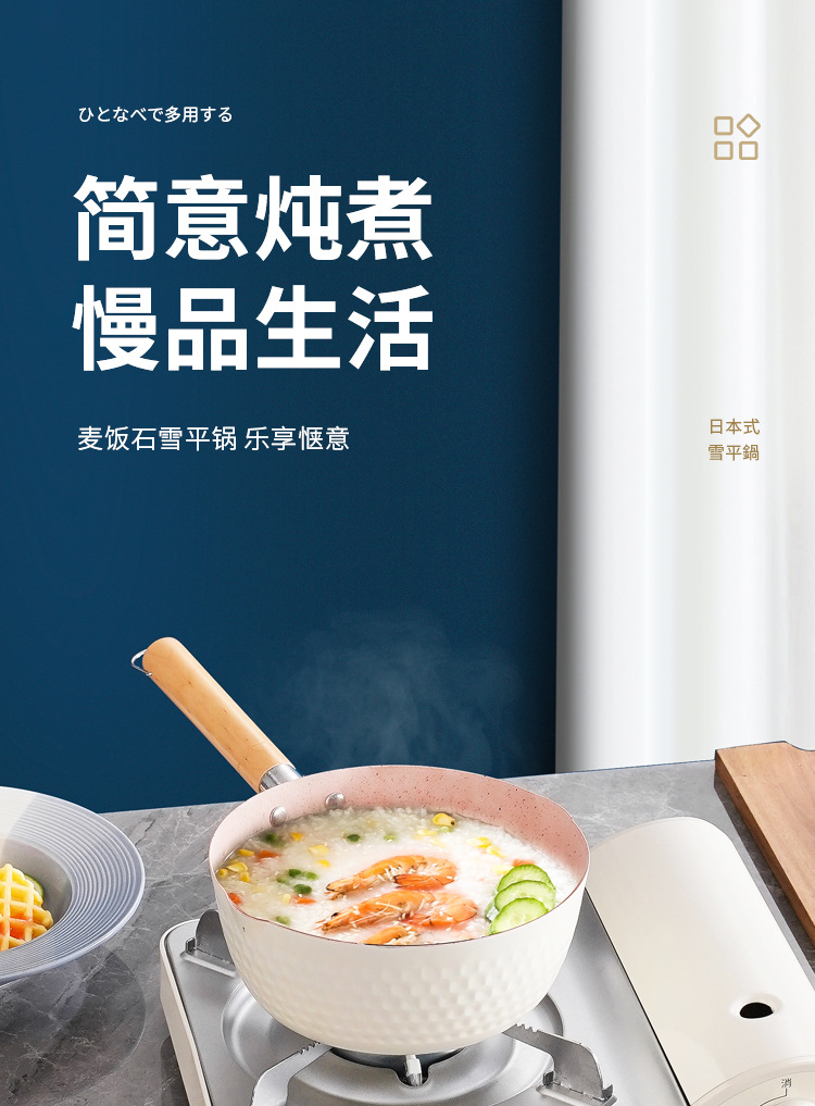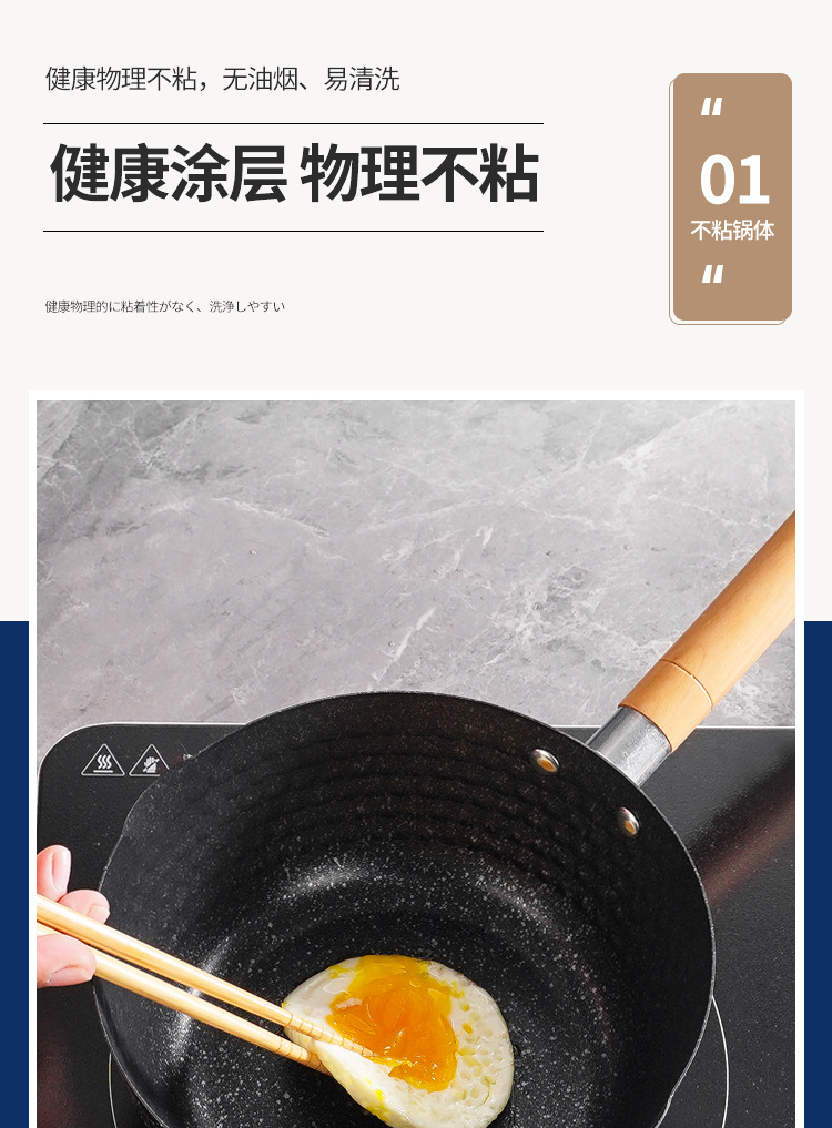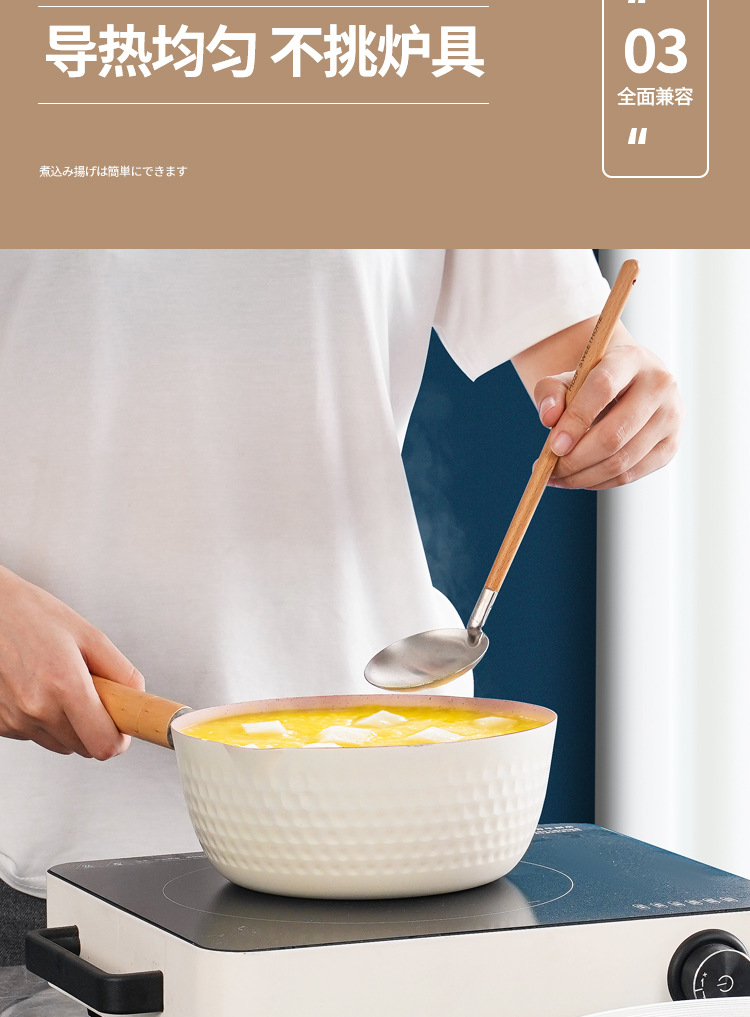 일본식 스노우 팬 붙지 않는 팬 Maifan 돌 수프 냄비 나무 손잡이 작은 우유 냄비 아기와 아기 가정용 보조 식품 국수 요리 냄비