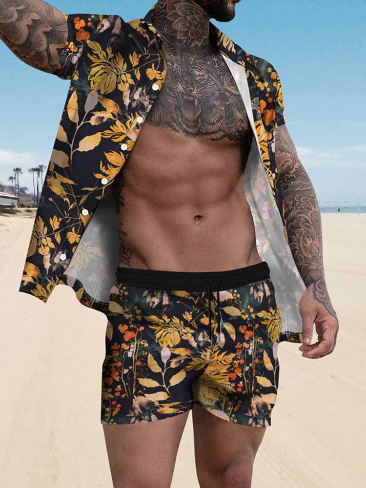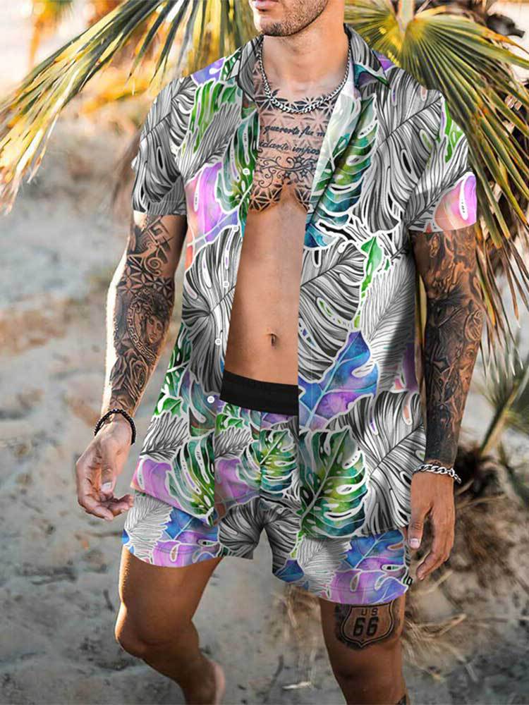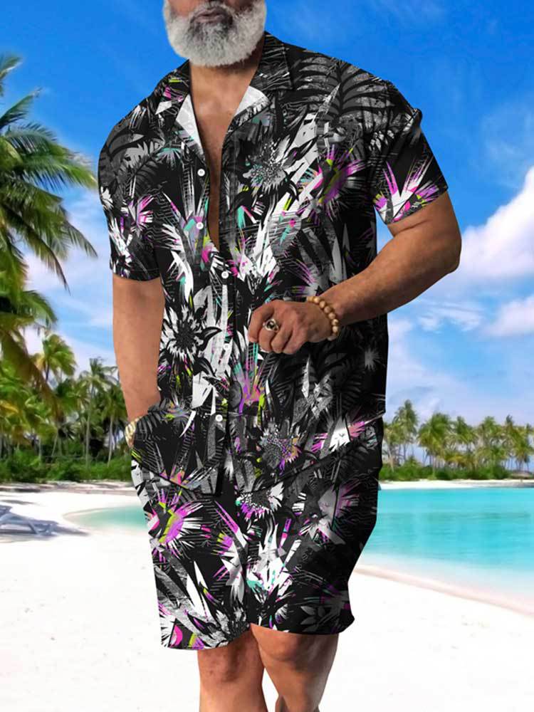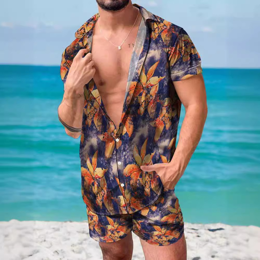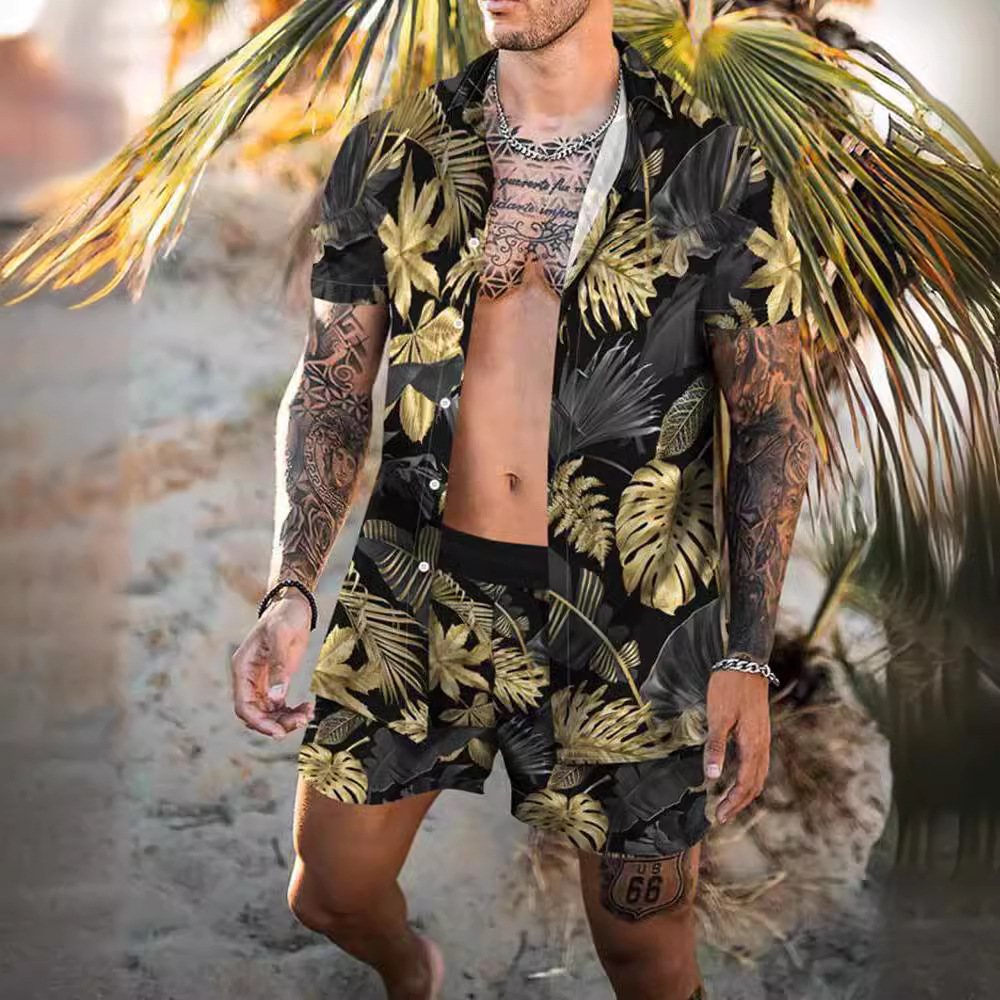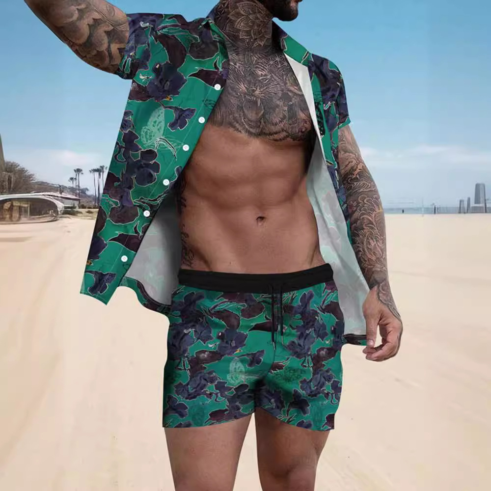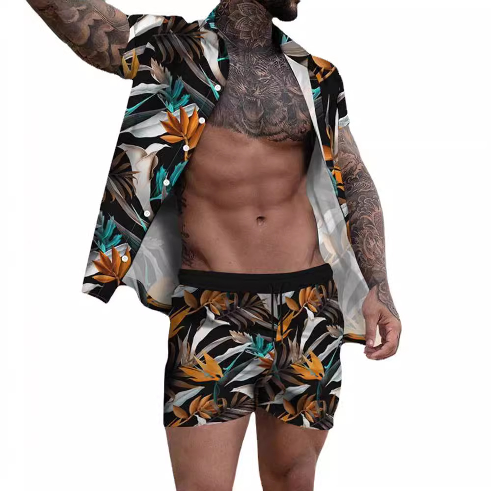 크로스 보더 소스 공장 여름 3D 디지털 인쇄 품질 남자의 반팔 느슨한 셔츠 세트 비치 스타일