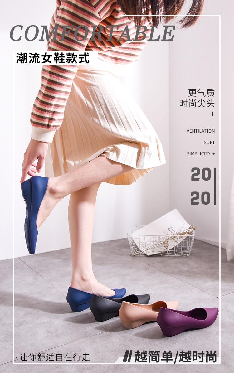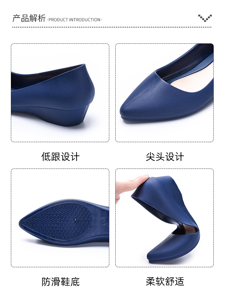 유행 복장 방수 신발 장화 장화 여성의 인터넷 인기 플라스틱 뾰족한 낮은 탑 고무 신발 작업 물 부츠 경량 여름