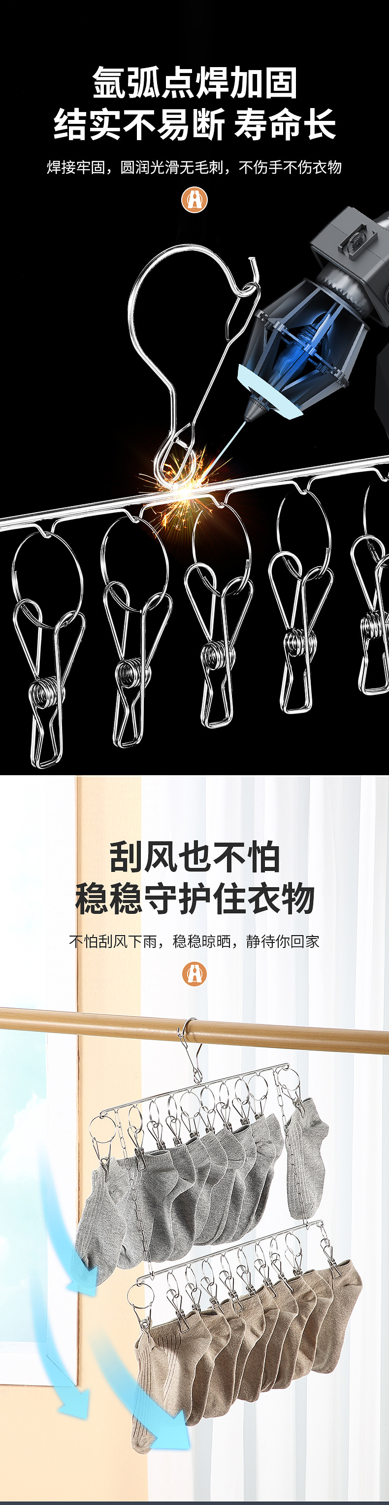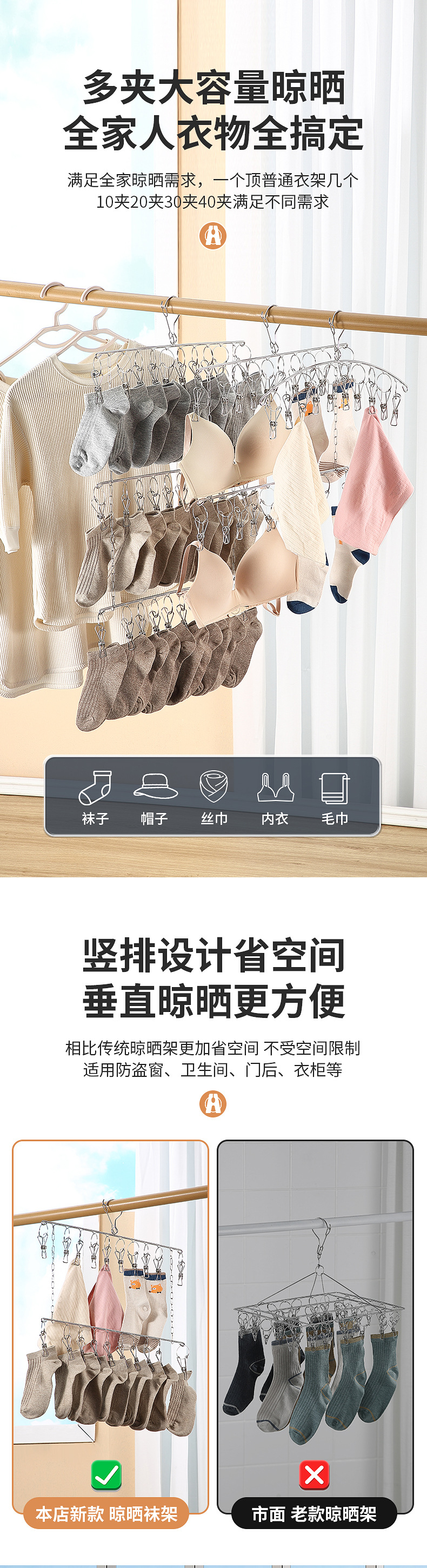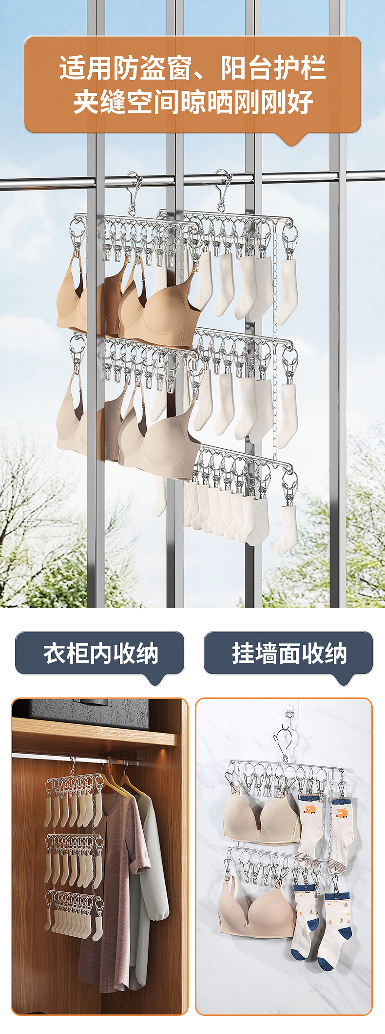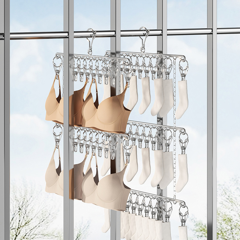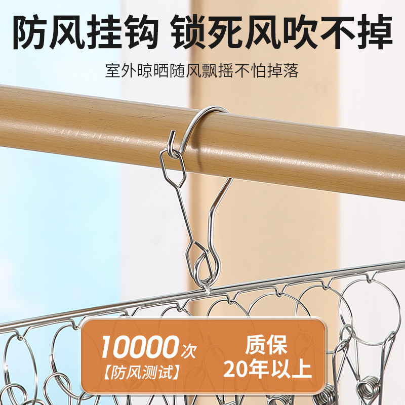 멀티 클립 건조대 스테인레스 스틸 가정용 양말 랙 기숙사 옷장 양말 보관 방풍 후크 내부 걸이