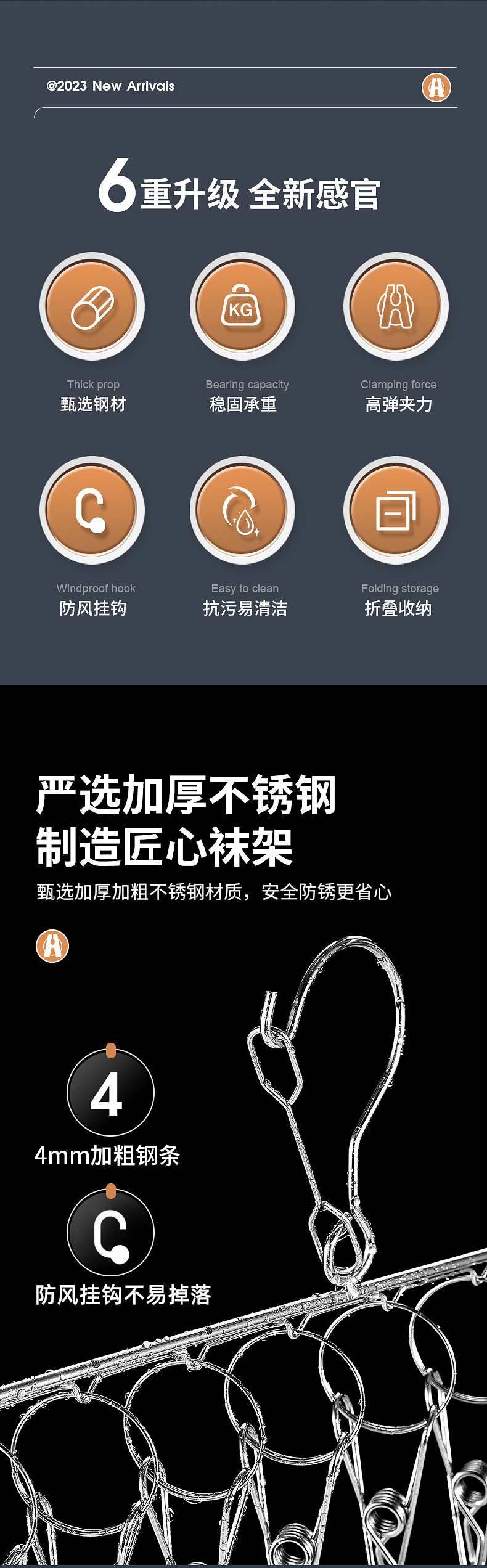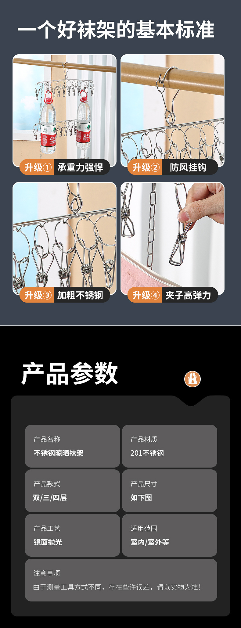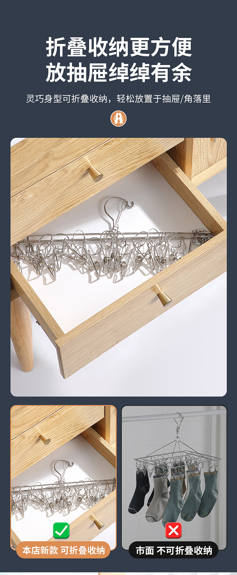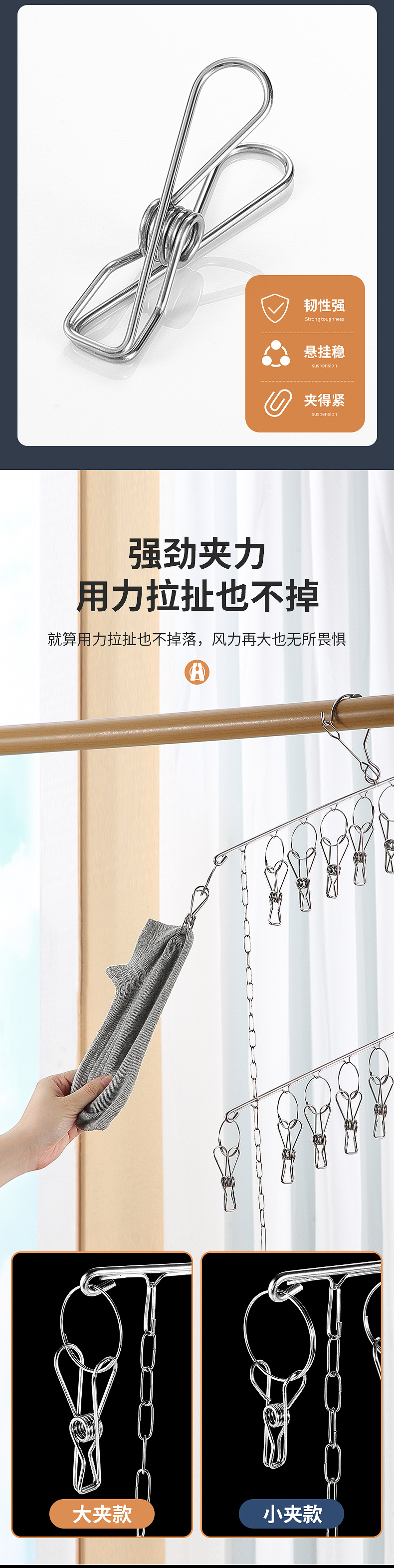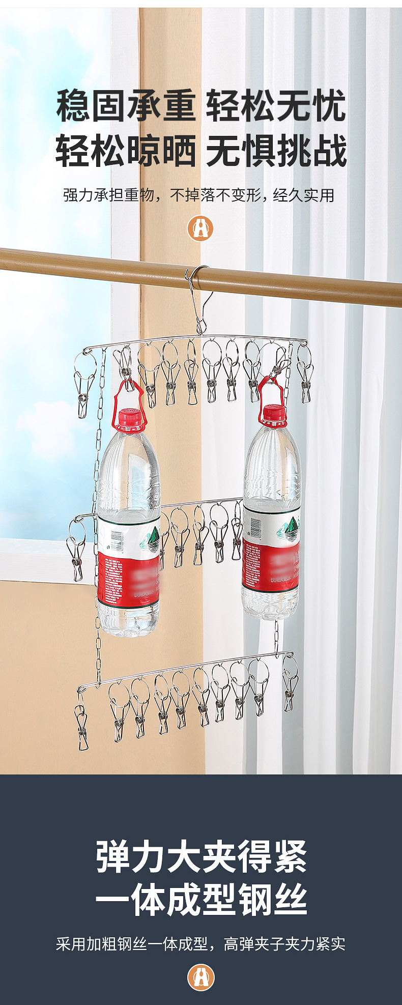 멀티 클립 건조대 스테인레스 스틸 가정용 양말 랙 기숙사 옷장 양말 보관 방풍 후크 내부 걸이
