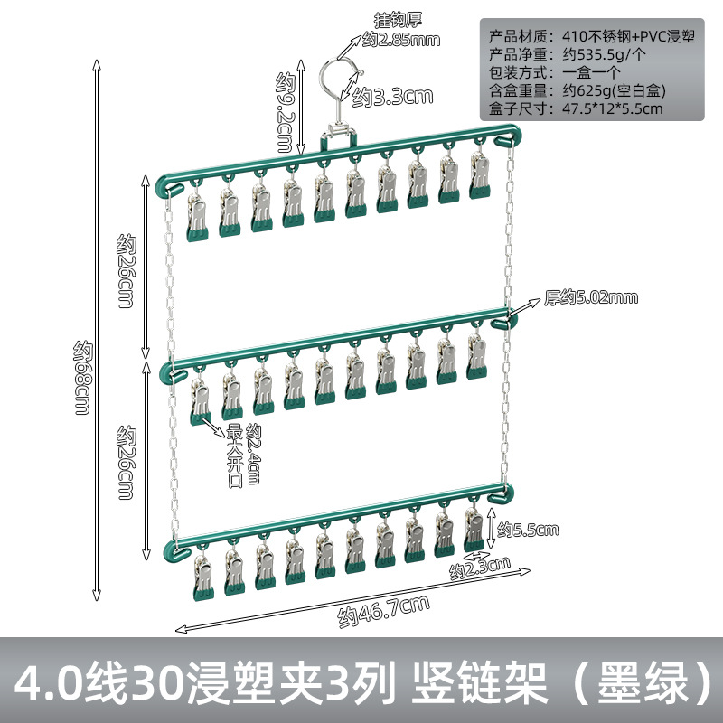 4.0라인 30플라스틱 담근클립 3열 수직체인랙(짙은 녹색)