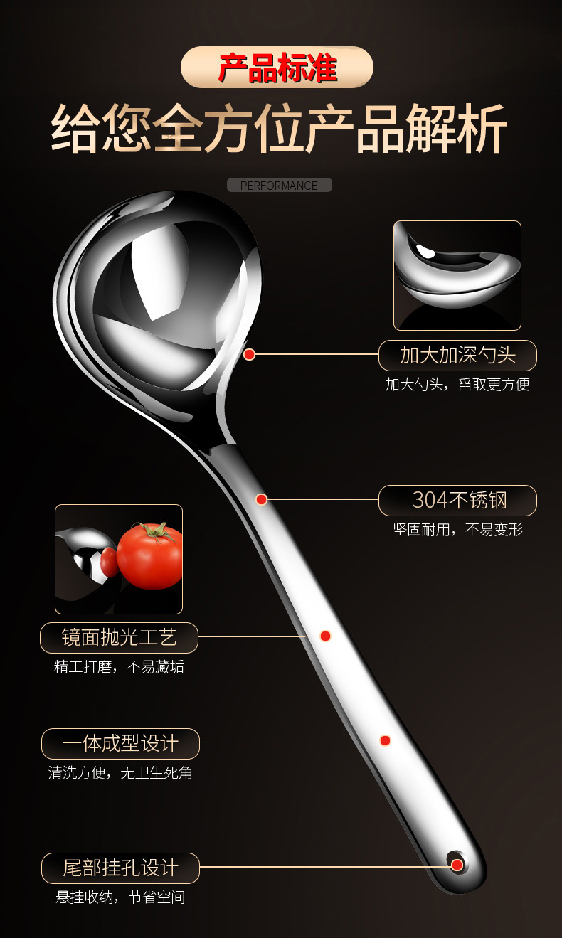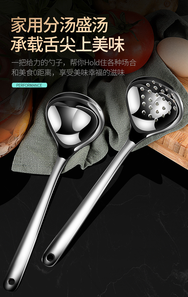 304 스테인레스 스틸 수프 스푼 가정용 소쿠리 주방 대형 수프 스푼 두꺼운 깊은 냄비 숟가락 주방 용품 도매