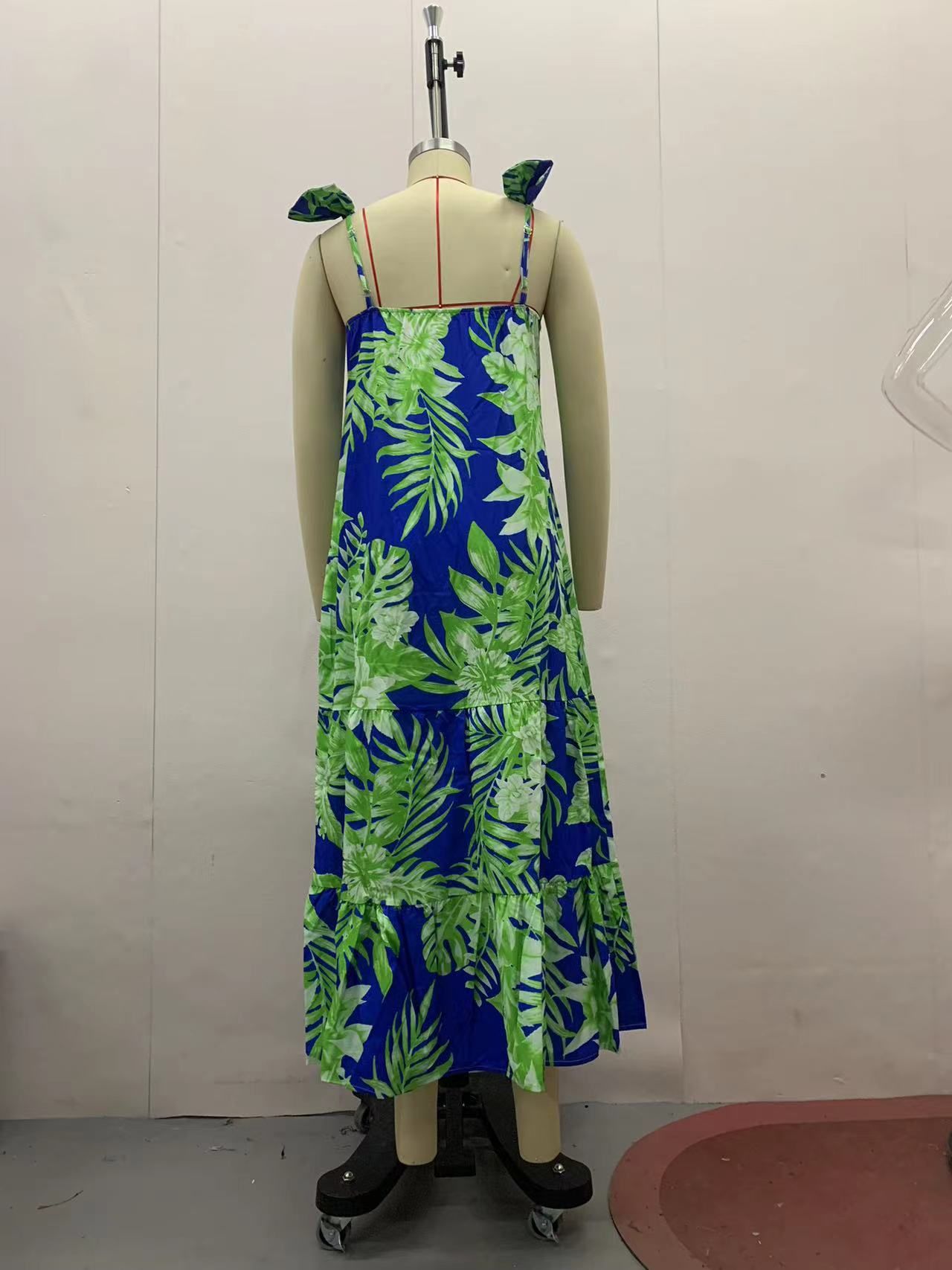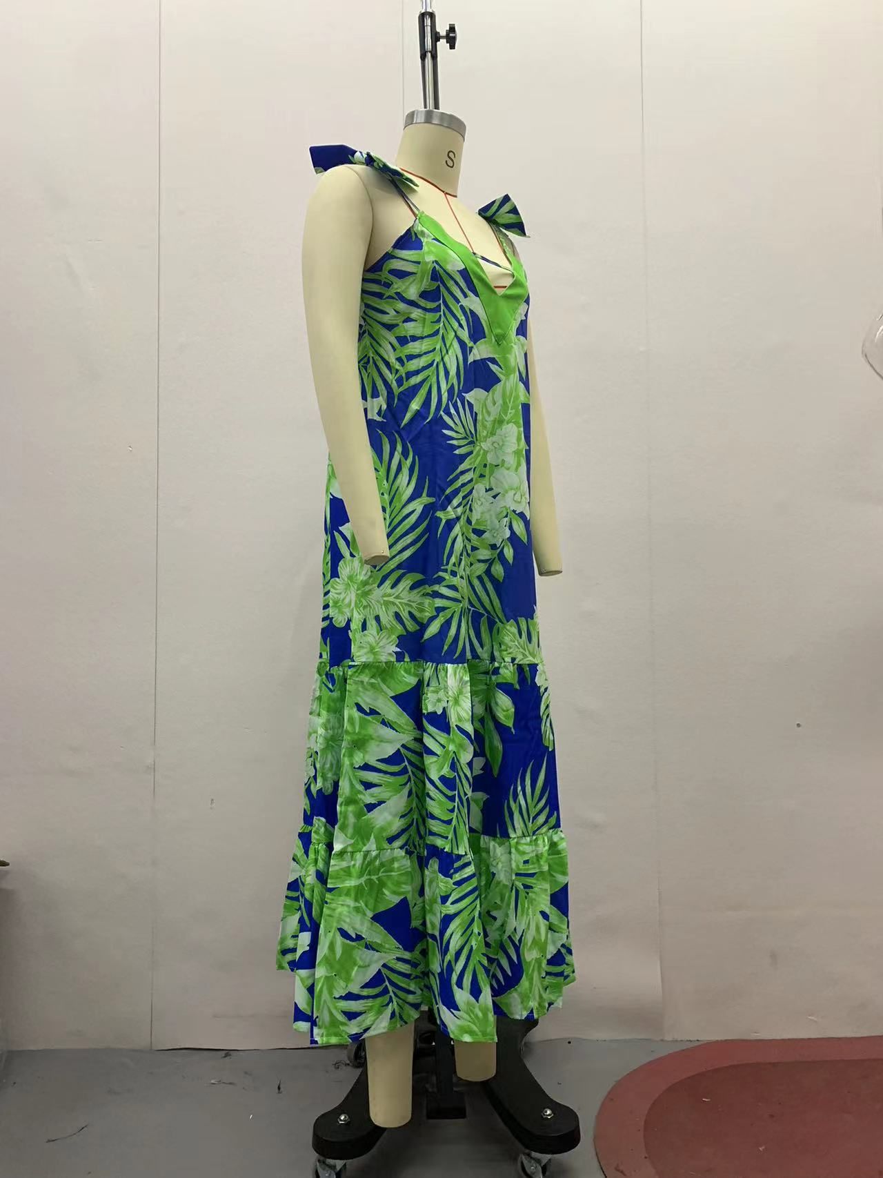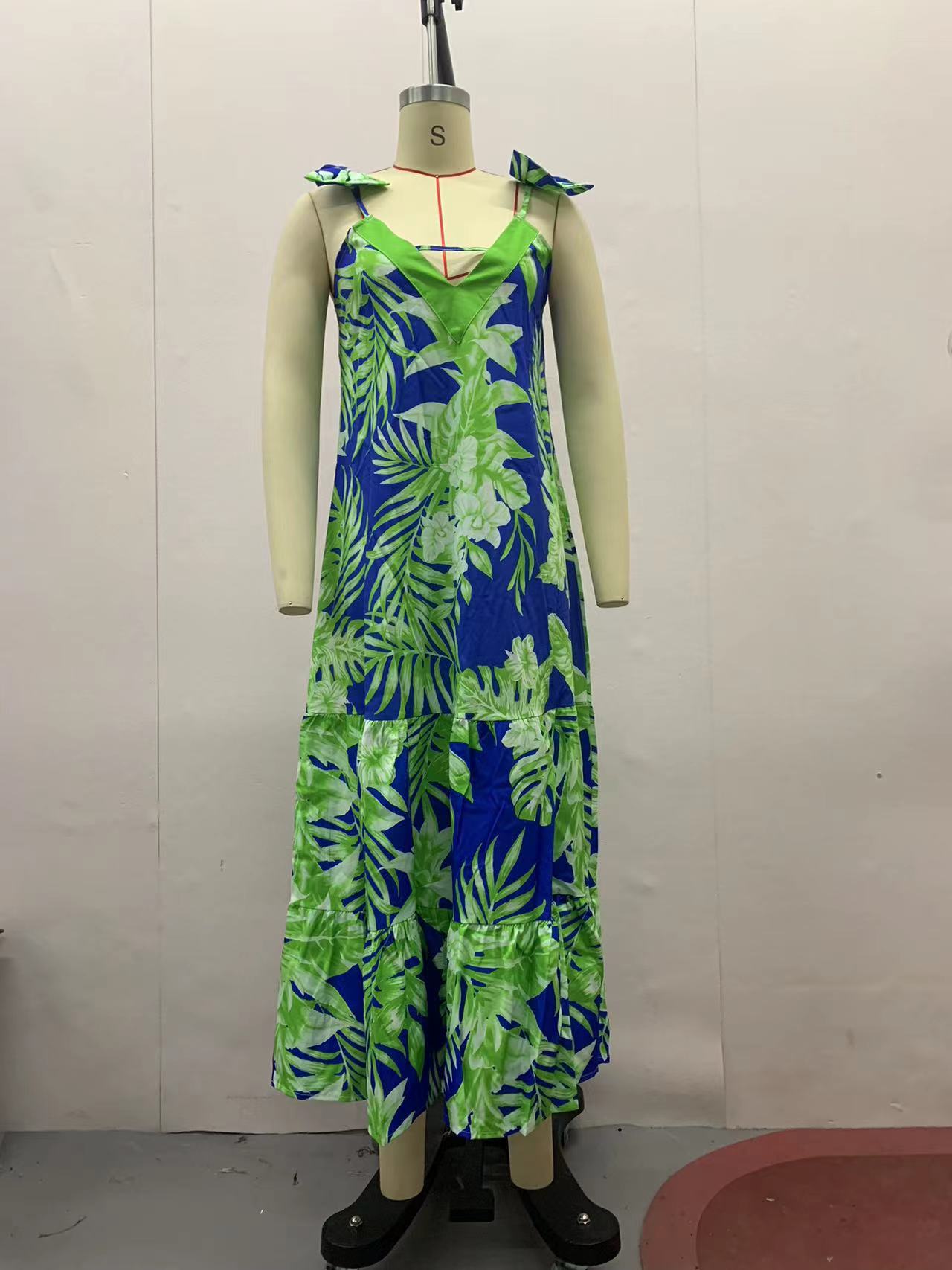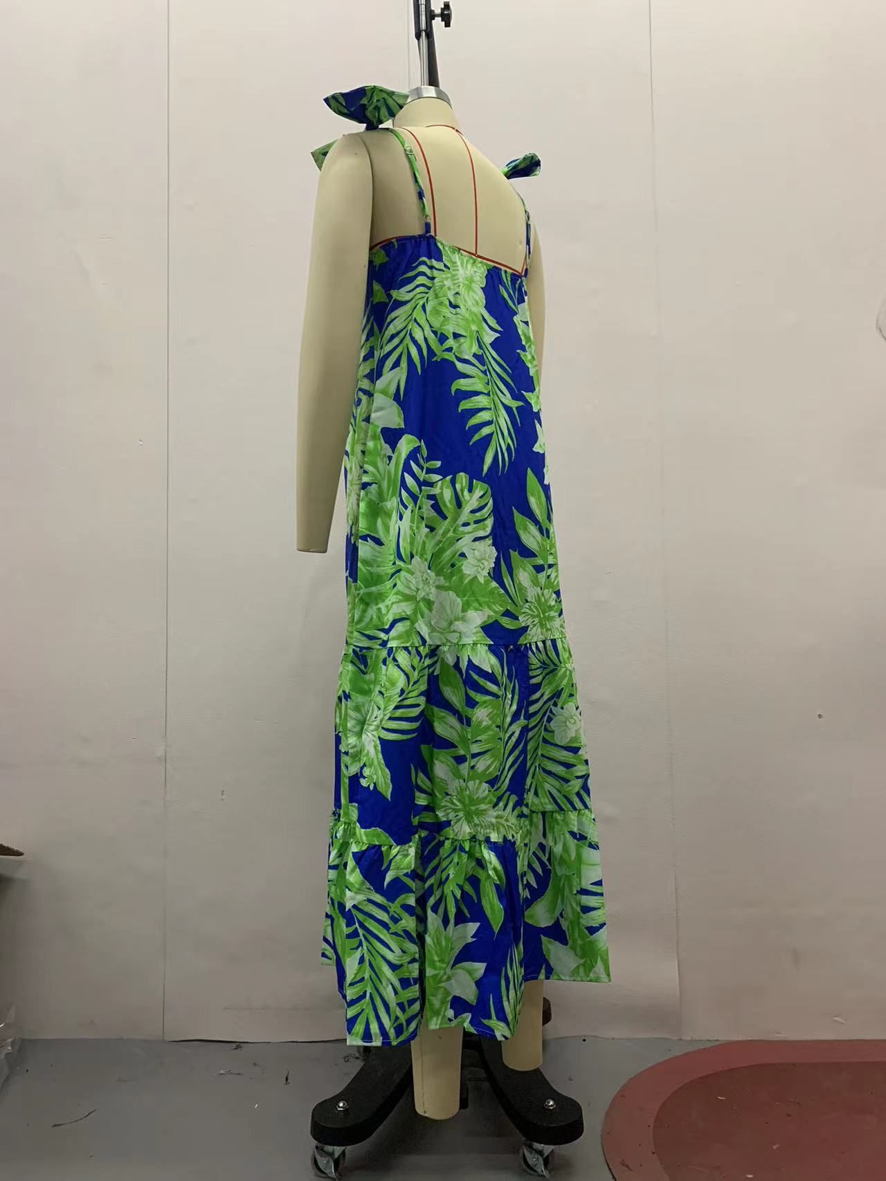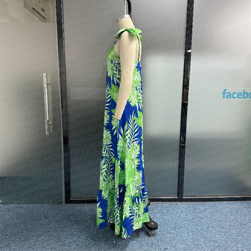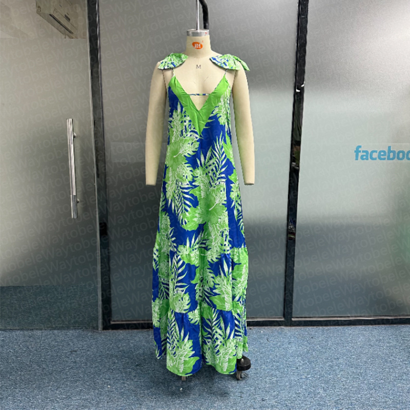 2023 대외 무역 국경 유럽과 미국 아마존 여름 새로운 패션 인쇄 V-넥 슬링 비치 긴 슬링 원피스