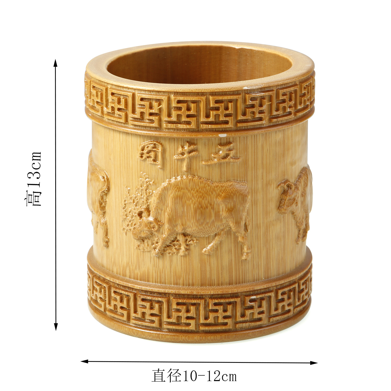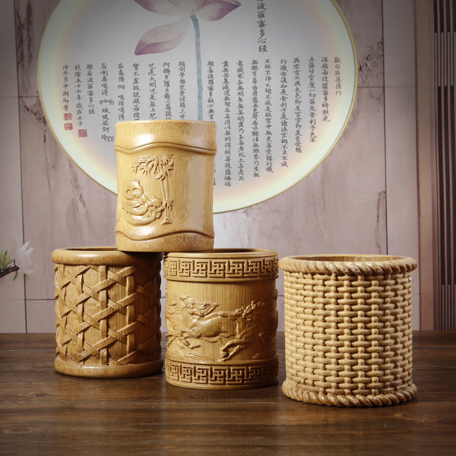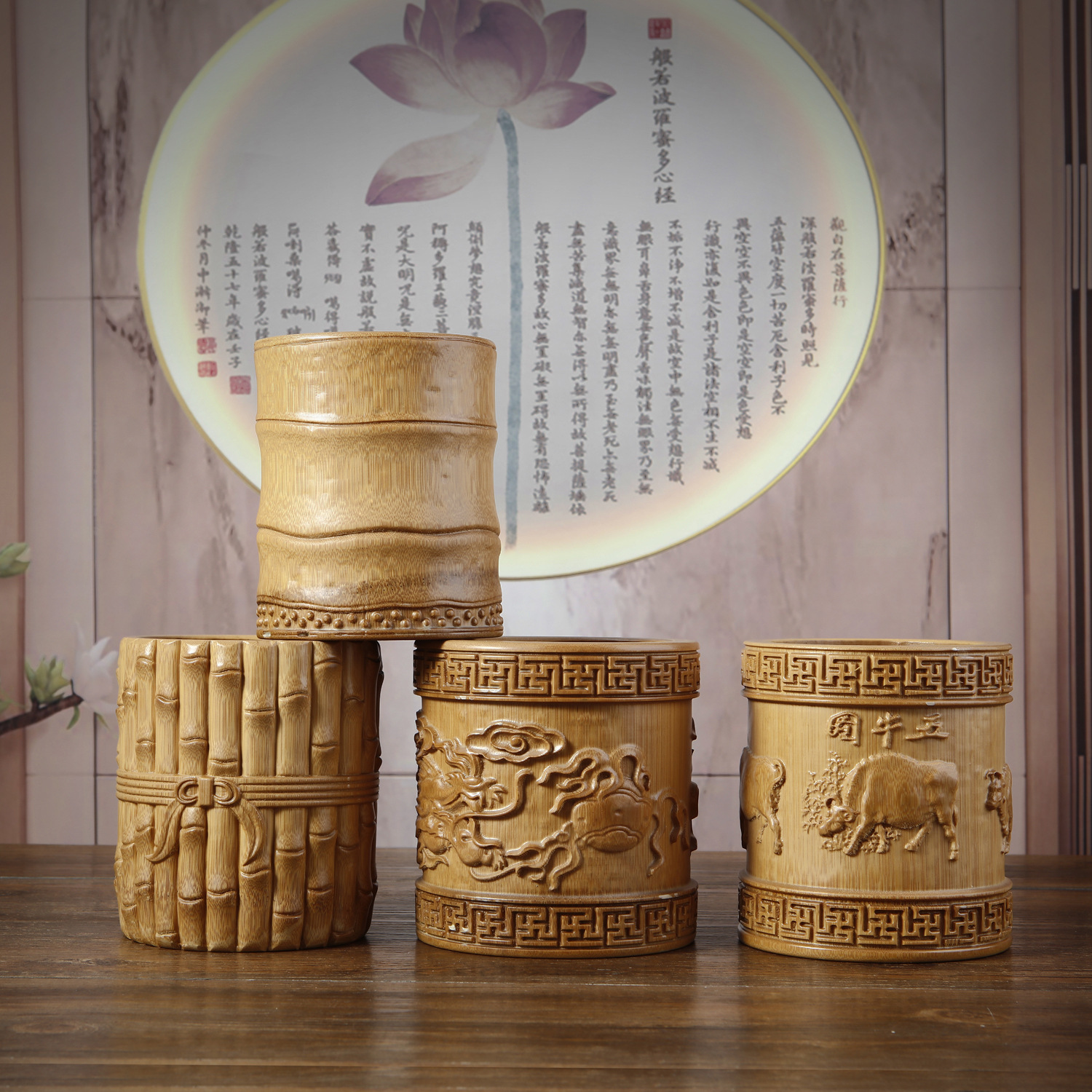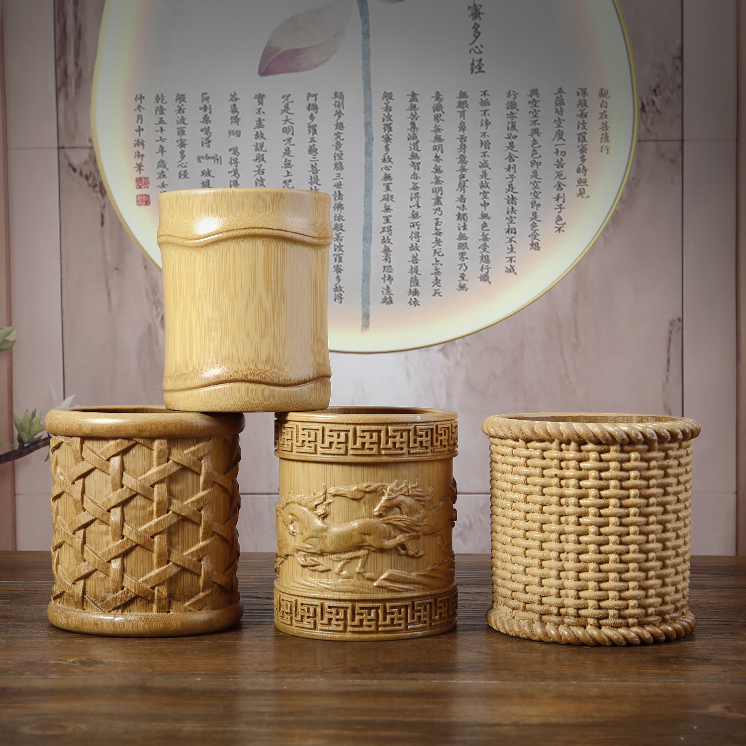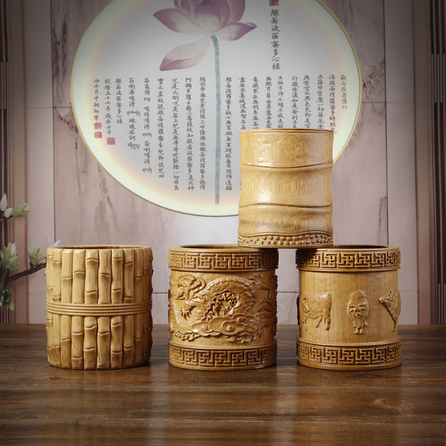 새로운 빈티지 릴리프 조각 펜 홀더 고급 앤티크 데스크 크리에이티브 헤어 펜 홀더 보관 통 대나무 제품 실린더