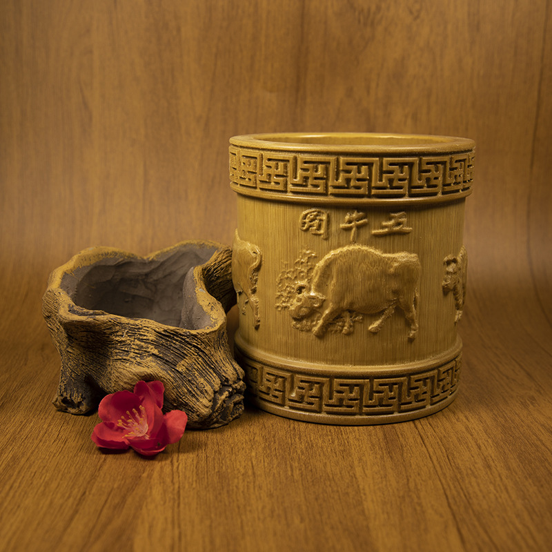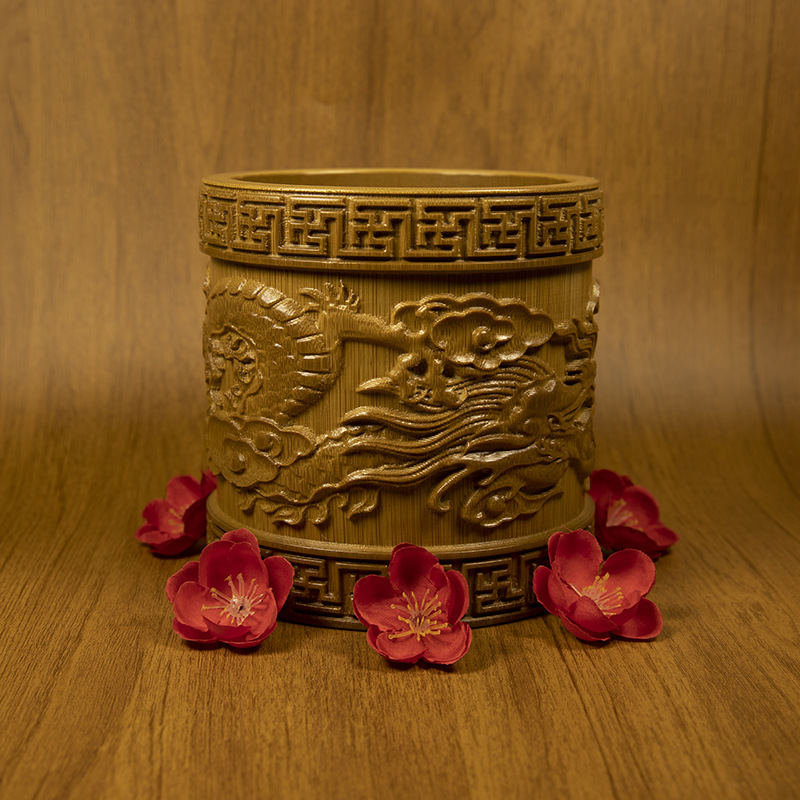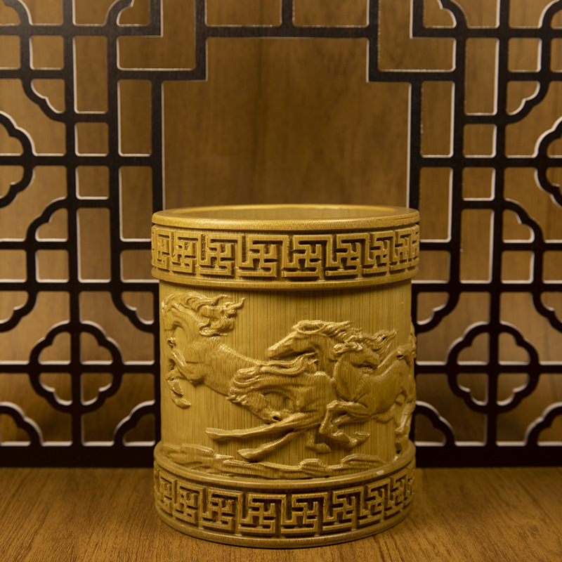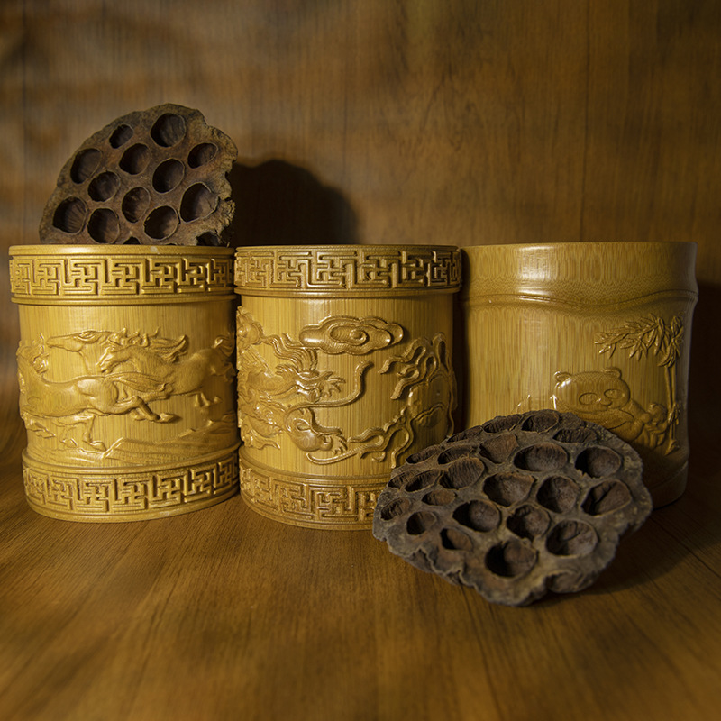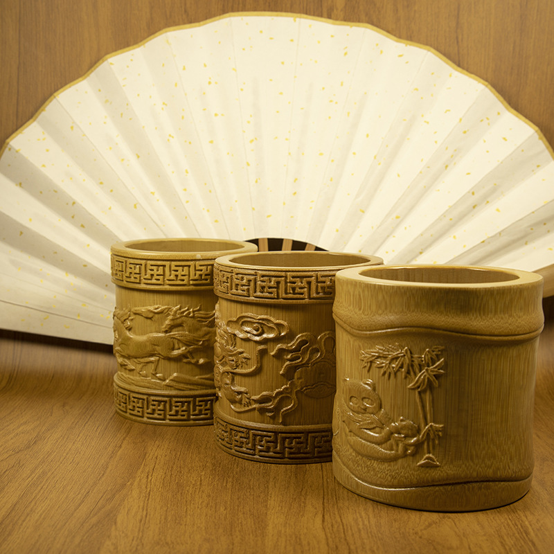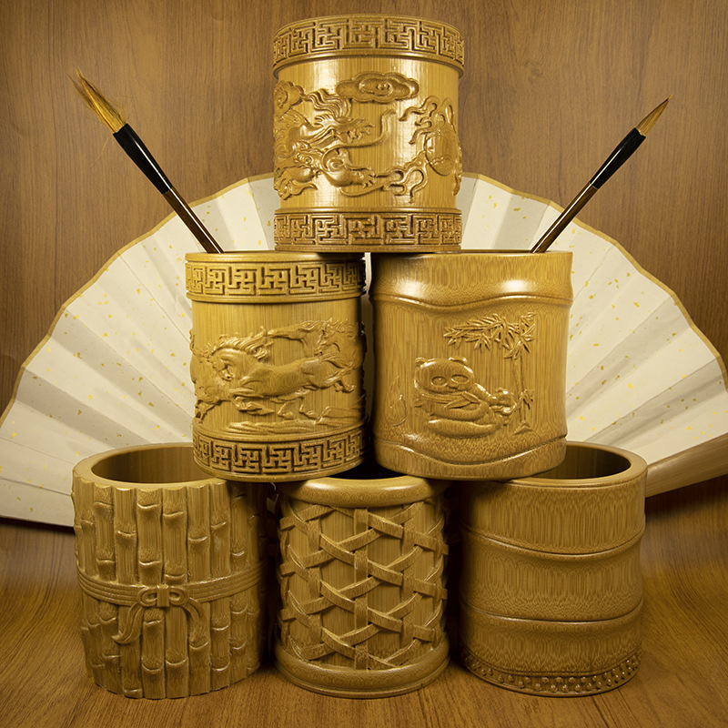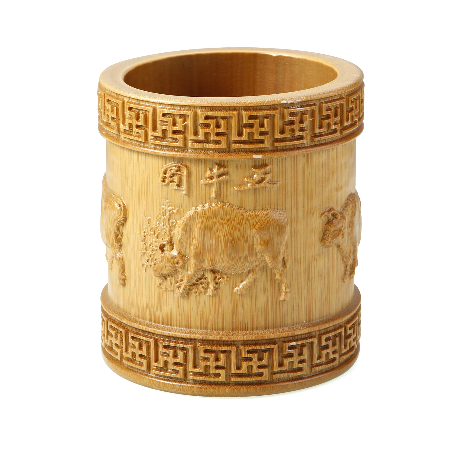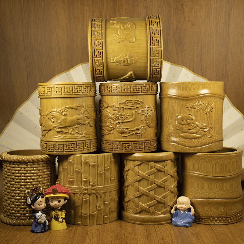 새로운 빈티지 릴리프 조각 펜 홀더 고급 앤티크 데스크 크리에이티브 헤어 펜 홀더 보관 통 대나무 제품 실린더