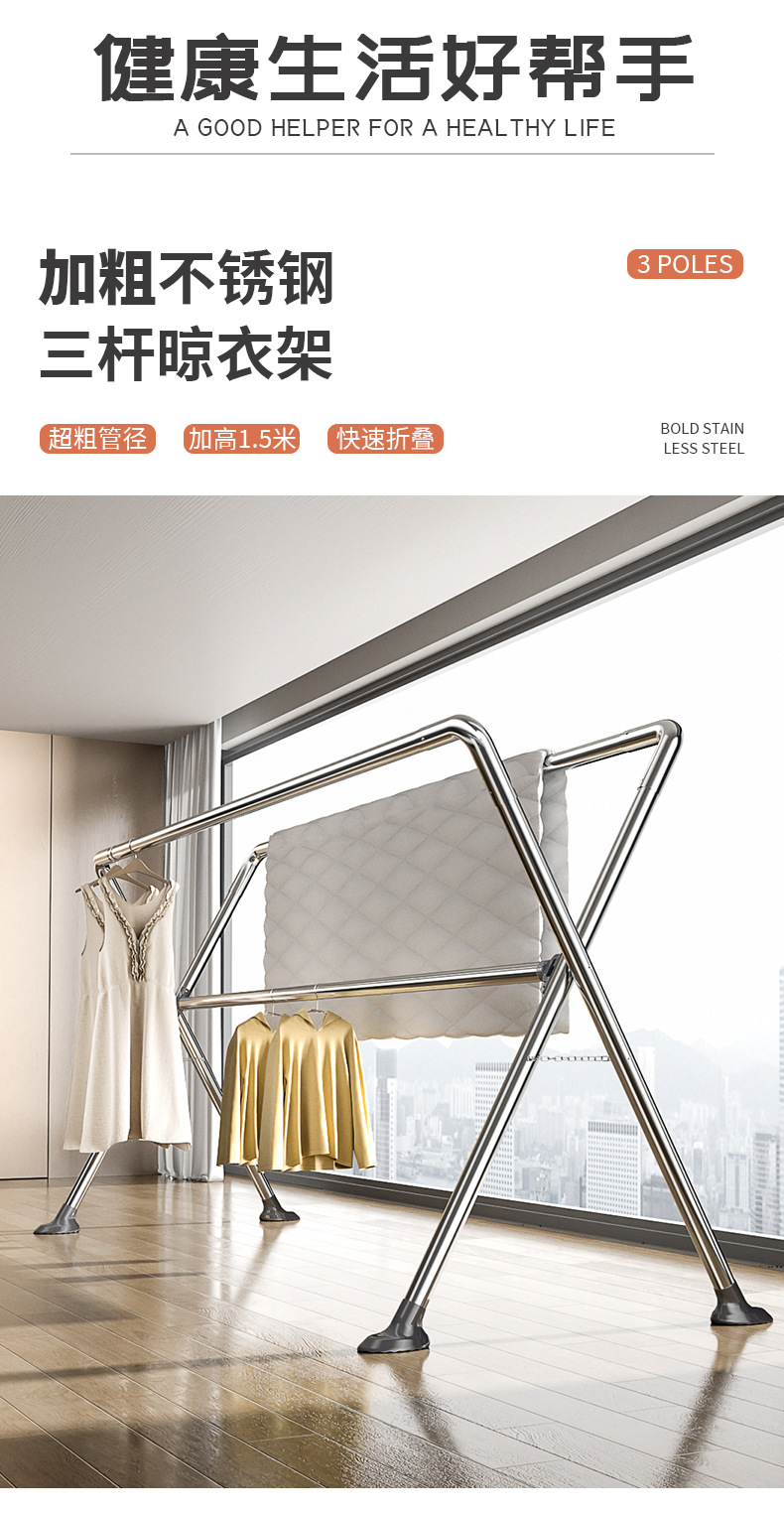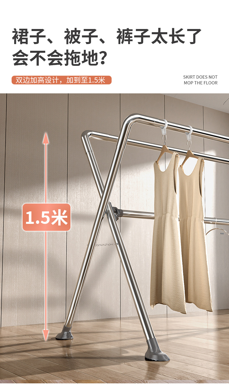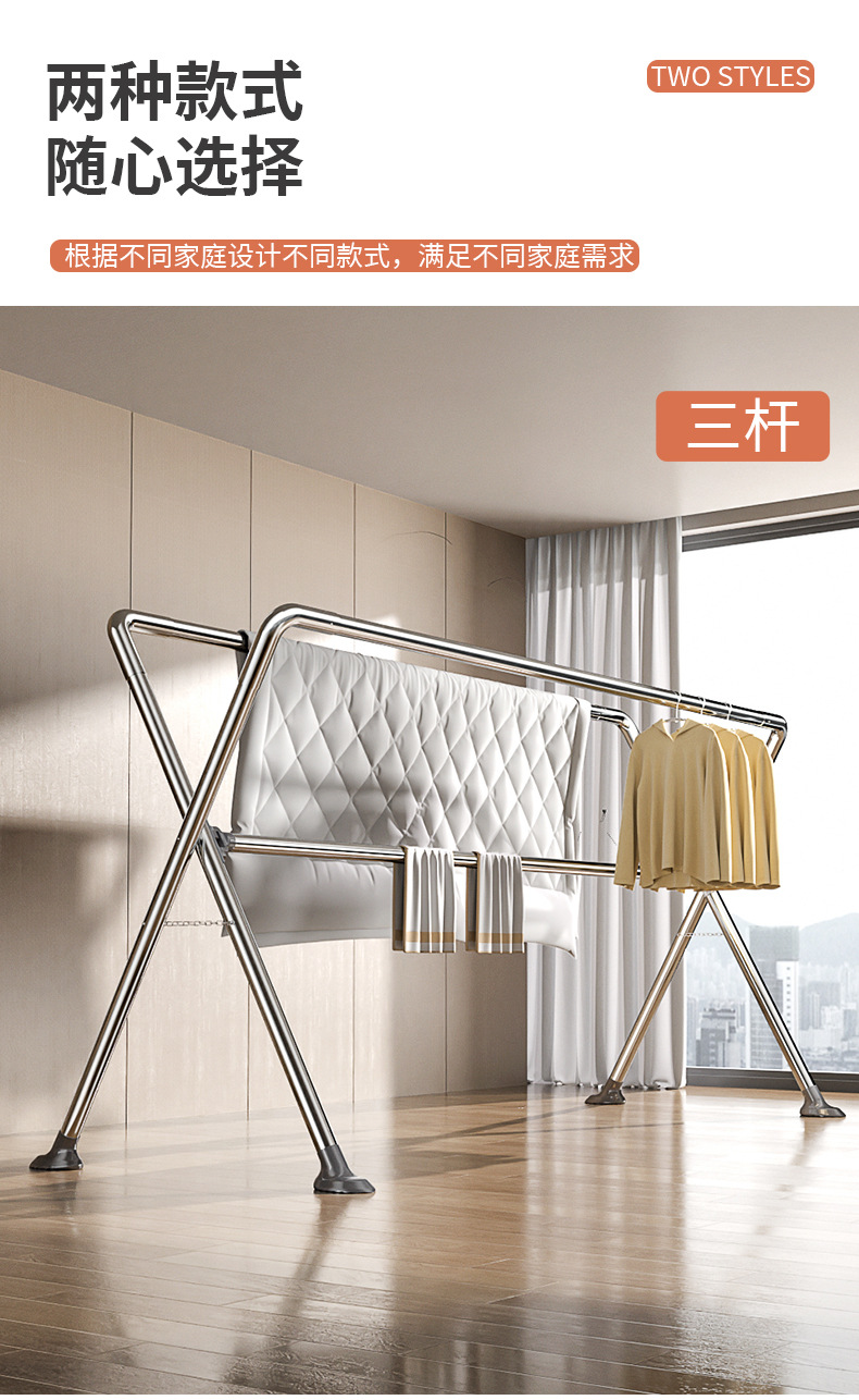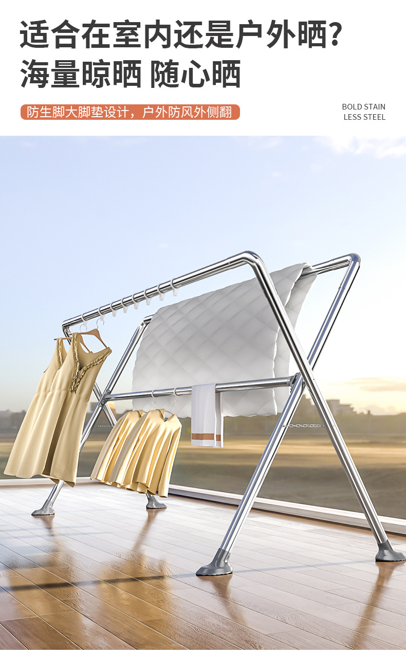 스테인레스 스틸 빨래 건조 랙 바닥에 서 있는 가정용 실내 가정용 발코니 빨래 건조 봉 이불 건조 용품 야외 빨래 건조 랙