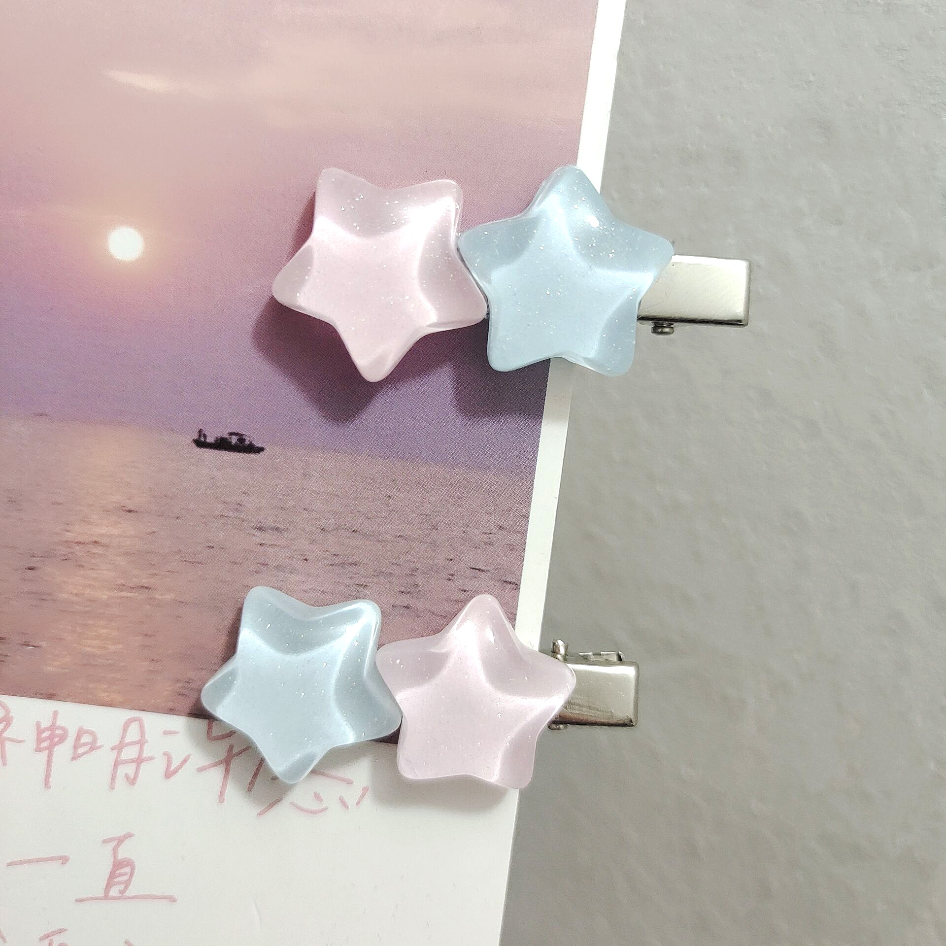 소녀의 심장 고급 빛나는 블루 핑크 스타 머리핀 에 달콤한 학생 앞머리 사이드 클립 귀여운 5 개 별 헤어 액세서리 머리핀