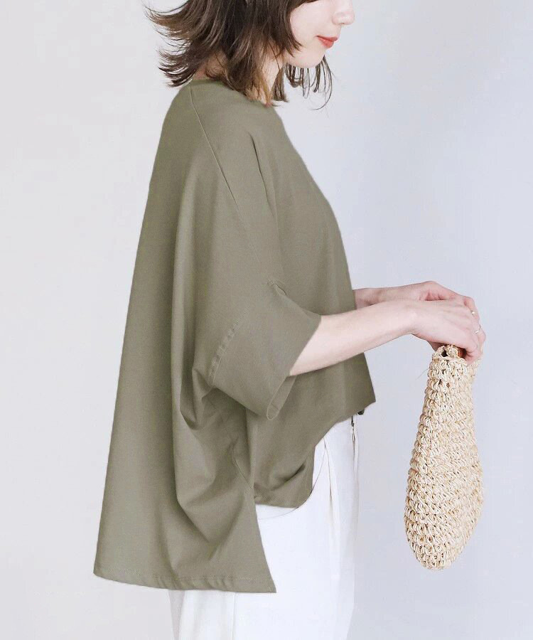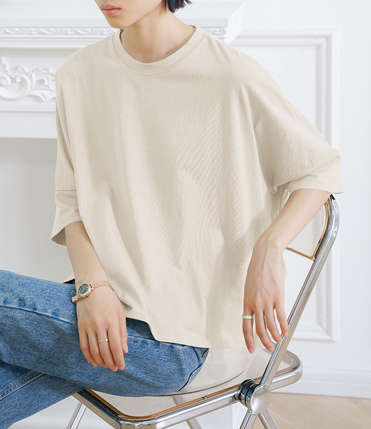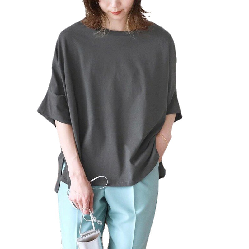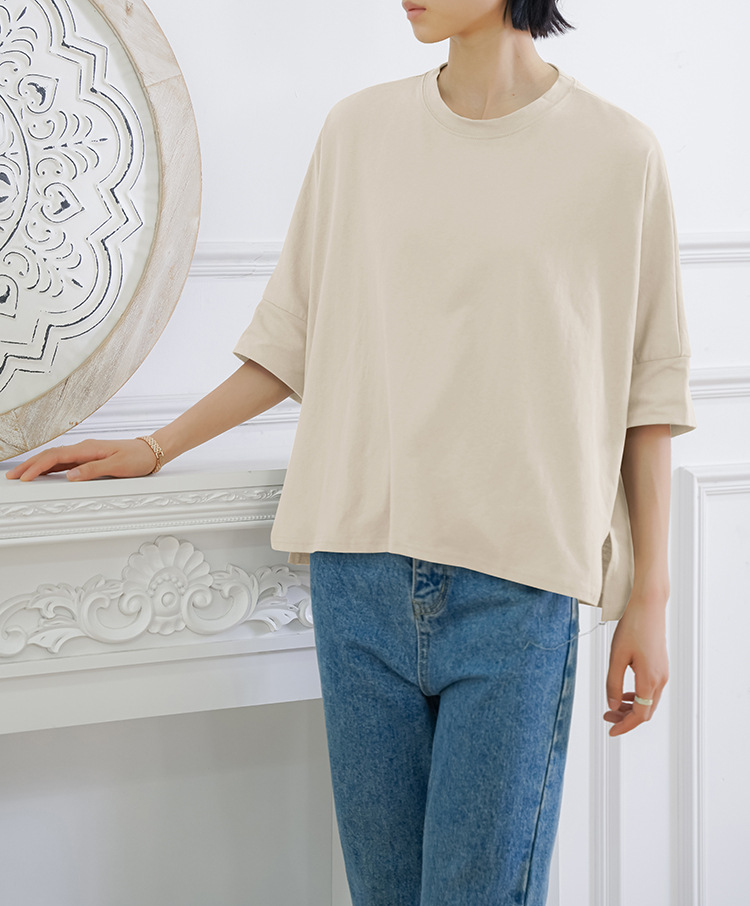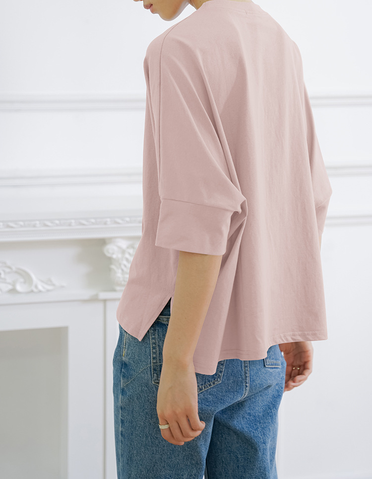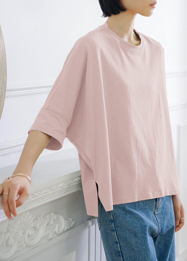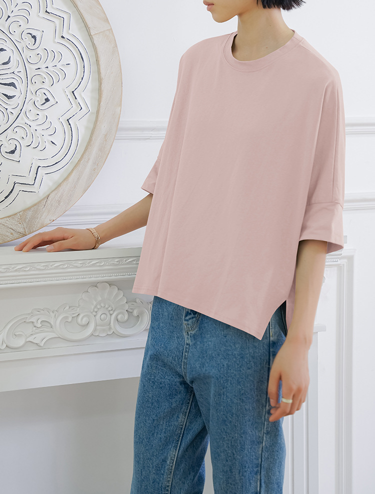 롯데 뉴 일본 6 색 순면 배트 슬리브 대형 버전 느슨한 티셔츠 여성용 사이드 스플릿 탑 크로스 보더 폭발