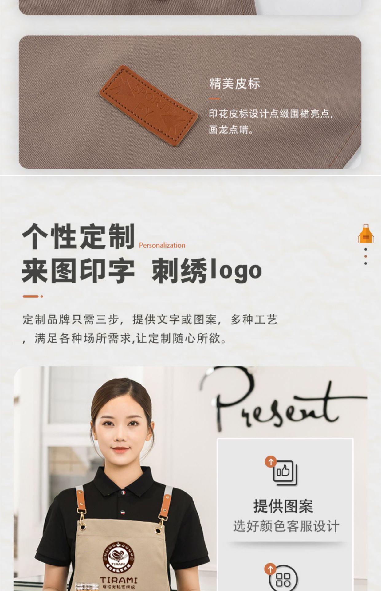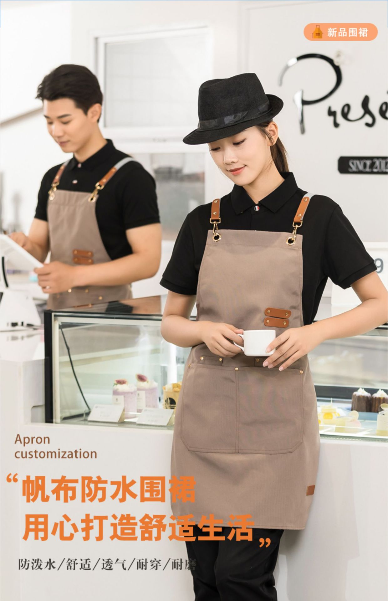 앞치마 맞춤형 로고 인쇄 케이터링 특수 방수 및 내유성 우유 차 가게 작업복 가정용 주방 허리 여성