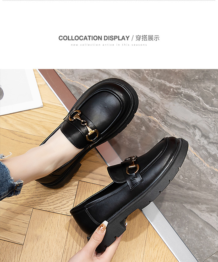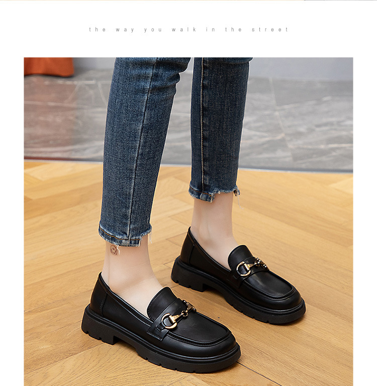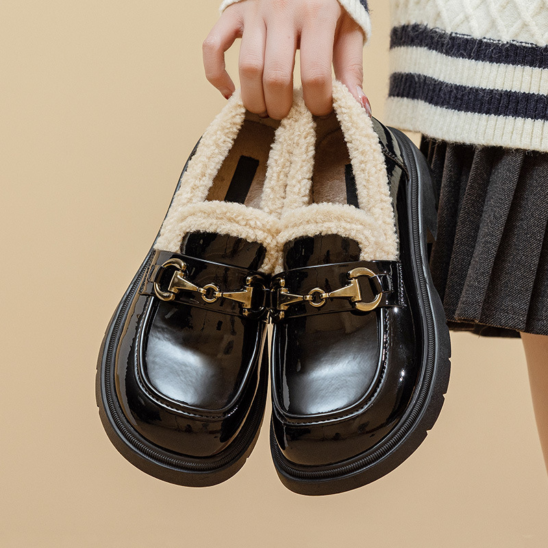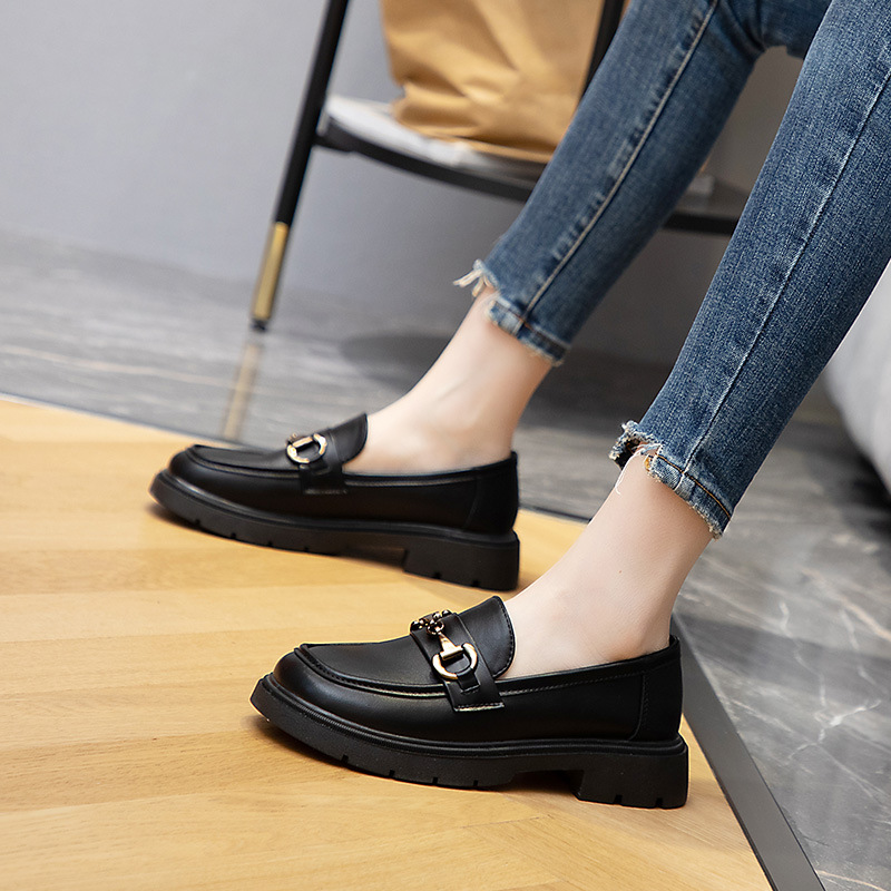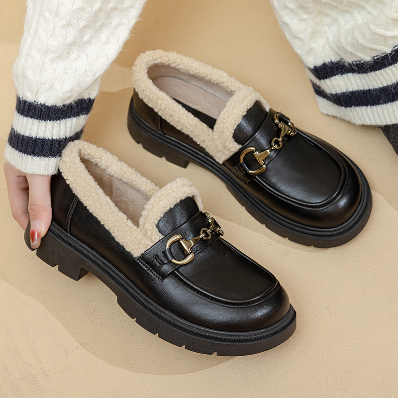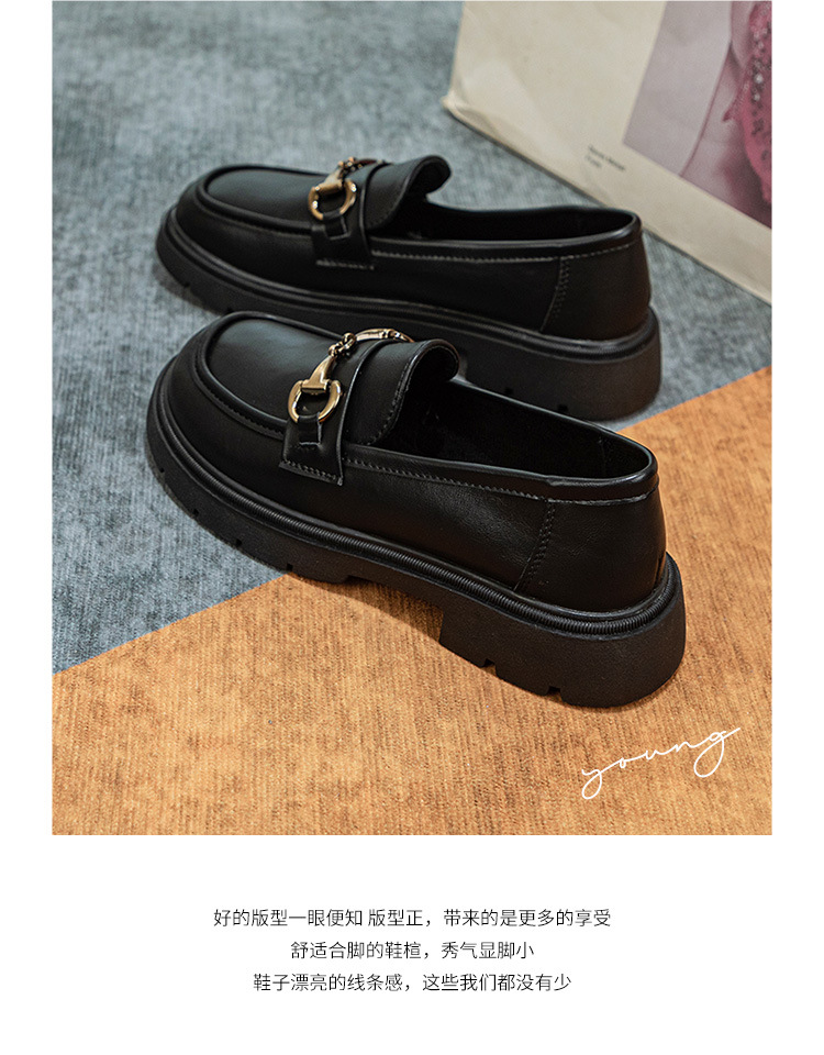 두꺼운 밑창의 여성용 가죽신발, 영국풍 가을 겨울 신상, 벨벳 안감의 블랙 로퍼, 다용도 jk 슈즈, 여성용 슬립온 싱글 슈즈