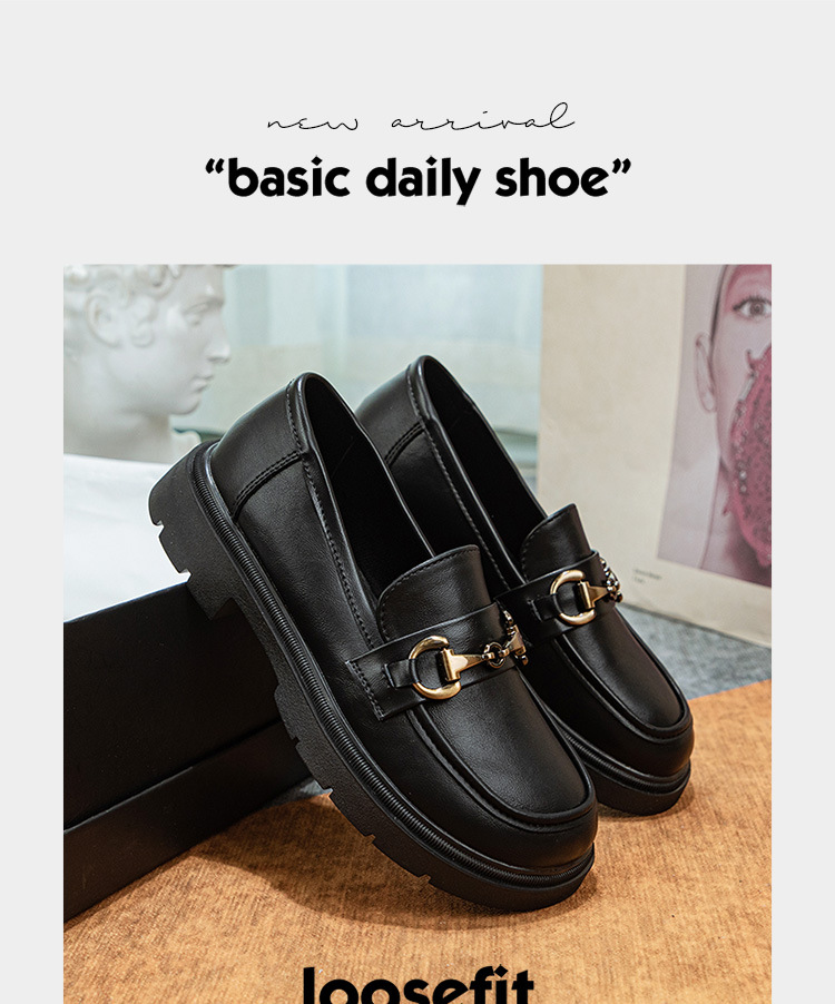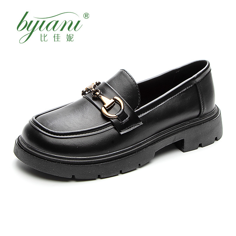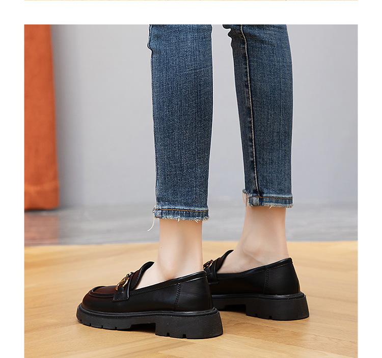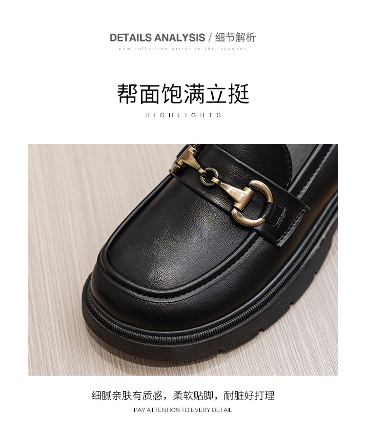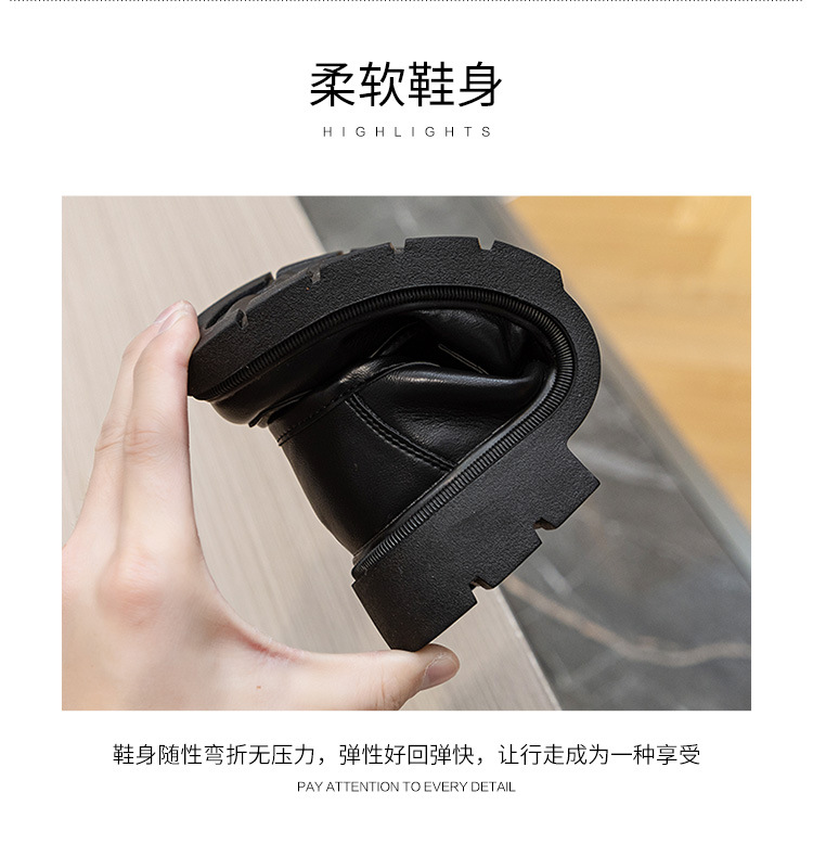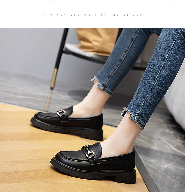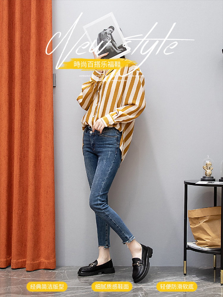 두꺼운 밑창의 여성용 가죽신발, 영국풍 가을 겨울 신상, 벨벳 안감의 블랙 로퍼, 다용도 jk 슈즈, 여성용 슬립온 싱글 슈즈