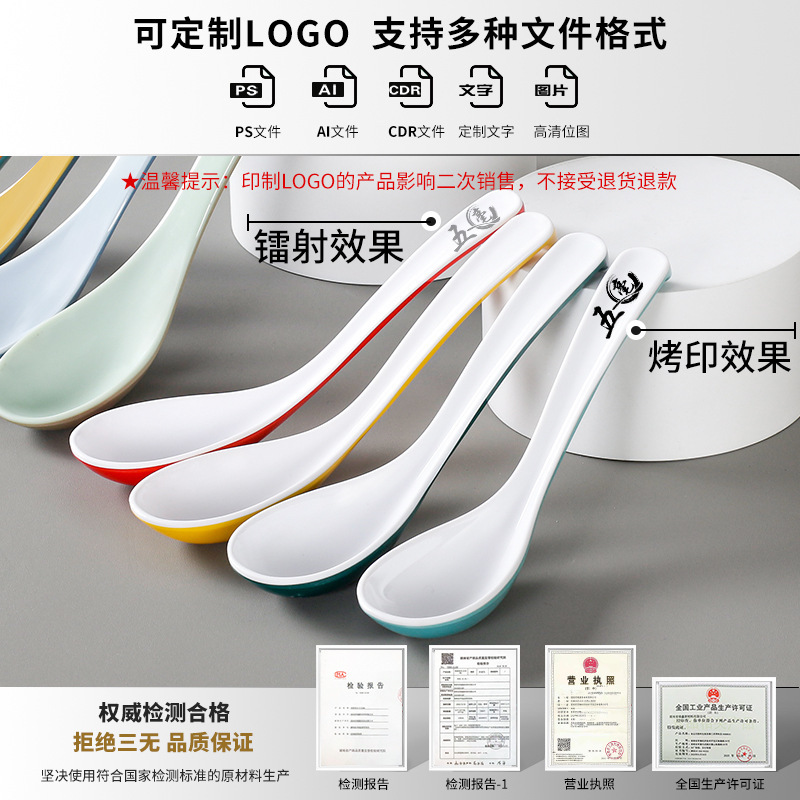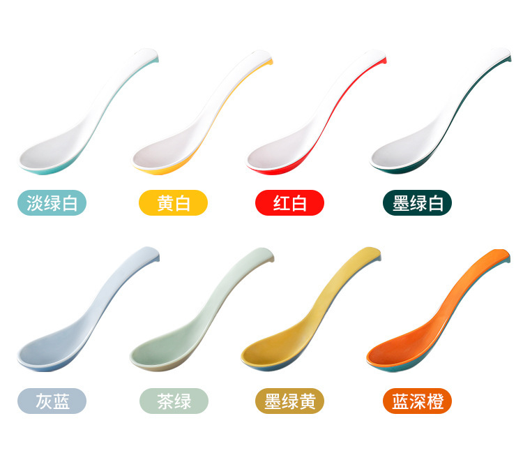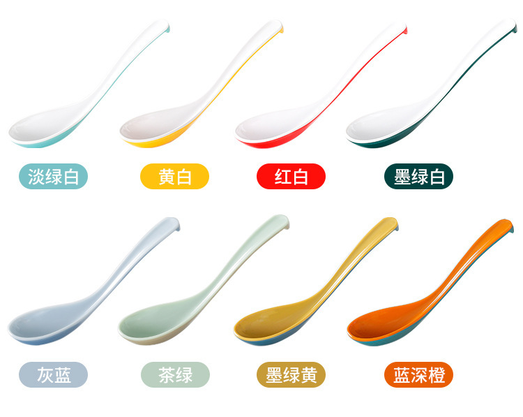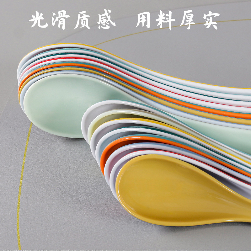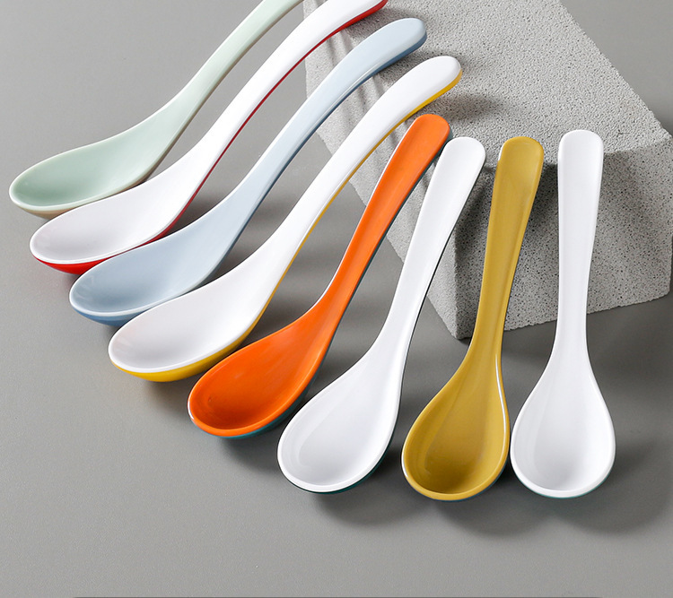 멜라민 식기 긴 손잡이 스푼 모조 도자기 작은 스푼 플라스틱 스프 스푼 시판 레스토랑 아침 식사 가게 스푼 죽 스푼