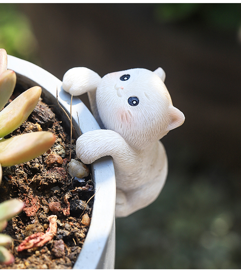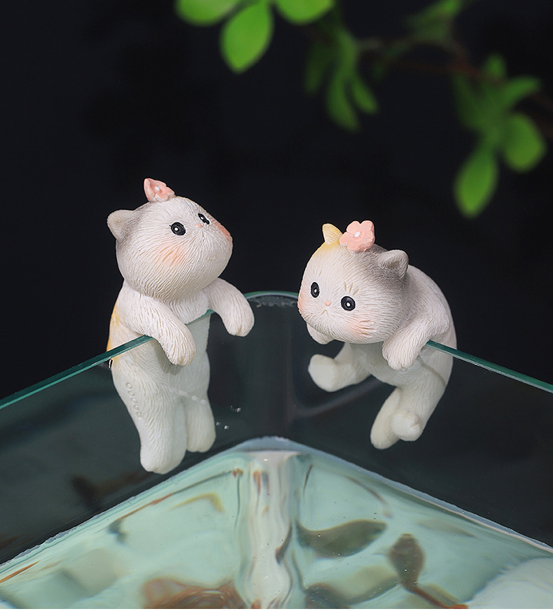Zakka 창조적 인 만화 작은 동물 고양이 물고기 탱크 조경 마이크로 풍경 수지 화분 등반 탱크 장식 작은 장식품