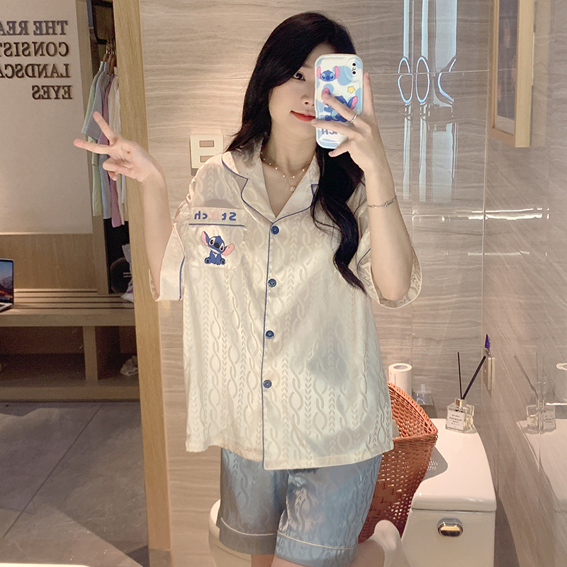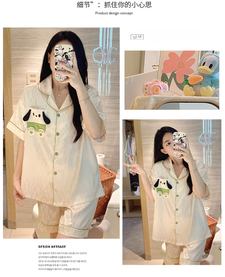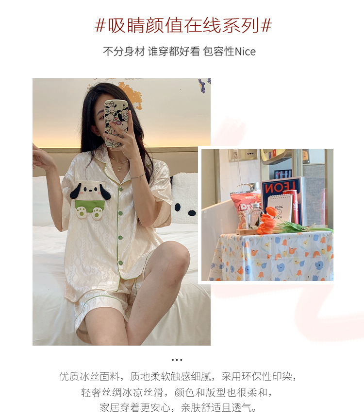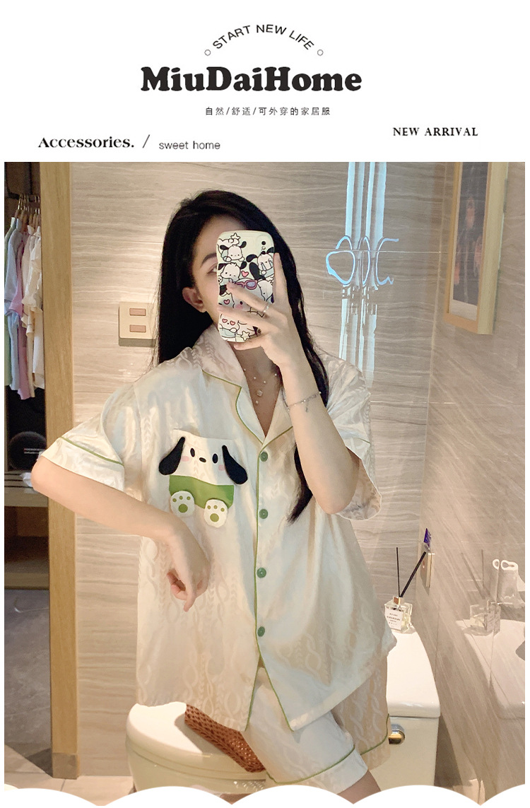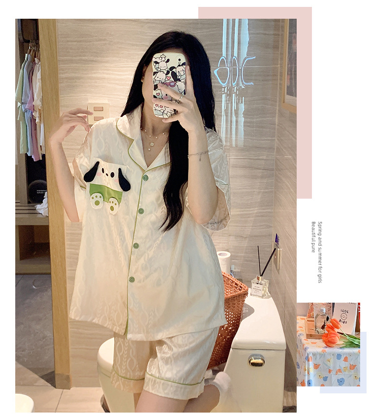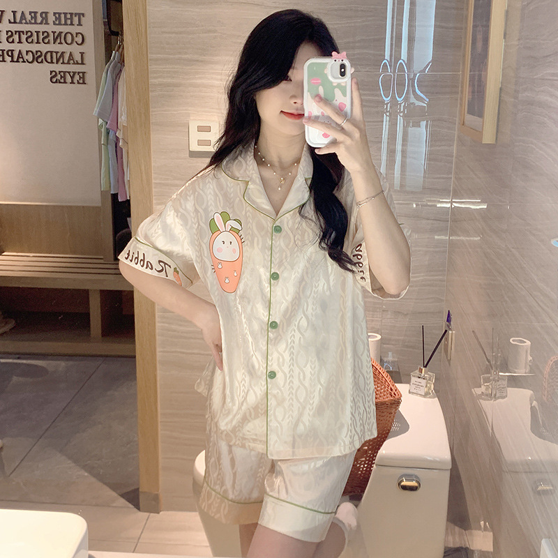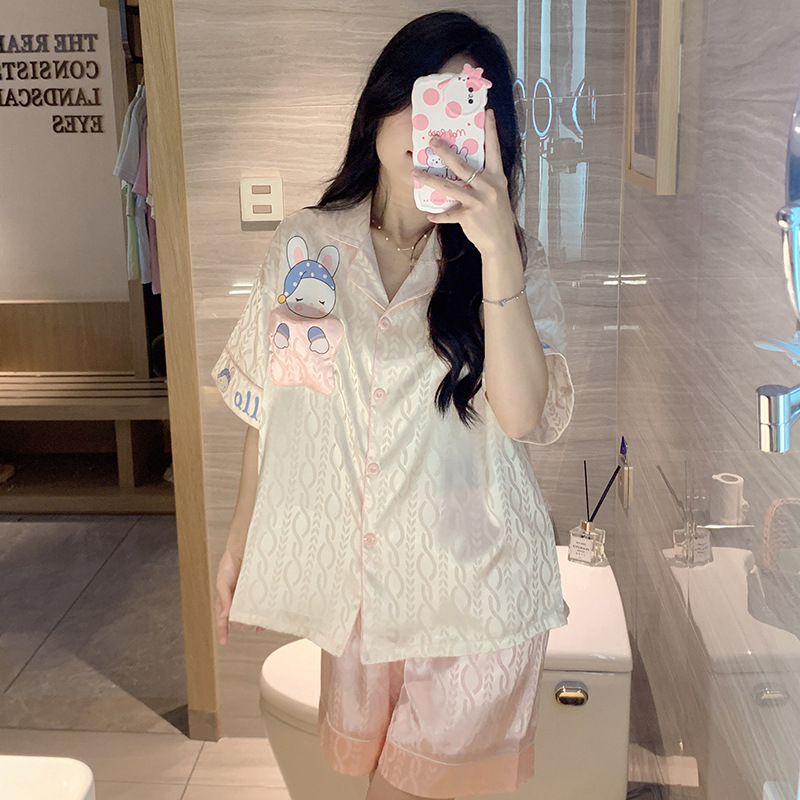 여성용 크로스보더 잠옷, 여름용 아이스 실크 반팔 반바지 세트, 달콤한 만화풍 여름 여성 홈웨어, 외부에서 착용 가능