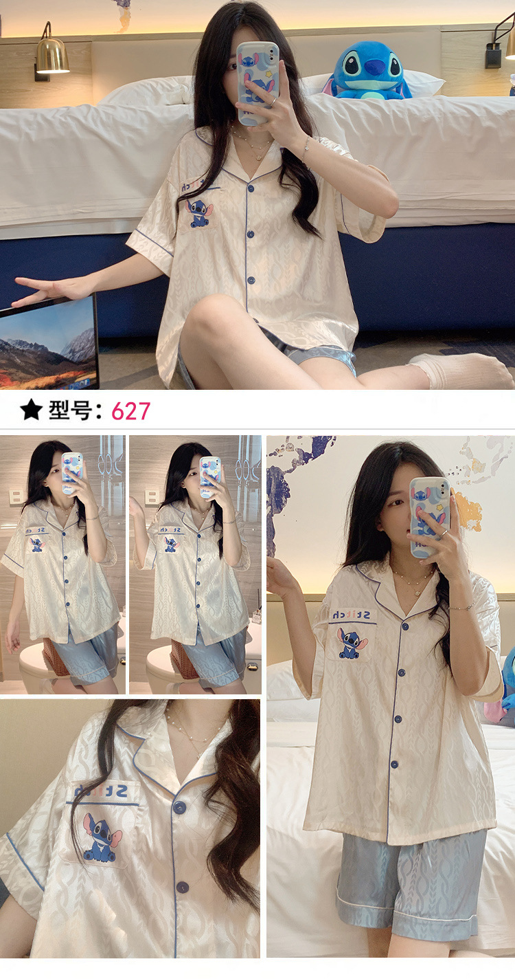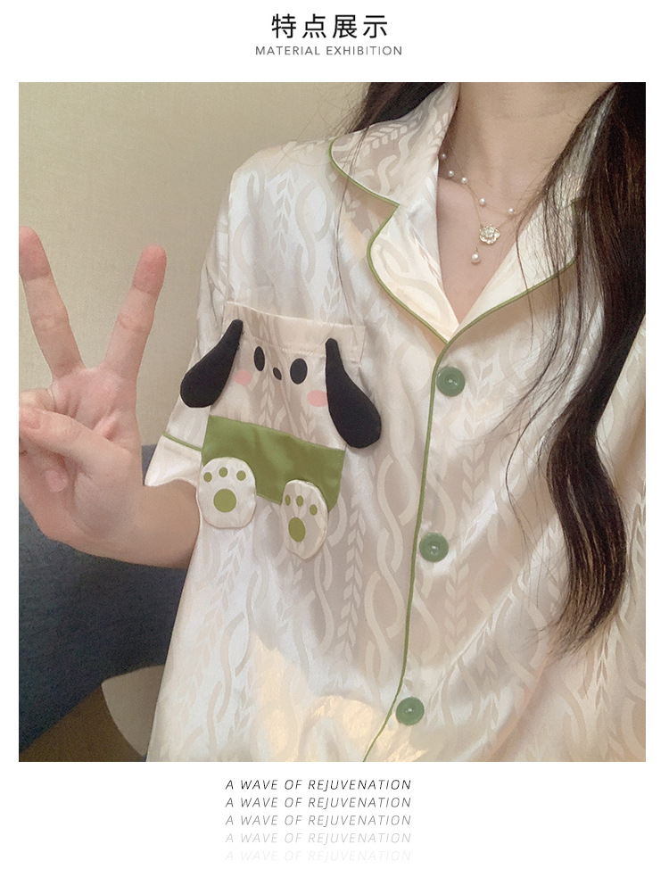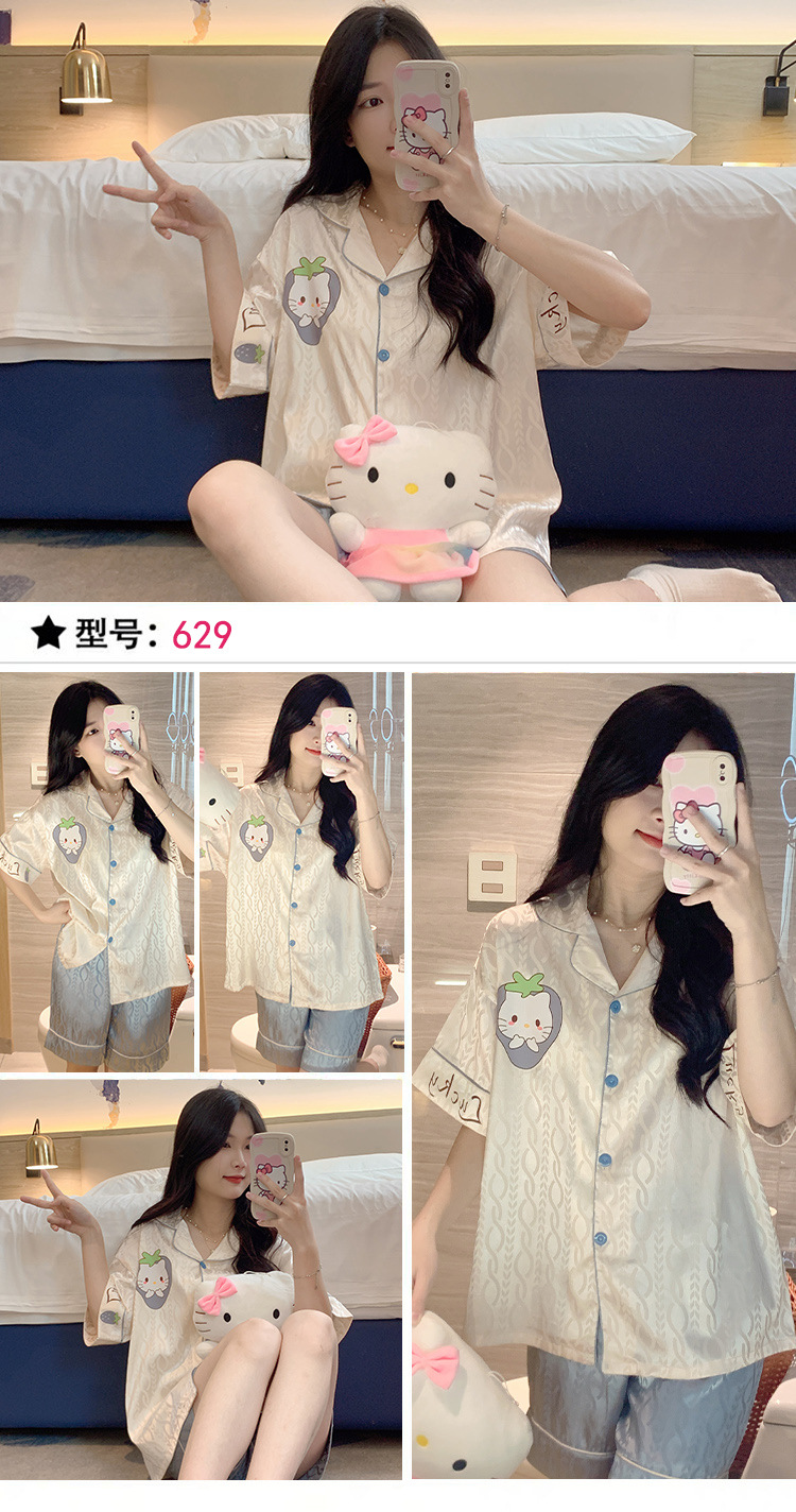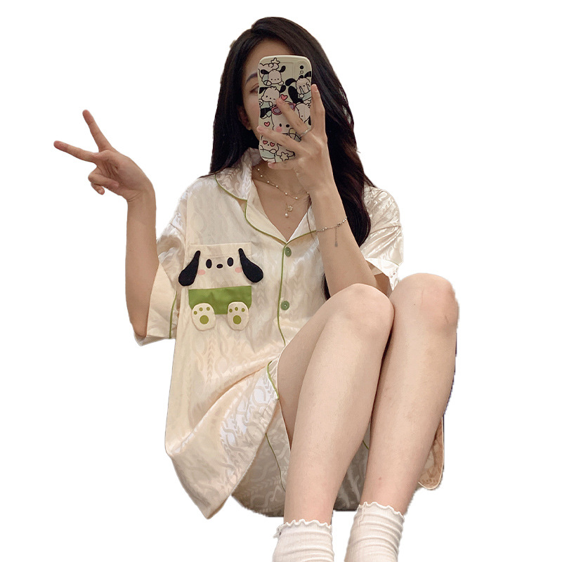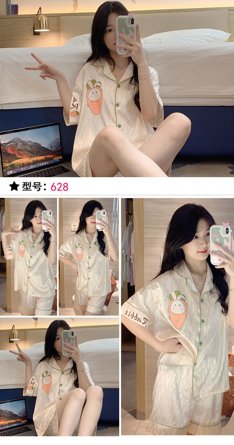 여성용 크로스보더 잠옷, 여름용 아이스 실크 반팔 반바지 세트, 달콤한 만화풍 여름 여성 홈웨어, 외부에서 착용 가능