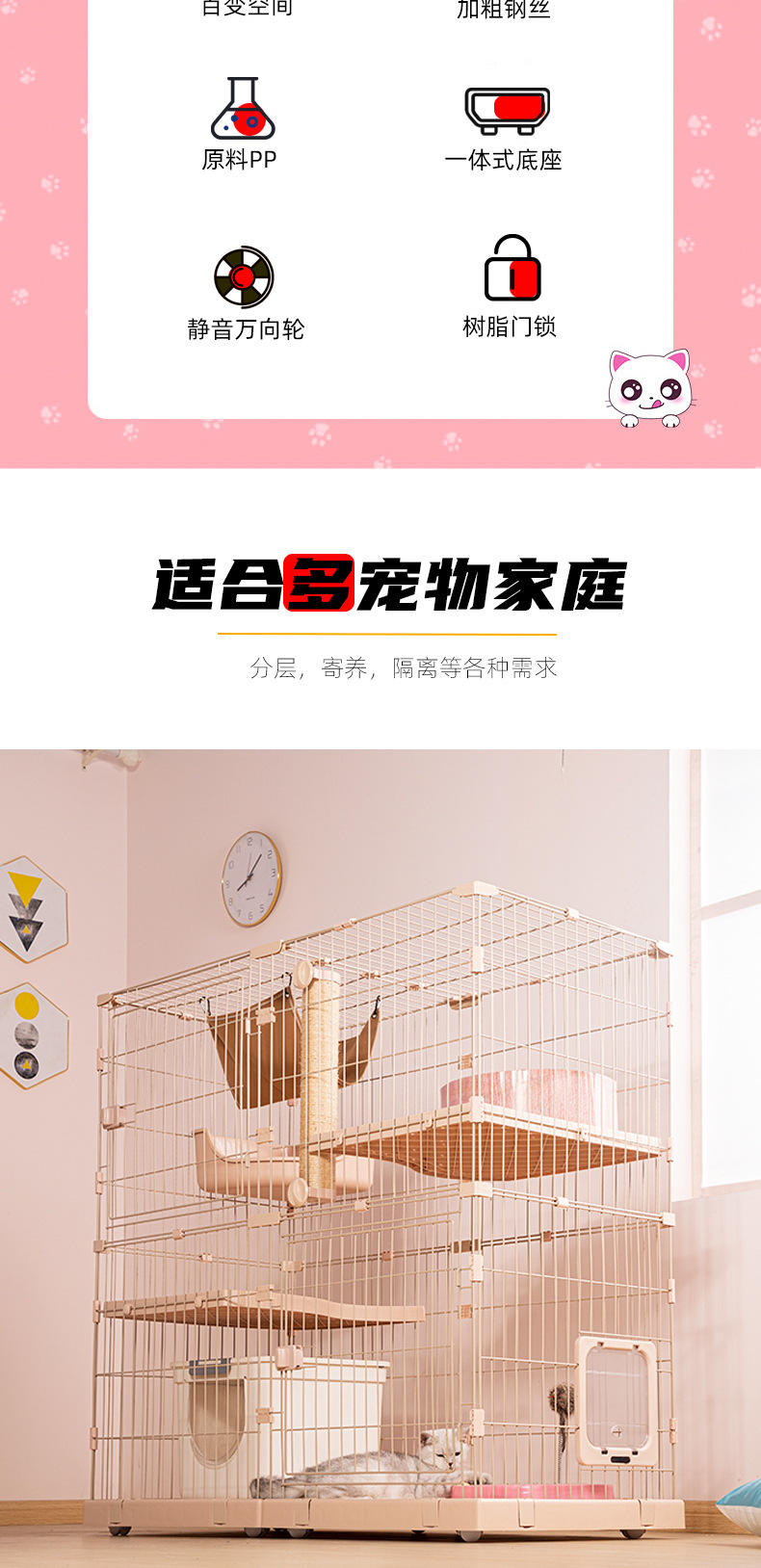 Chuangyi 고양이 케이지 홈 실내 빌라 슈퍼 무료 공간 고양이 고양이 고양이 집 고양이 하우스 고양이 집 고양이 집 무료
