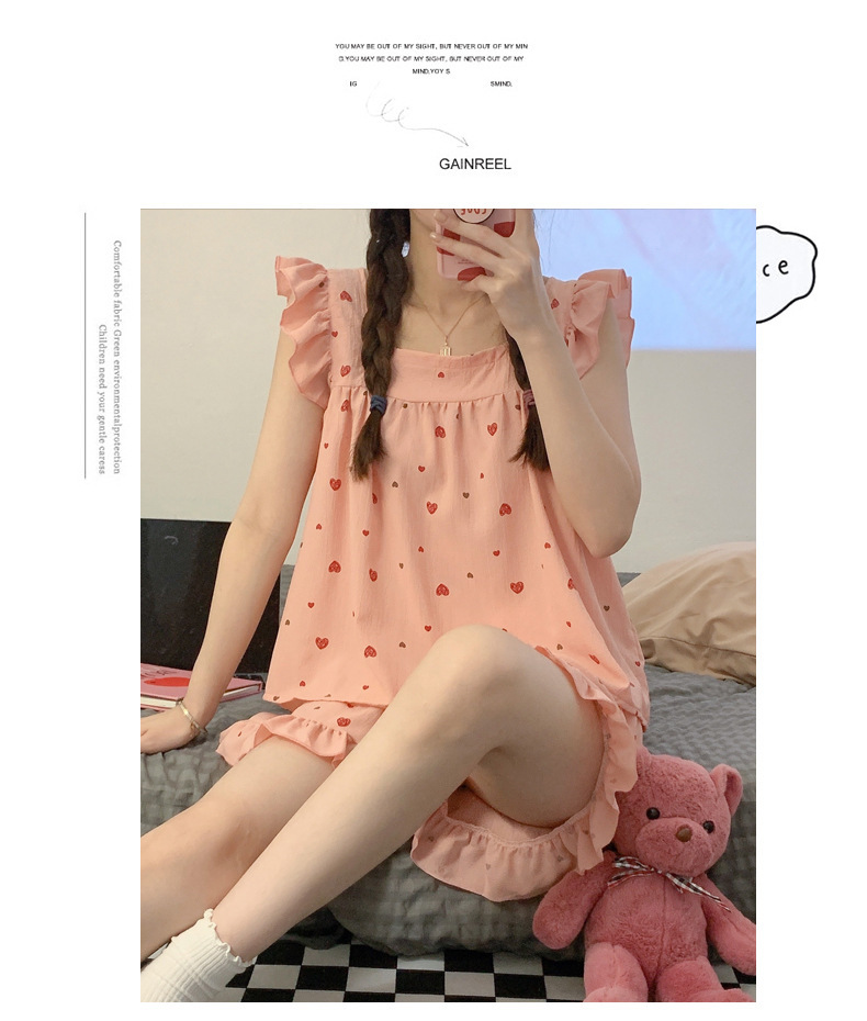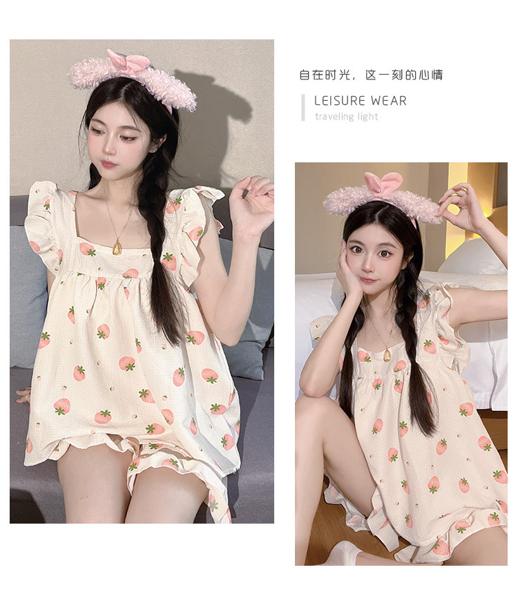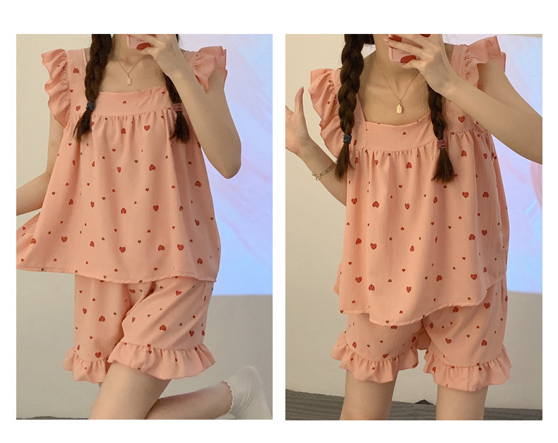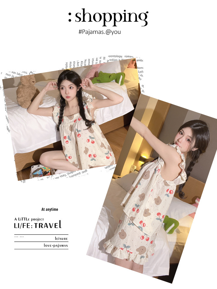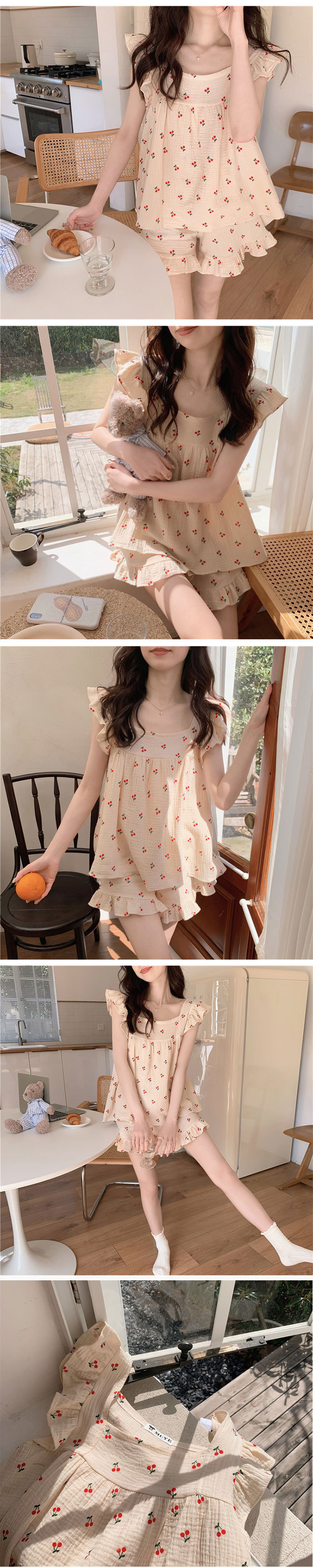 잠옷 여자의 여름 슬링 잠옷 세트 조끼 반바지 체리 버블 스타일 투피스 가정 옷