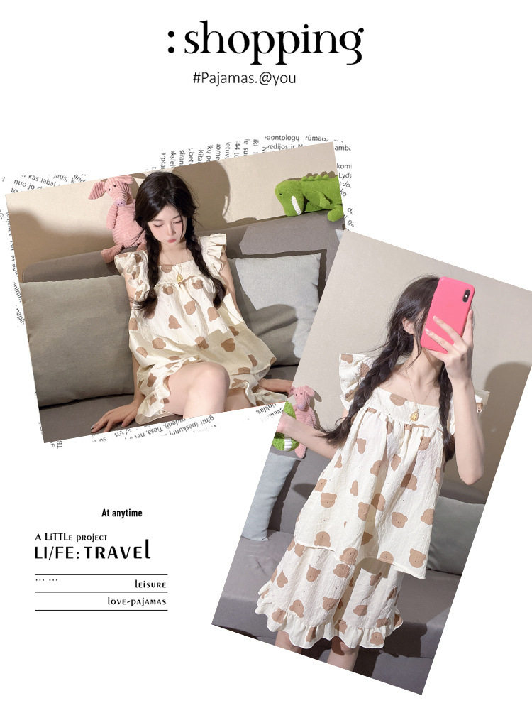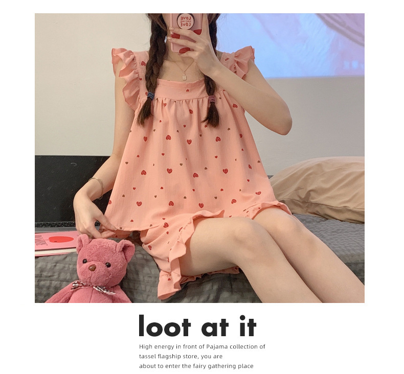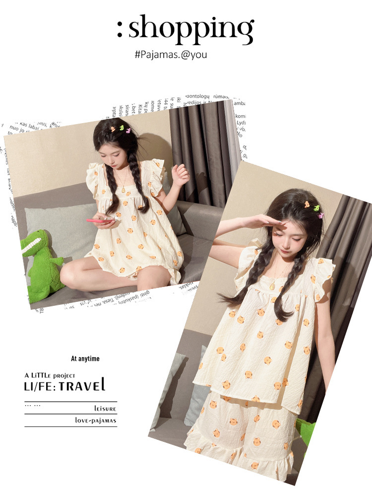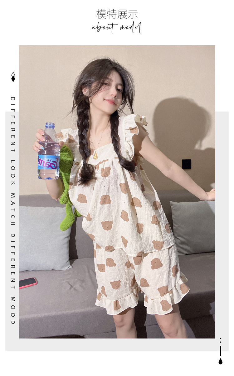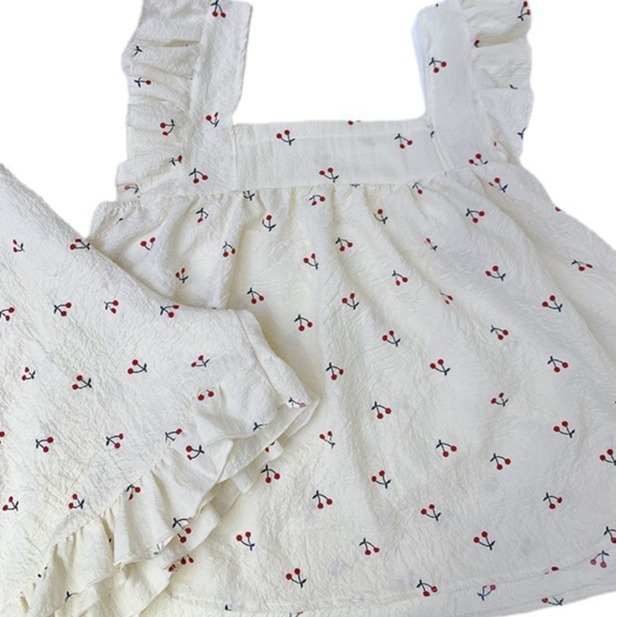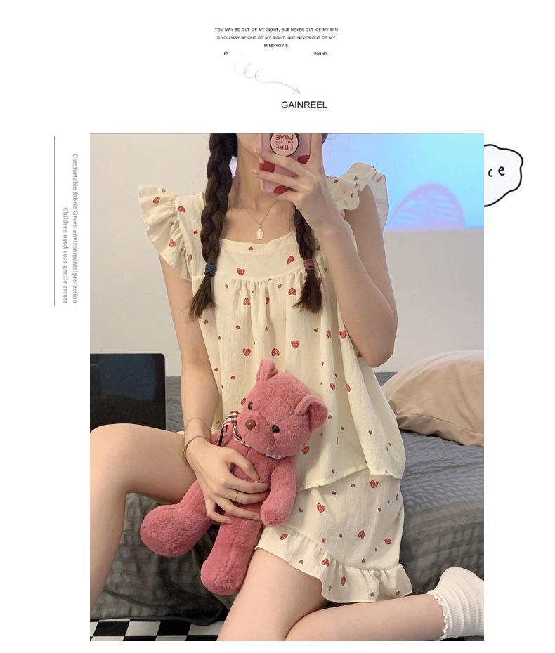 잠옷 여자의 여름 슬링 잠옷 세트 조끼 반바지 체리 버블 스타일 투피스 가정 옷