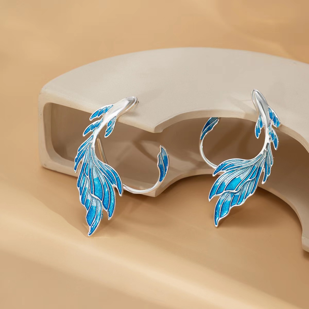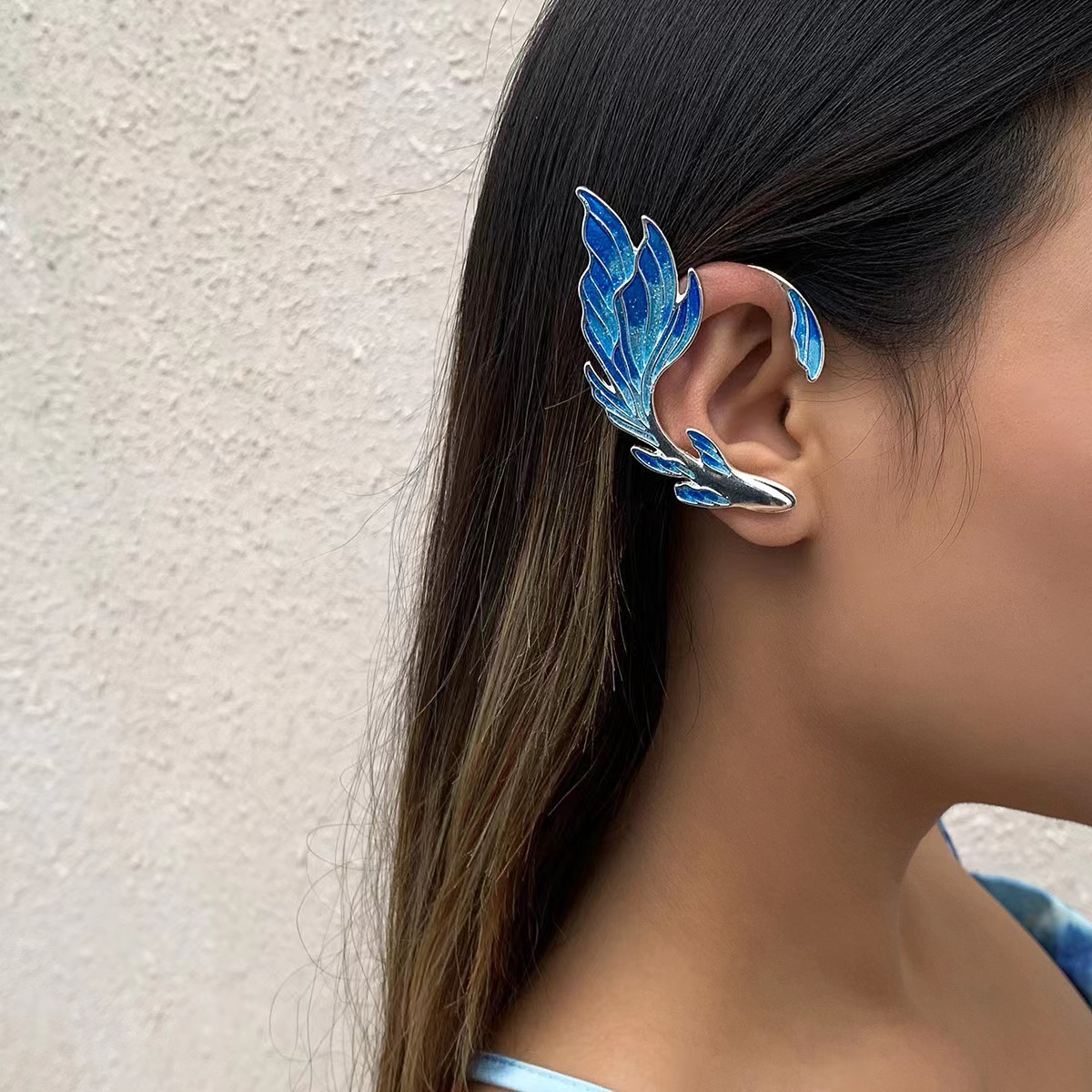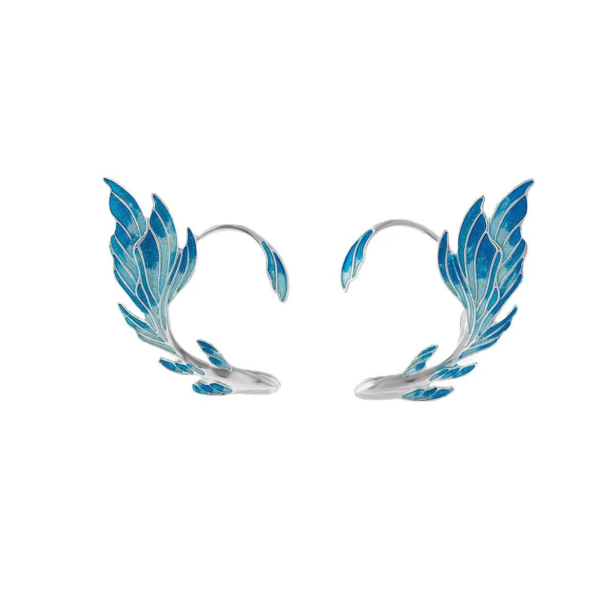 국경 간 유럽 및 미국 뜨거운 판매 금붕어 엘프 날개 그라디언트 오일 드롭 이어 걸이 크리에이티브 이어 본 클립 엘프 귀걸이