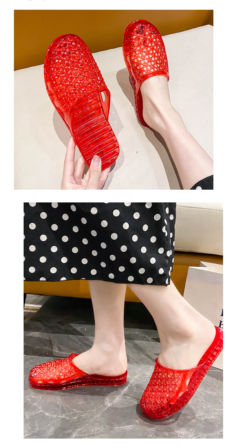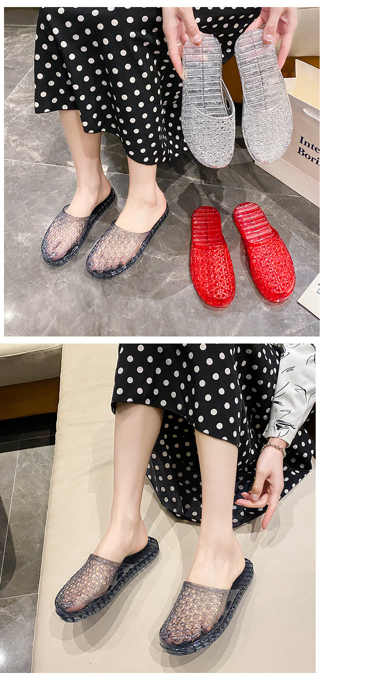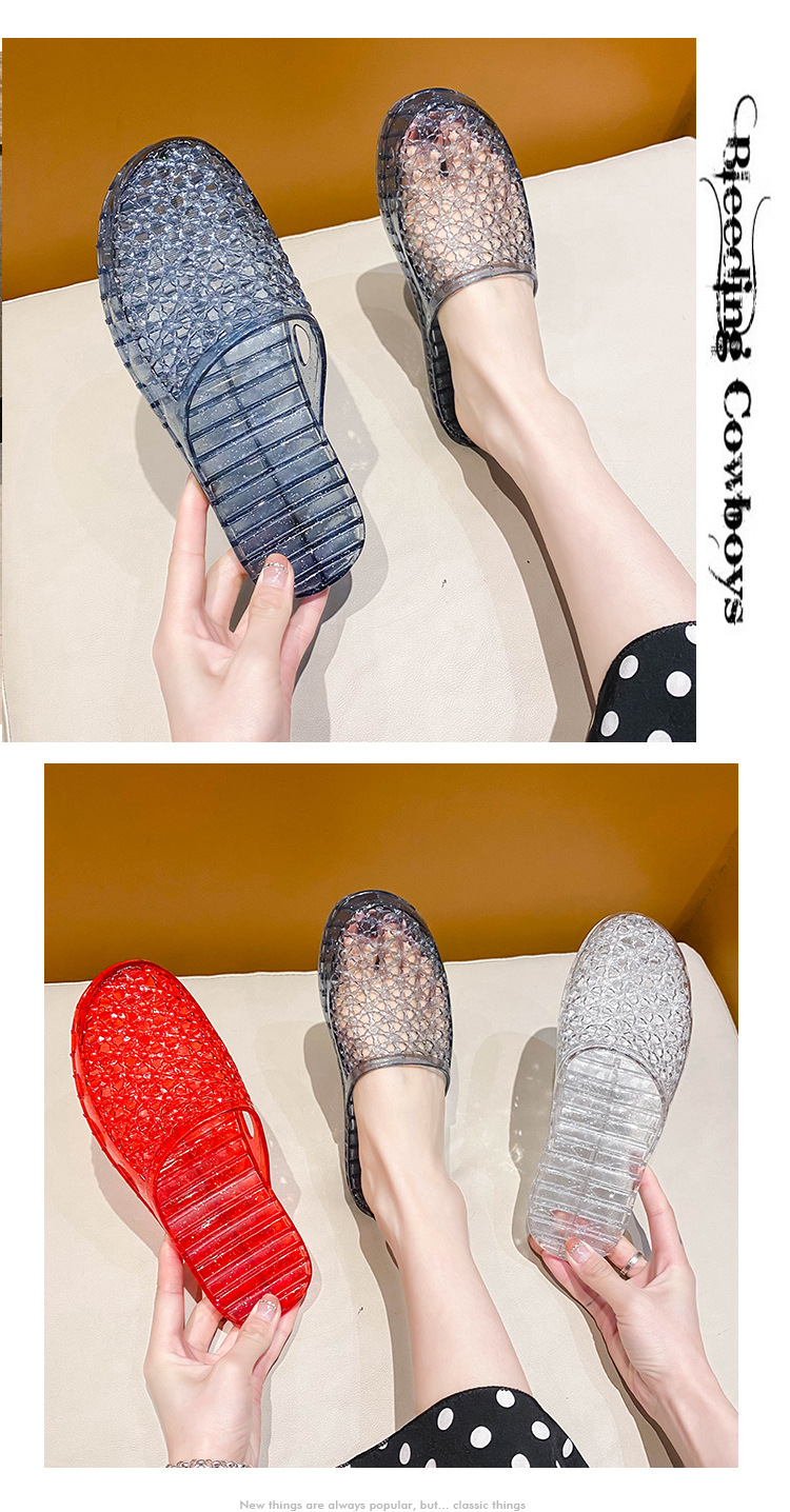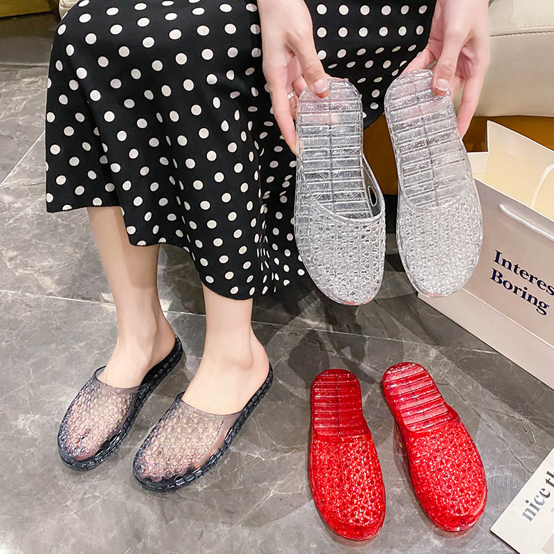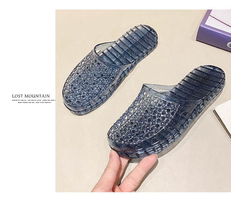 인터넷 연예인 세미 바오토우 슬리퍼 여성용 여름 새로운 중공 통기성 슬립온 두꺼운 바닥 미끄럼 방지 욕실 크리스탈 샌들