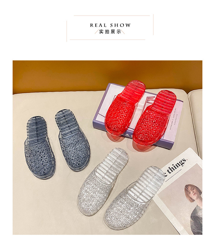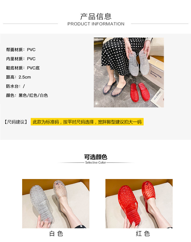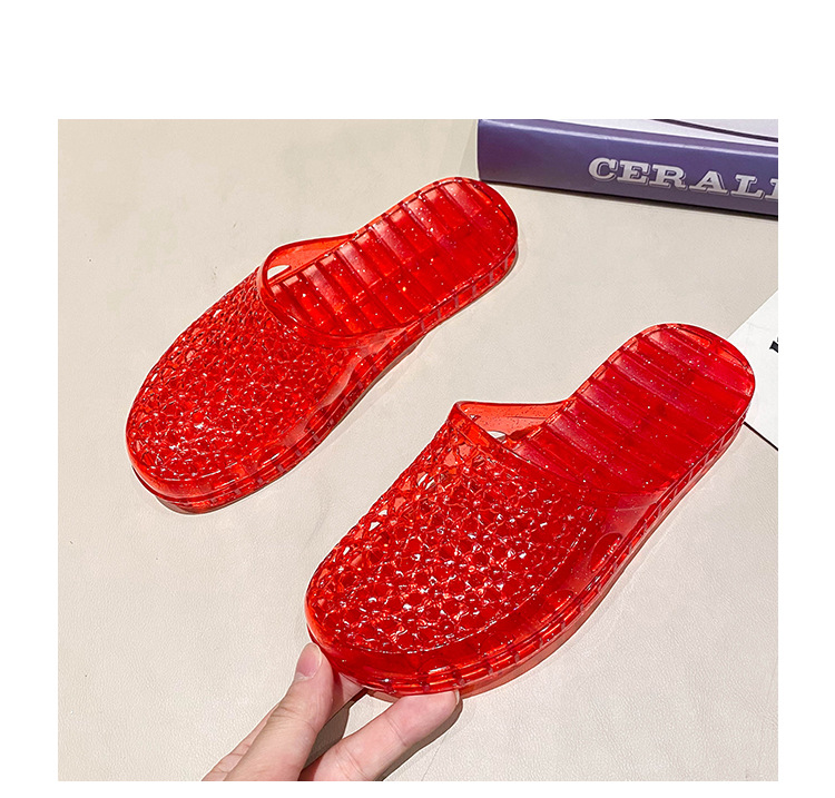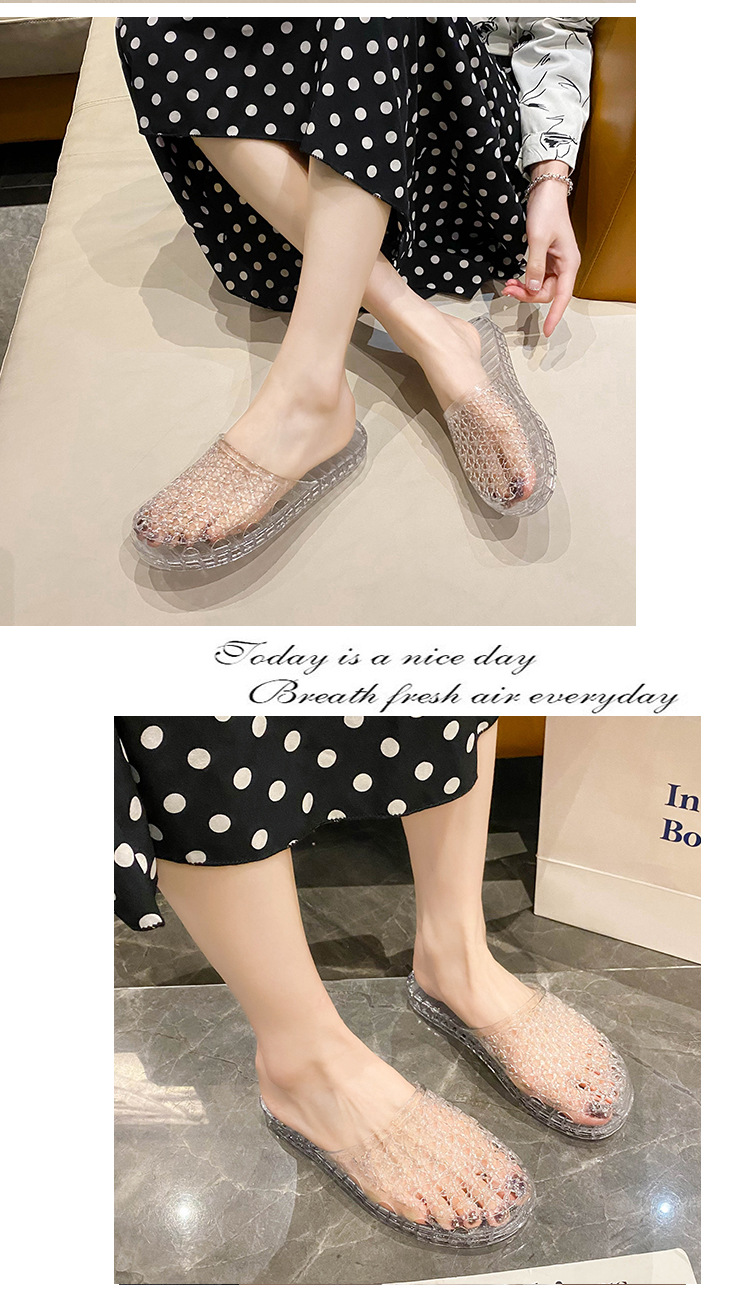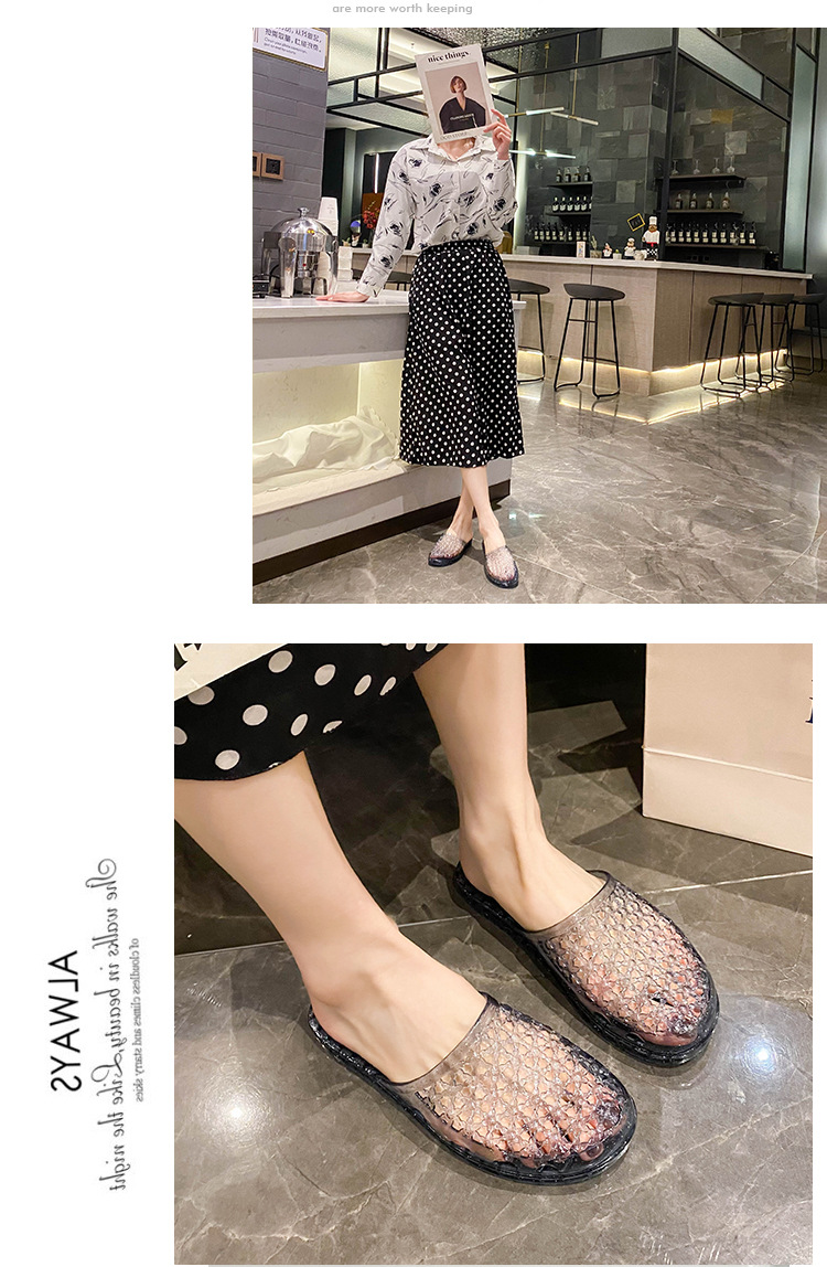 인터넷 연예인 세미 바오토우 슬리퍼 여성용 여름 새로운 중공 통기성 슬립온 두꺼운 바닥 미끄럼 방지 욕실 크리스탈 샌들