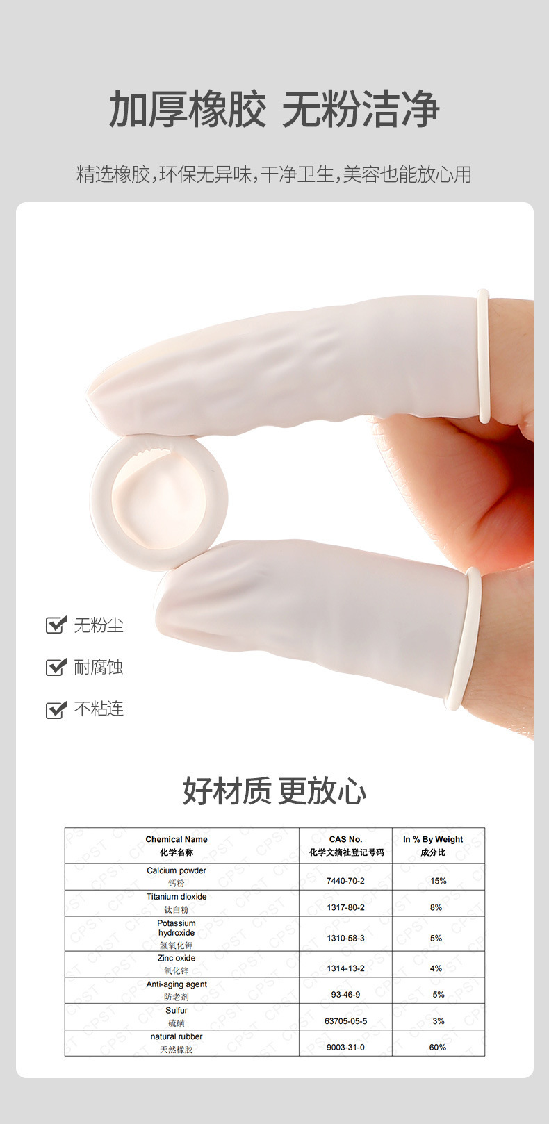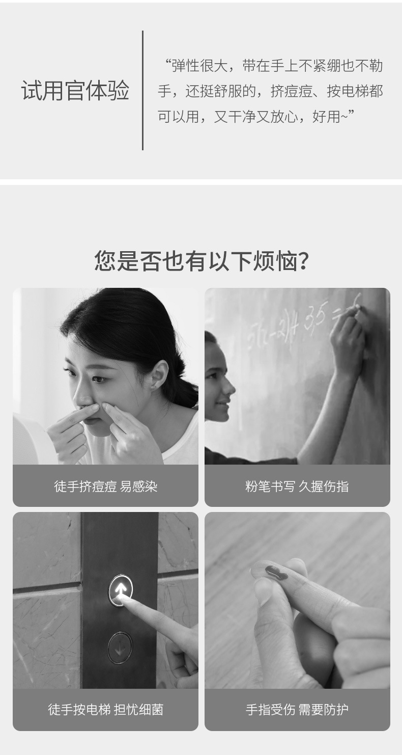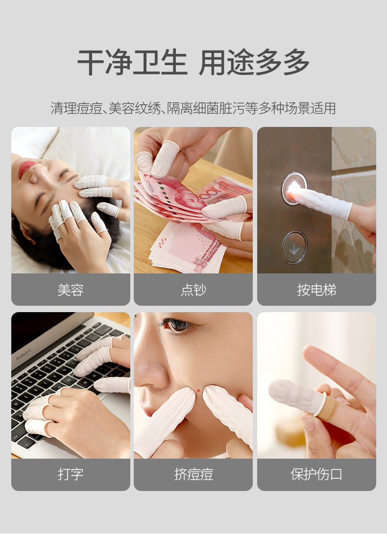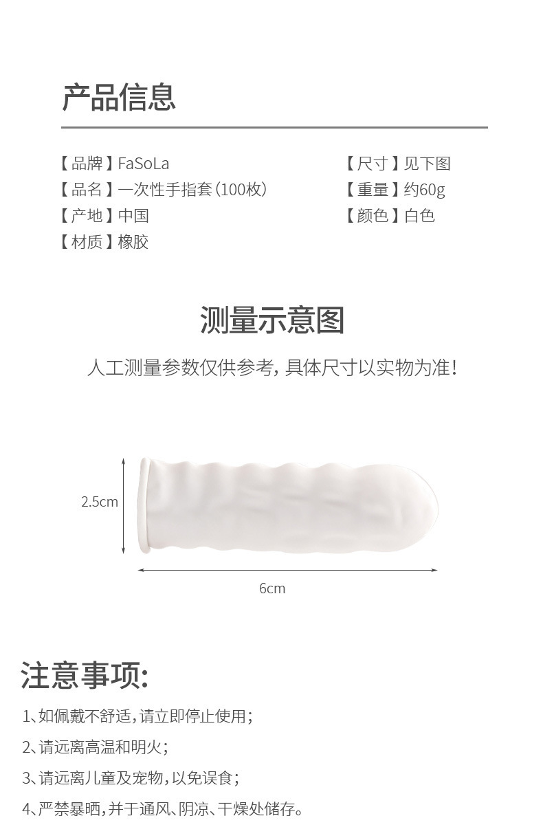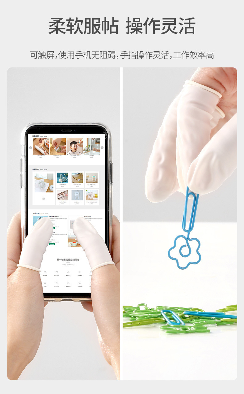 FaSoLa 농축 파우더 프리 미끄럼 방지 내마모성 고탄성 스티커 터치 스크린 유연한 작동 일회용 손가락 장갑
