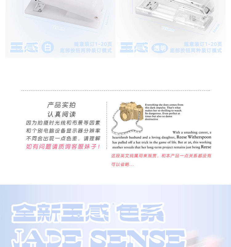Nijiayu 색상 감지 스테이플러 학생 사무실 문구 휴대용 노동 절약 스테이플러 다기능 휴대용 스테이플러