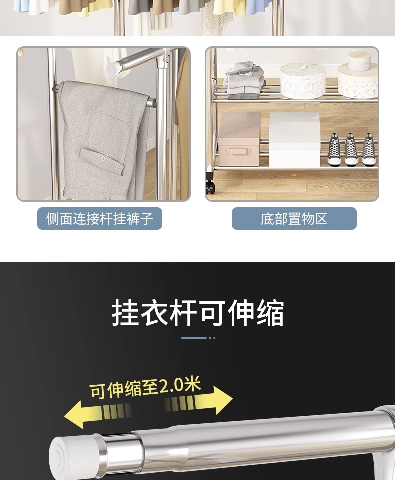 평행 막대 더블 1.2 m -2.0 m [방풍 후크, 양말 클립, 휠 보내기]