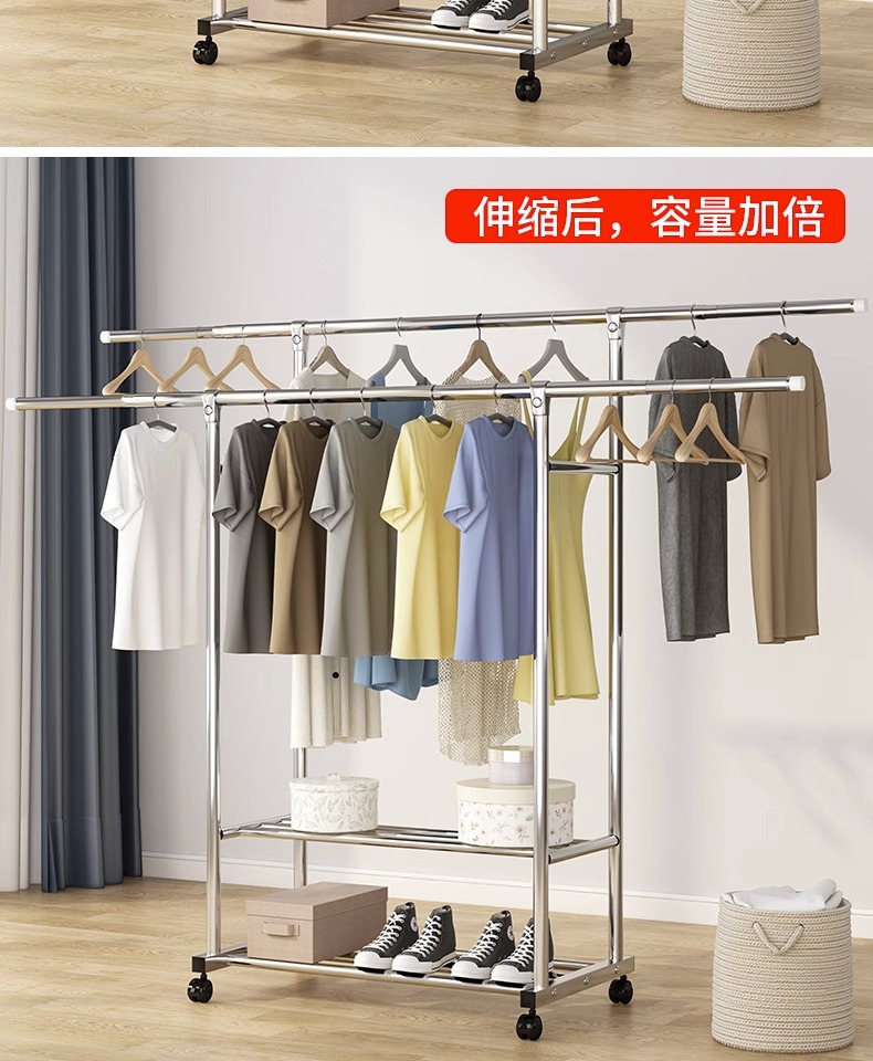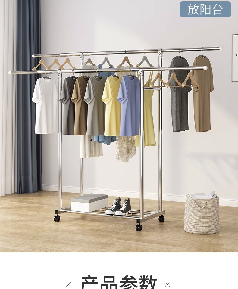 스테인레스 스틸 더블 로드 건조 랙 바닥에 서있는 접이식 가정용 발코니 건조 랙 개폐식 야외 건조 이불 유물 걸이