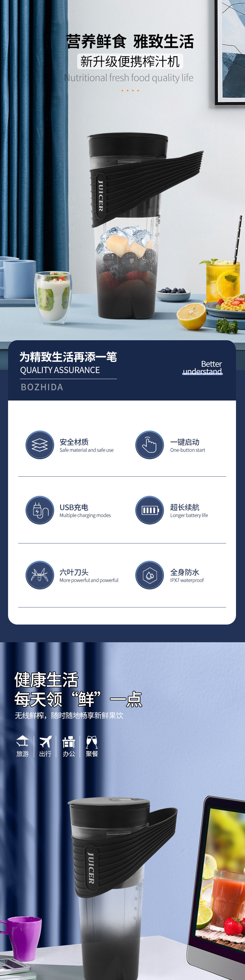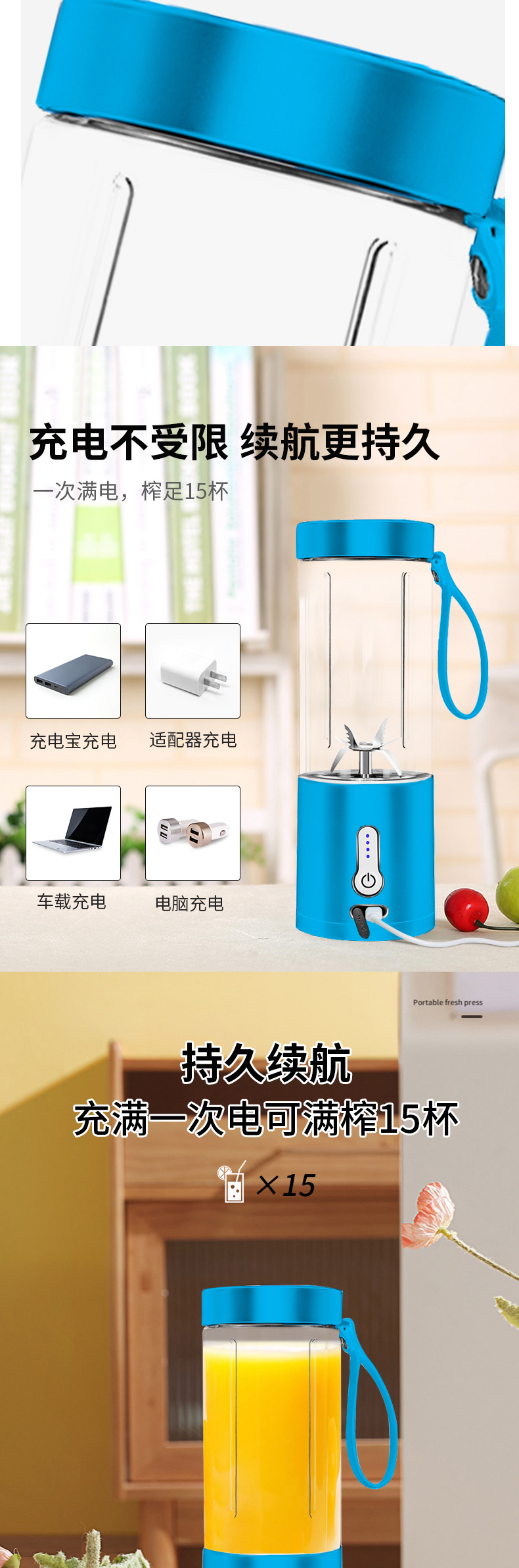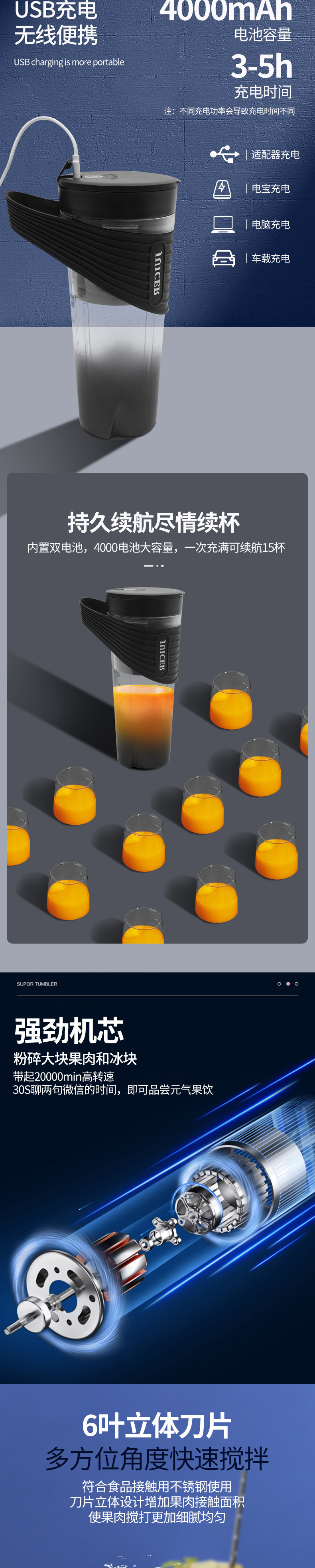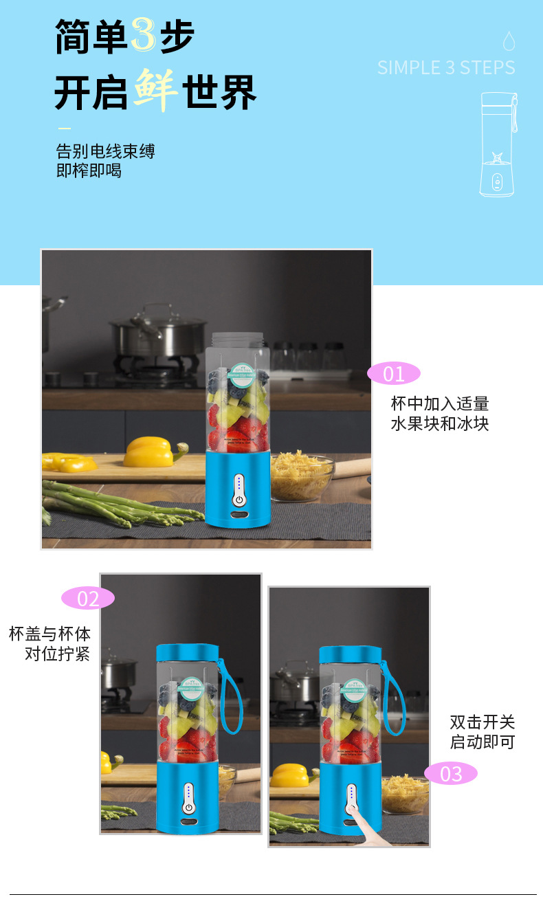 휴대용 주스 컵 전기 주스 컵 아이스 크러셔 주방 소형 믹싱 컵 과일 과즙 기 공장 도매