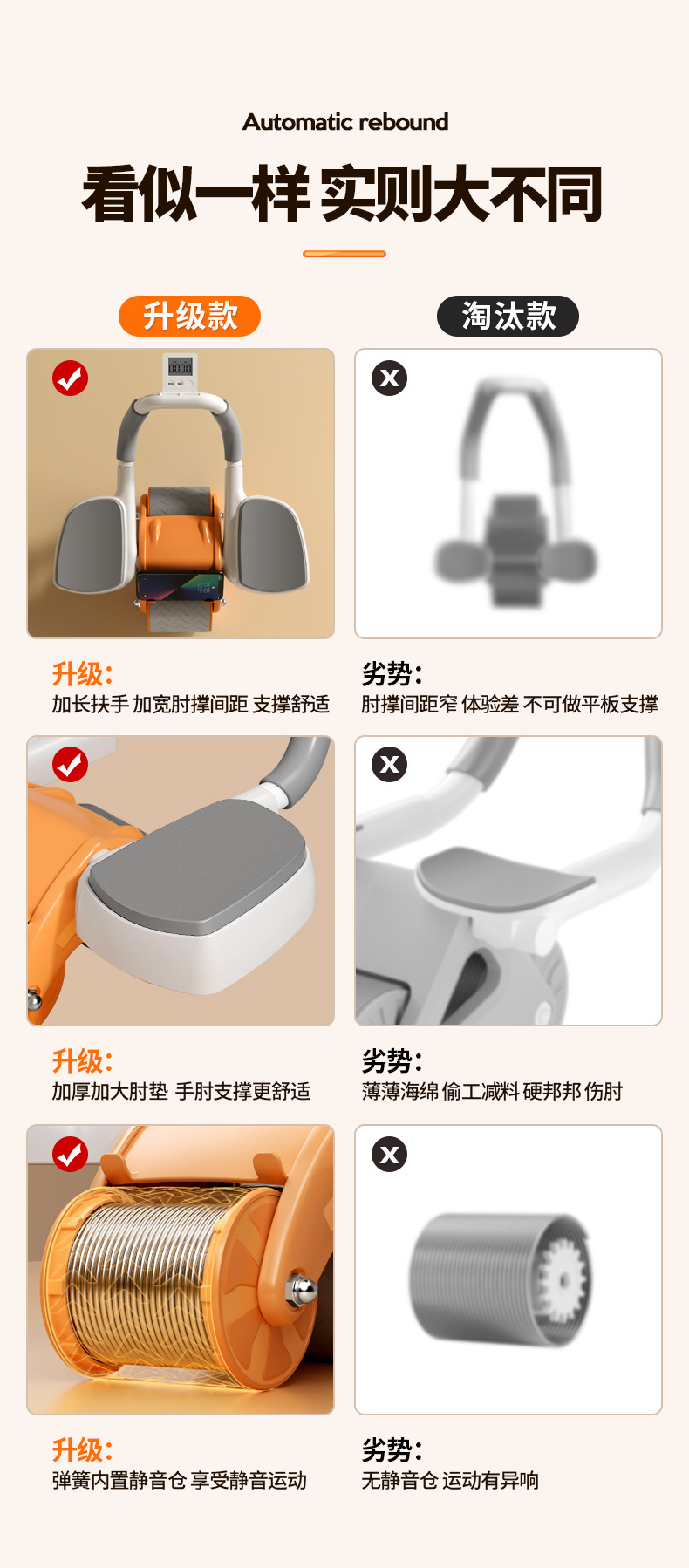 복부 휠 자동 리바운드 복부 팅커 복부 운동 복부 근육 훈련 유물 남성과 여성의 가정용 팔꿈치 지원 롤러 피트니스 장비