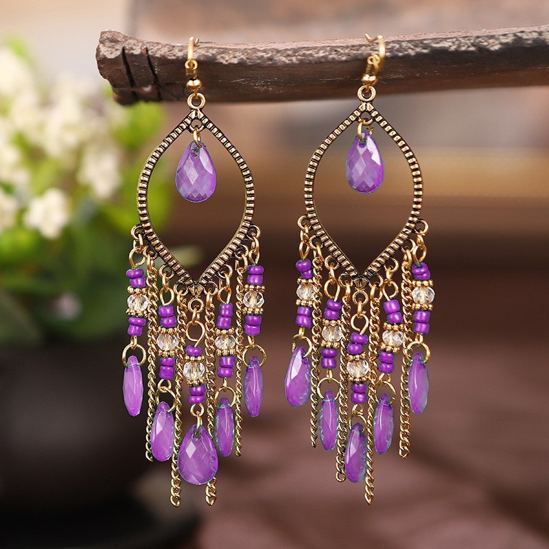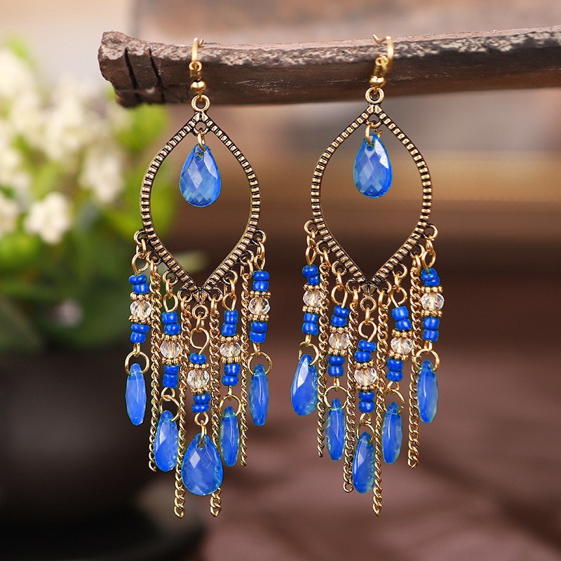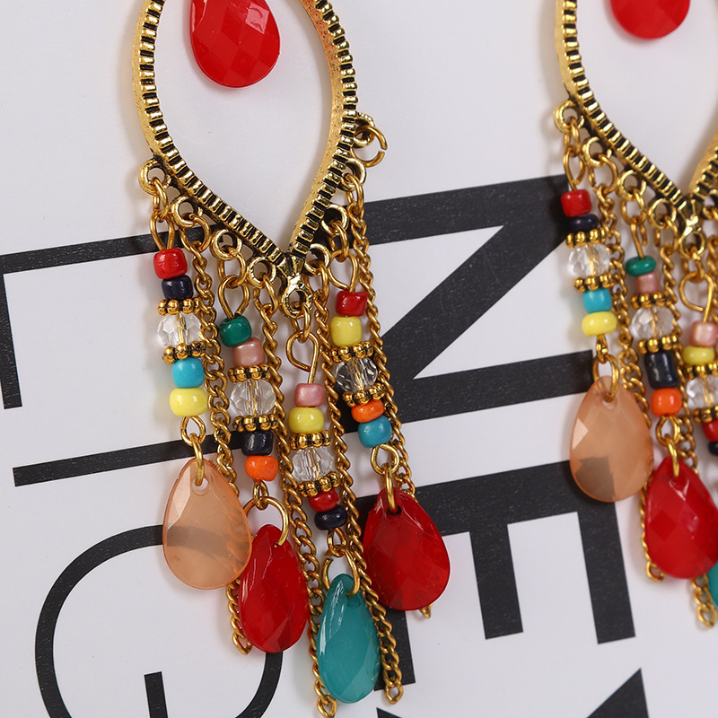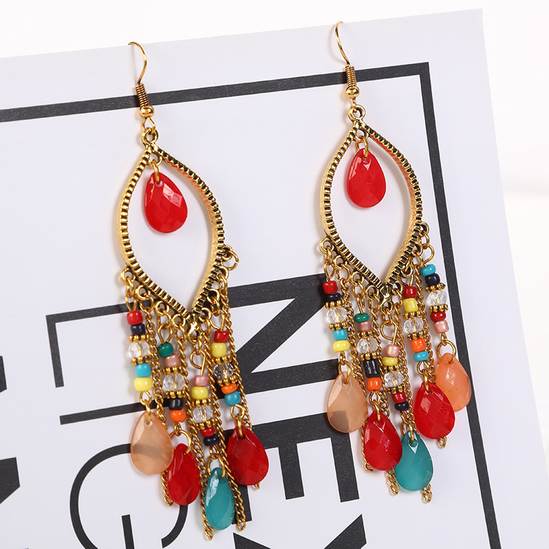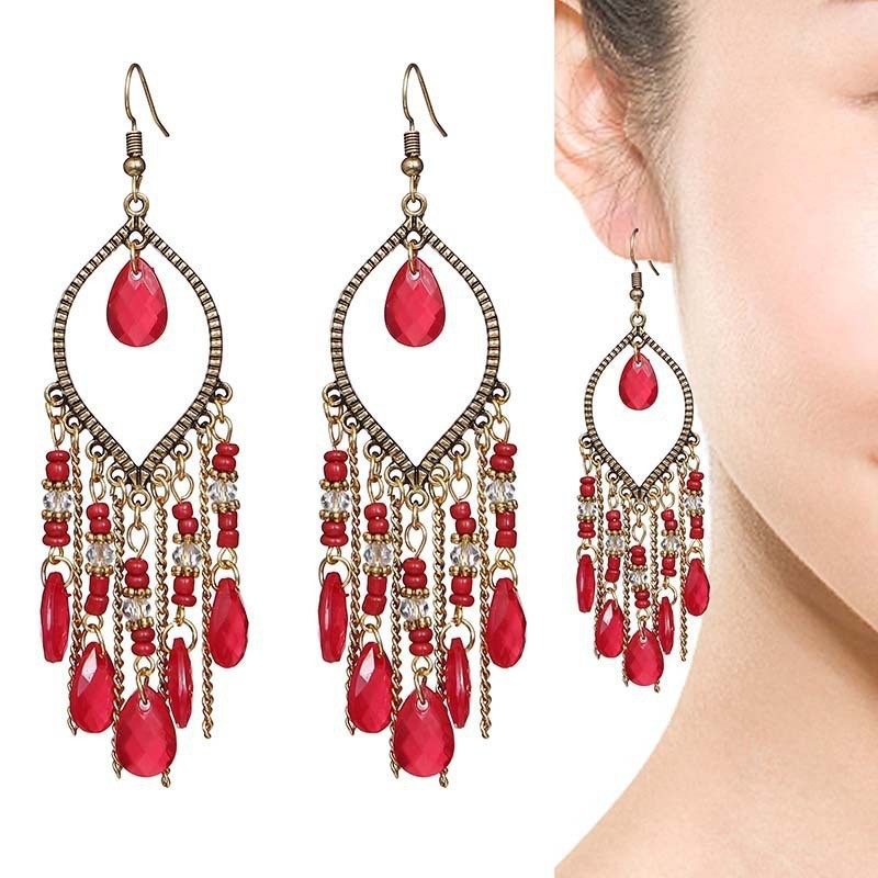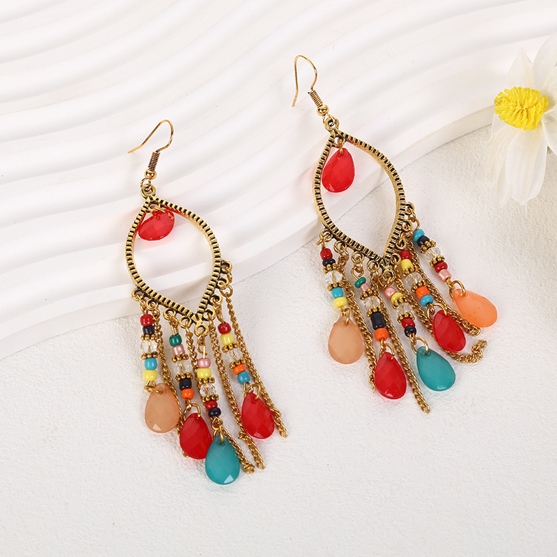 국경을 넘는 인기 수제 물방울 쌀알 귀걸이 2025 보헤미안 스타일 귀걸이 개성 넘치는 여행 사진 촬영용 귀걸이