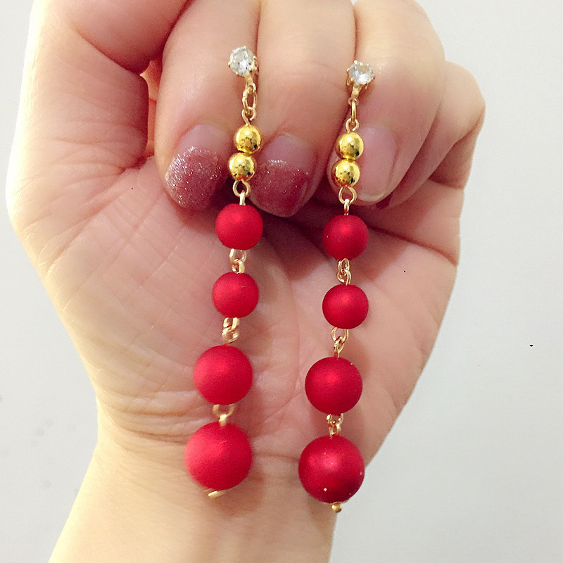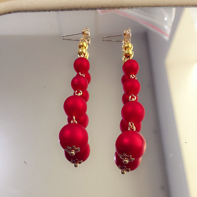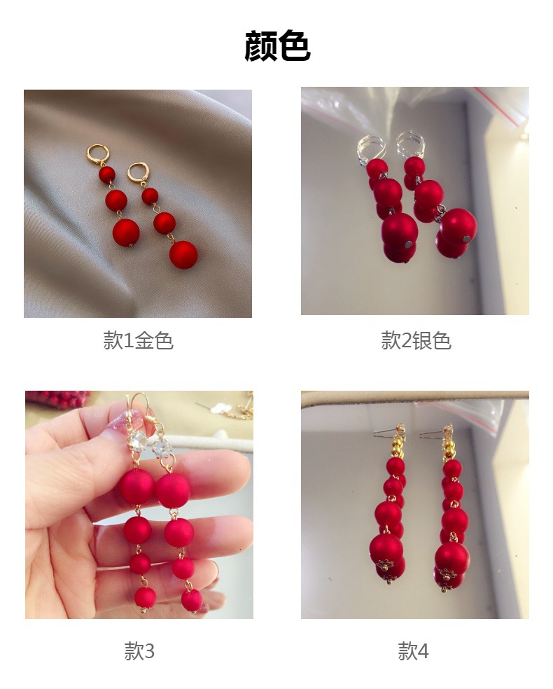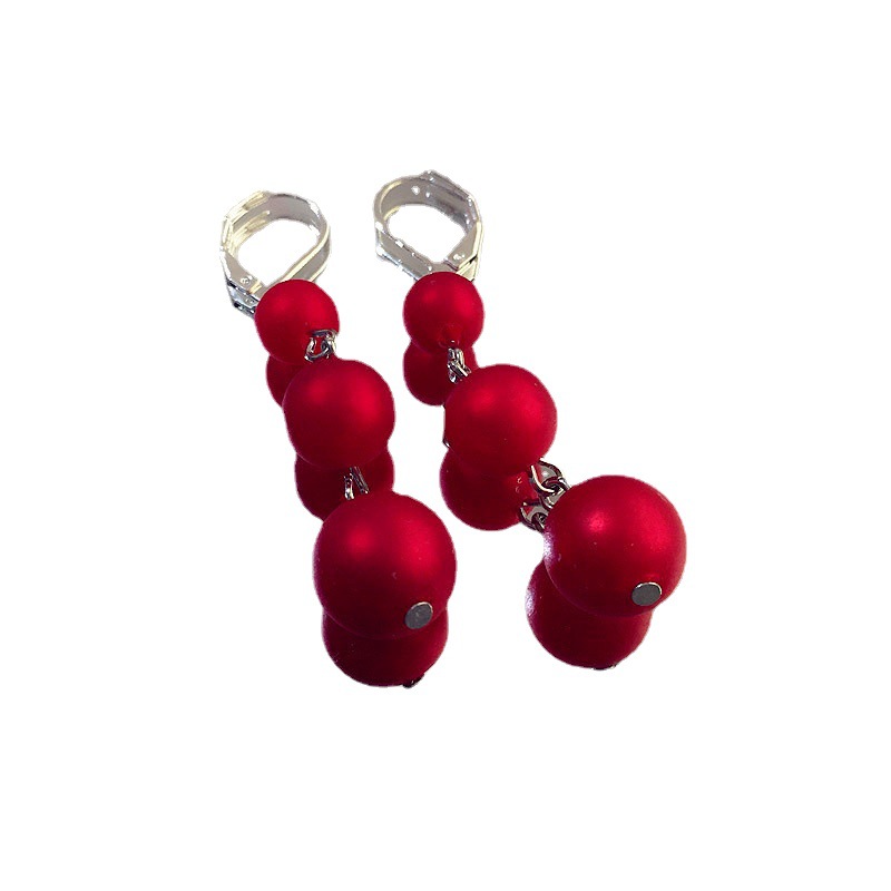 925 실버 바늘 유럽과 미국 패션 젖빛 붉은 진주 귀걸이 술 귀걸이 여성의 인터넷 연예인 우아한 귀걸이