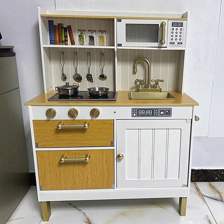 나무 빛 럭셔리 네온 라이트 주방 어린이 놀이 집 시뮬레이션 주방 용품 유치원 놀이터 부모-자식 커뮤니케이션 장난감