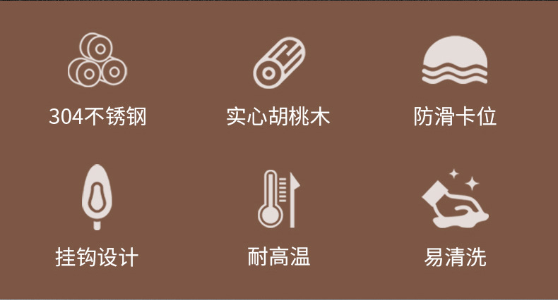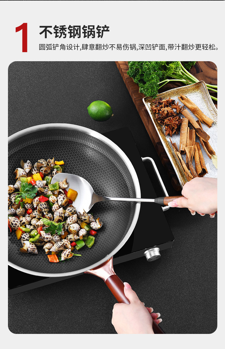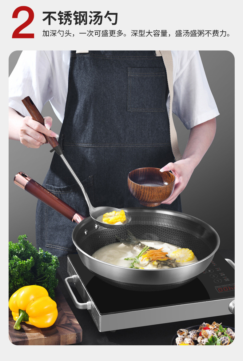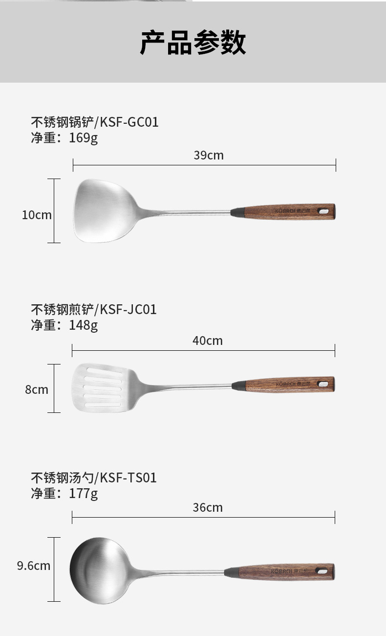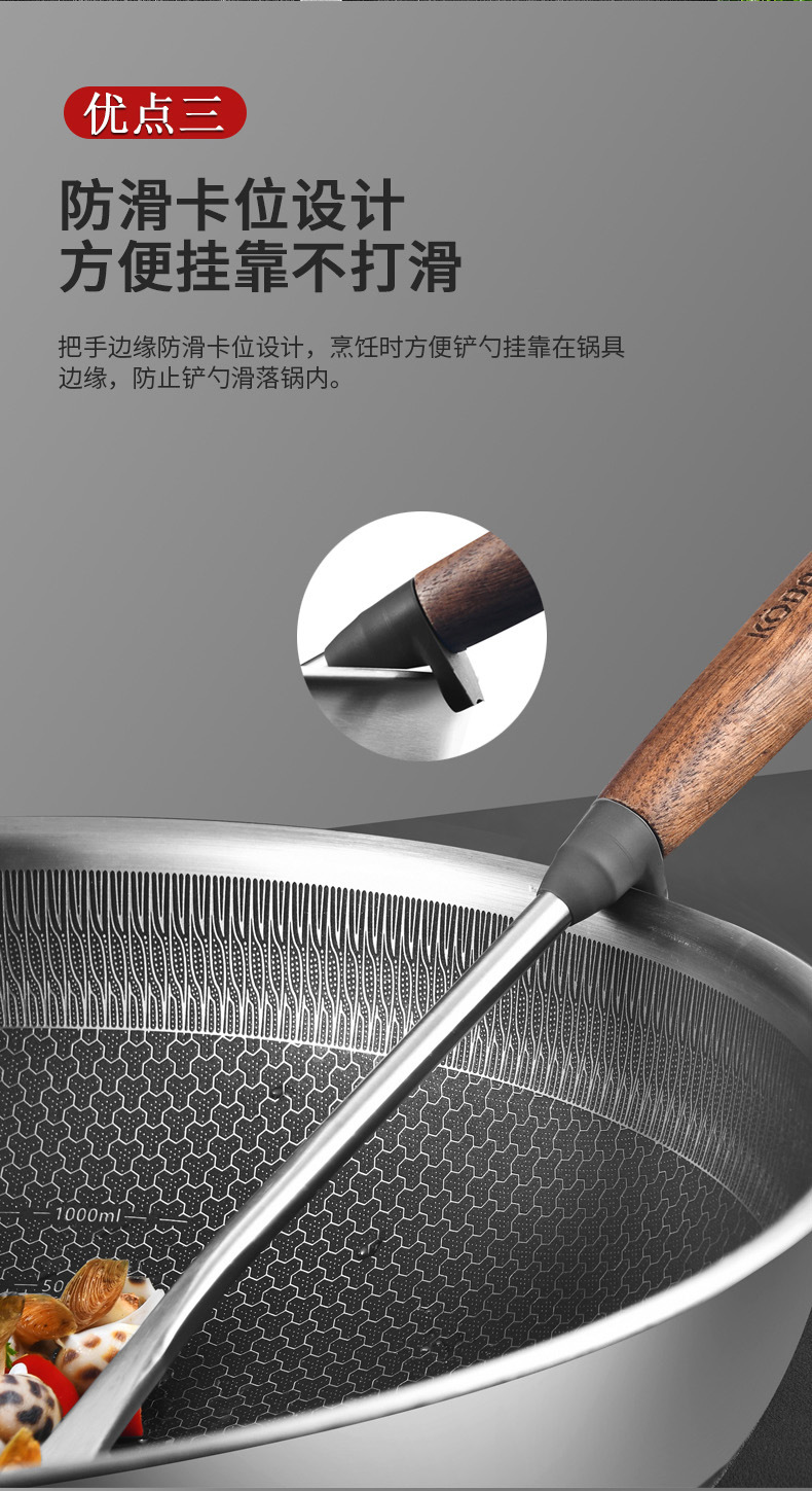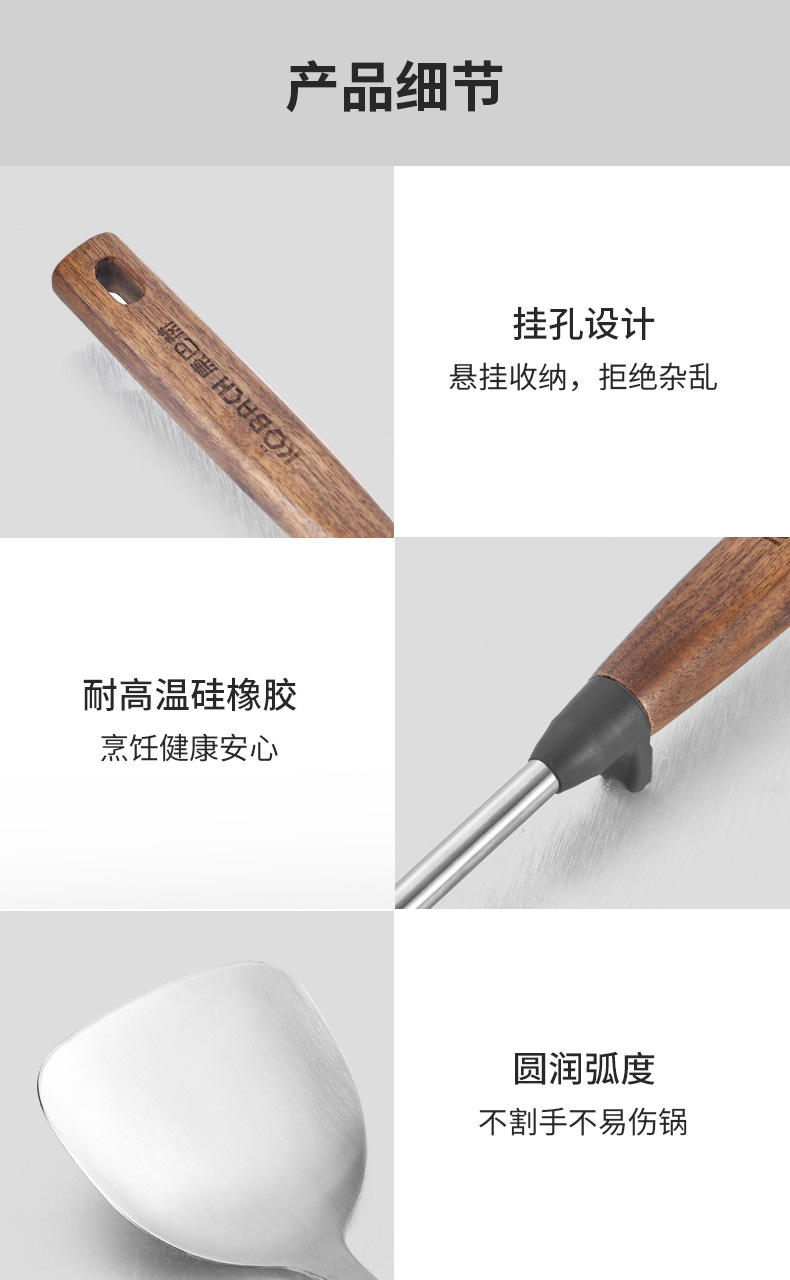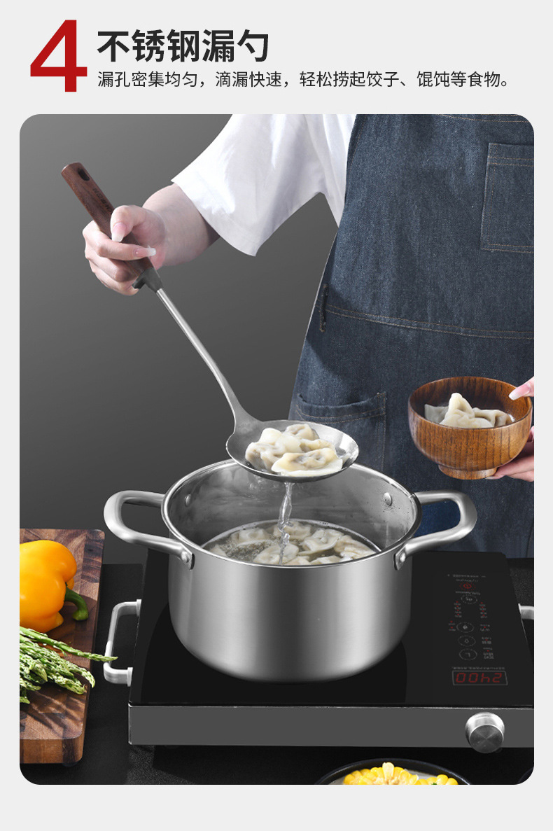Kangbach 주걱 304 스테인레스 스틸 가정용 호두 손잡이 주걱 숟가락 강철 주걱 수프 숟가락 튀김 삽 소쿠리 실 누출