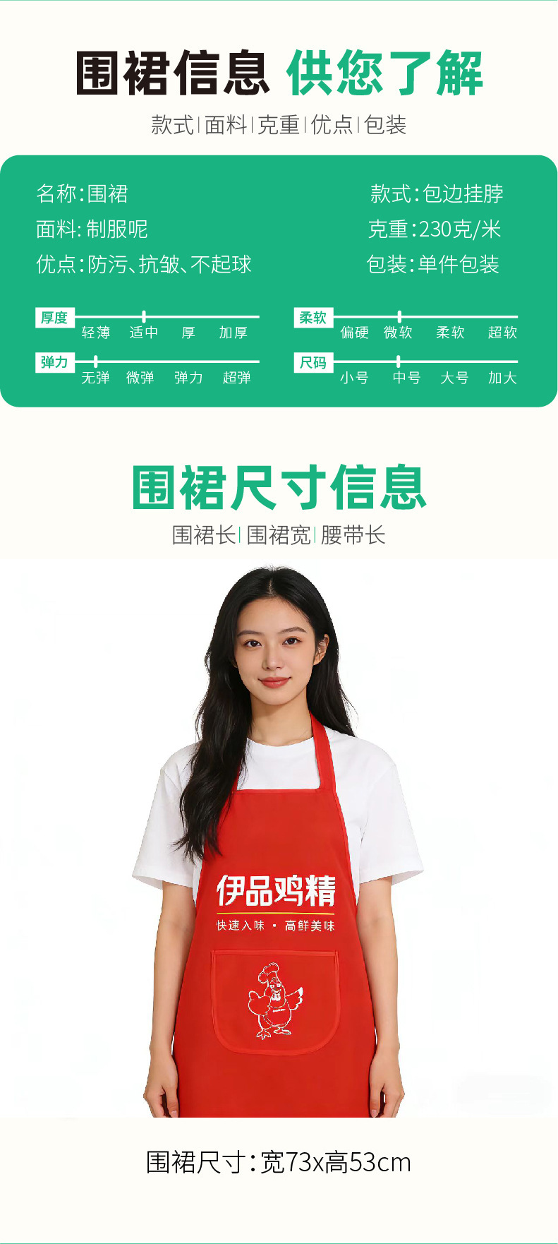 공장 직접 판매 광고 앞치마 여름 경량 맞춤형 로고 인쇄 단색 호텔 작업 주방 방오 앞치마