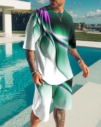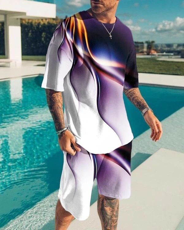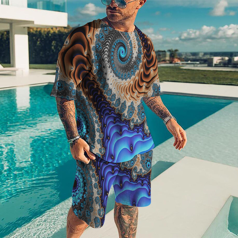 유럽과 미국 2023 여름 남자의 반팔 스포츠 세트 유행 올빼미 3D 인쇄 반팔 비치 바지 세트
