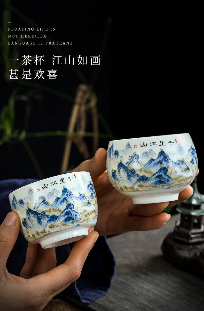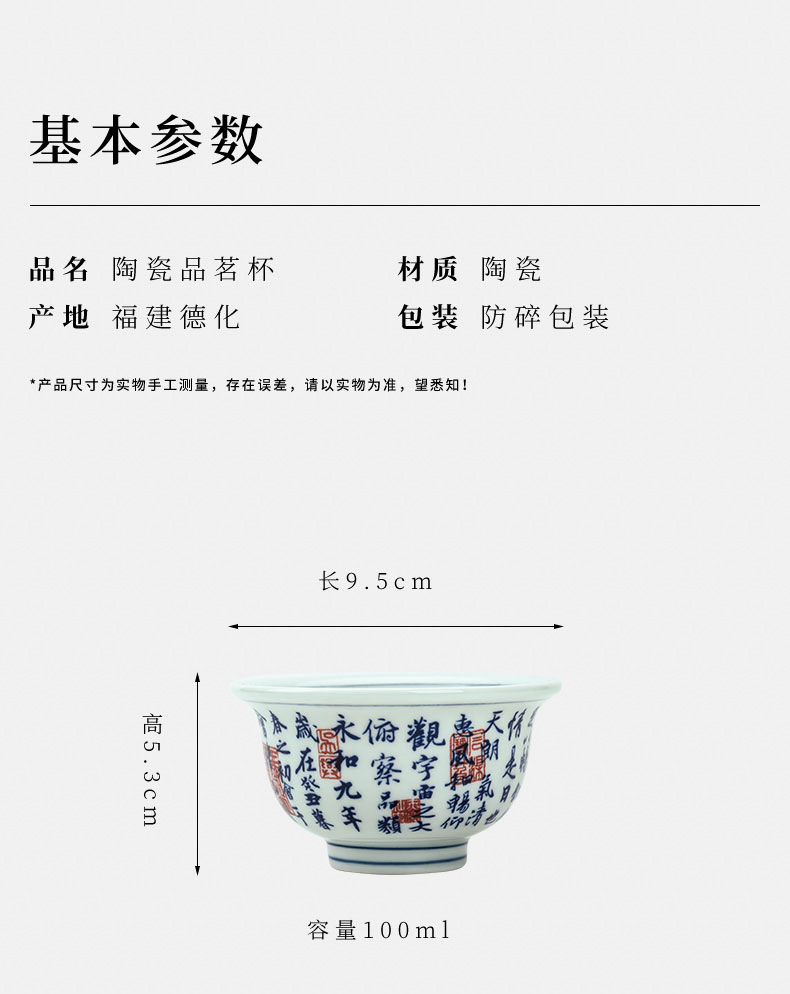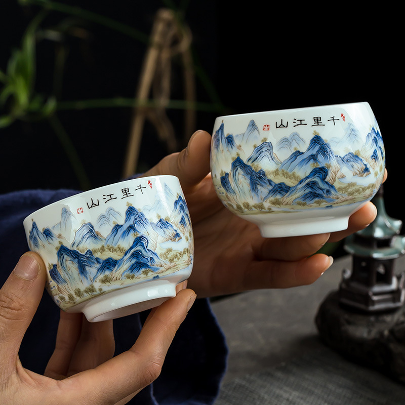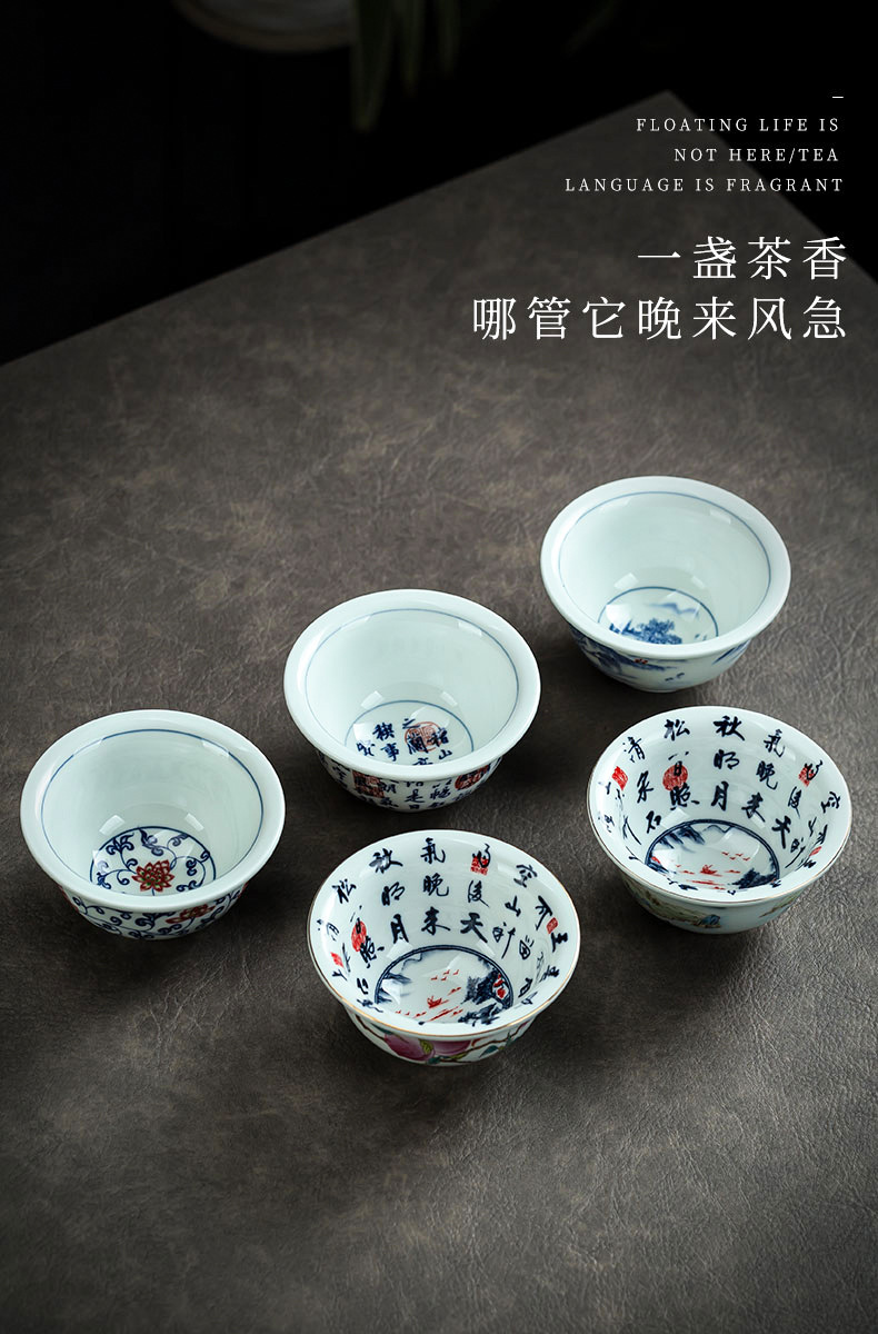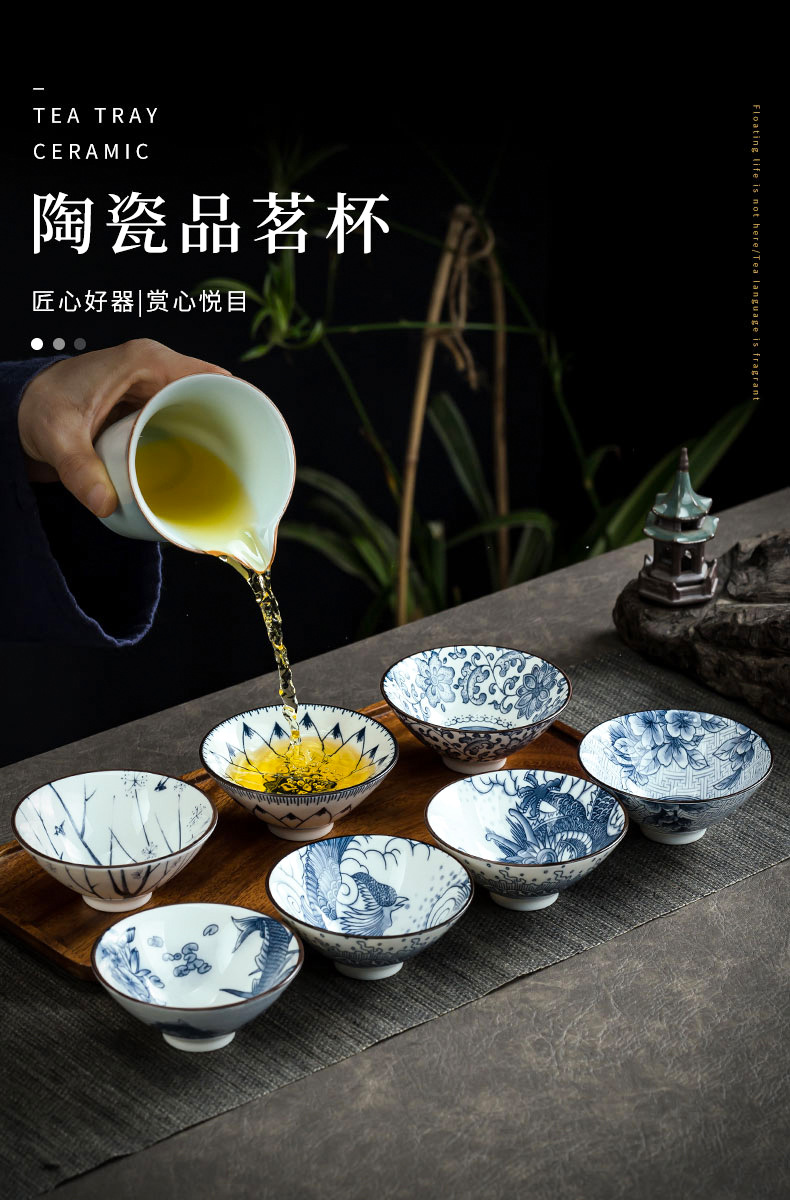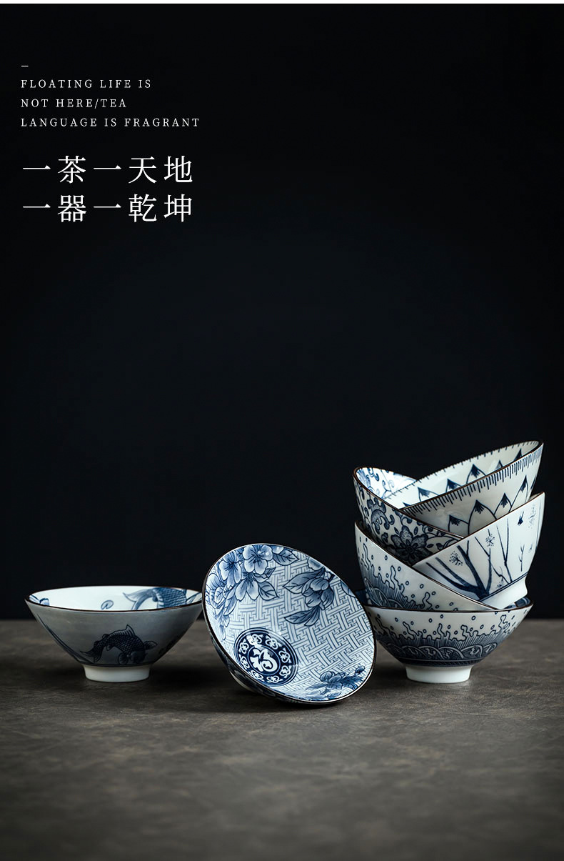파란색과 흰색 도자기 차 그릇 버킷 컵 데화 세라믹 쿵푸 차 세트 시음 컵 쿵푸 차 컵 차 세트 마스터 컵 도매