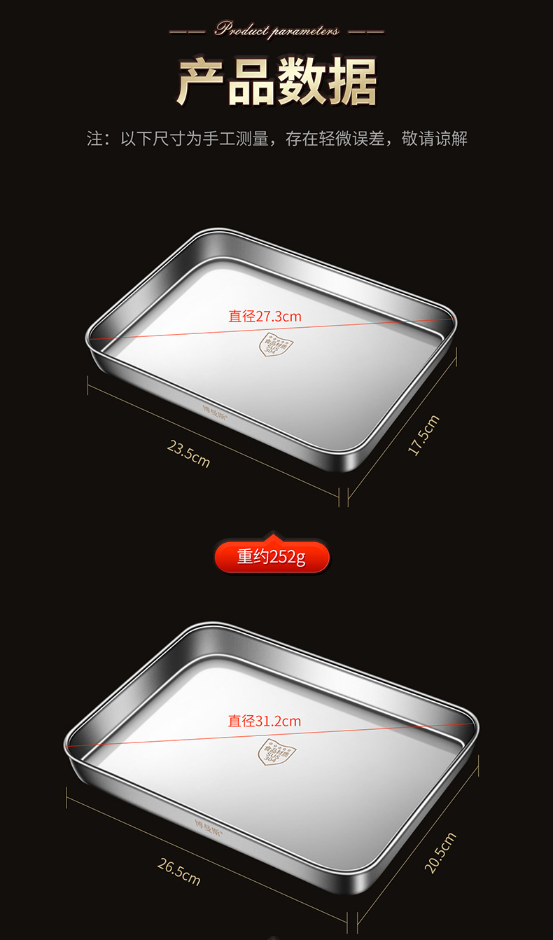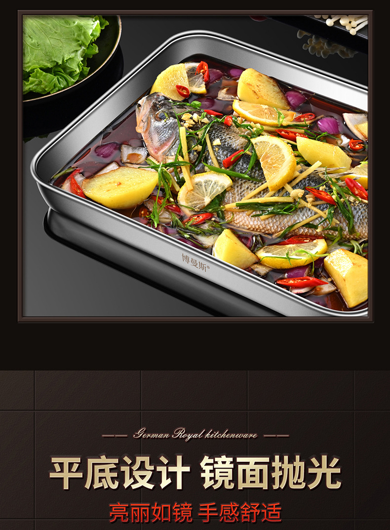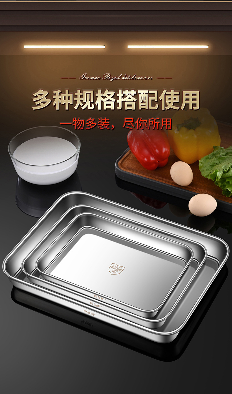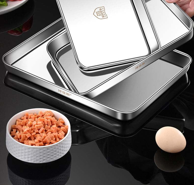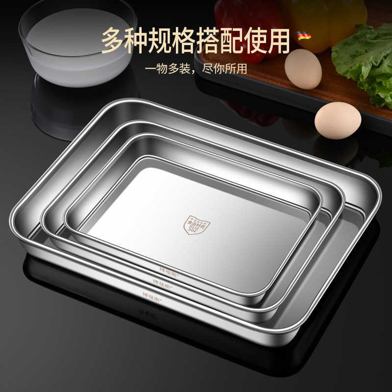 도매 304 스테인레스 스틸 쌀 창자 찜 접시 가정용 바베큐 접시 트레이 베이킹 접시 직사각형 접시 차가운 피부 세트
