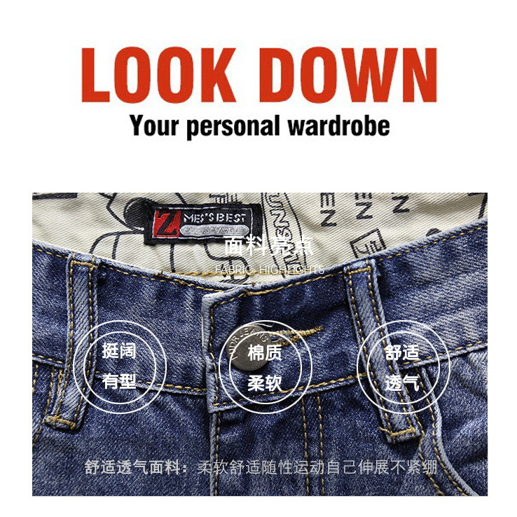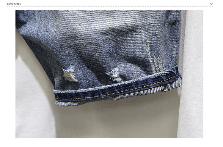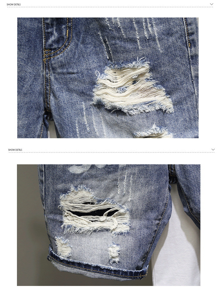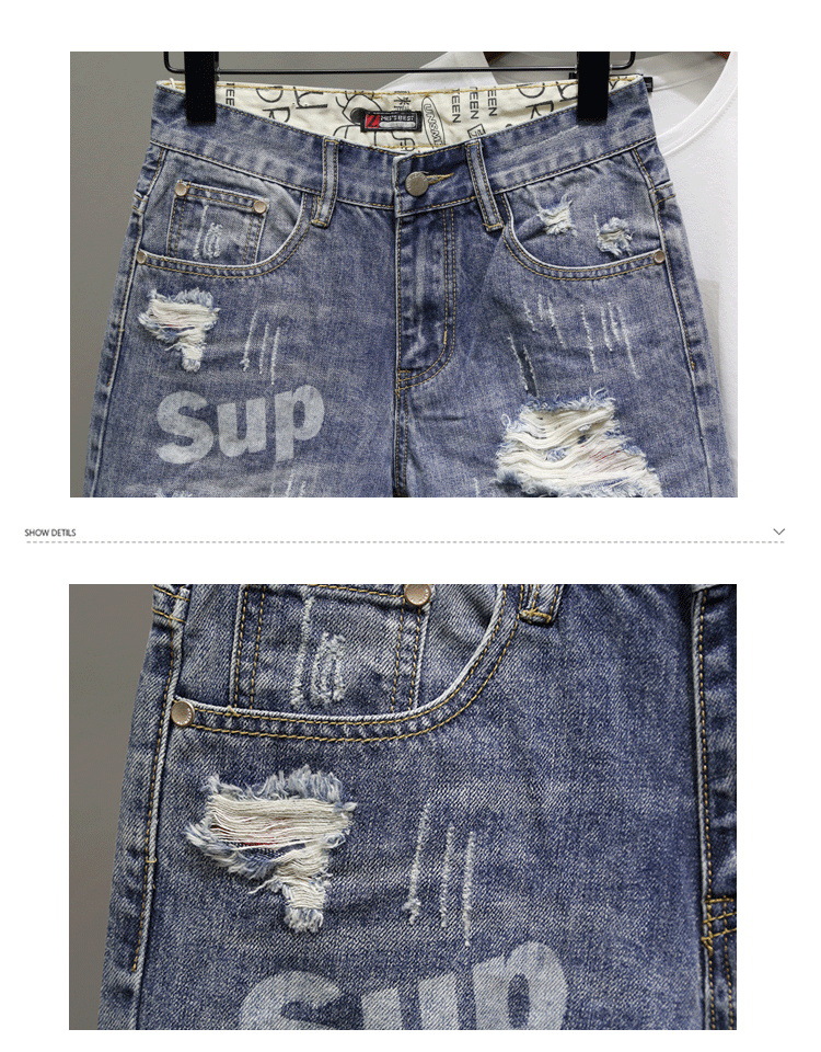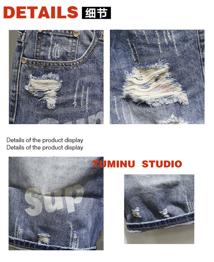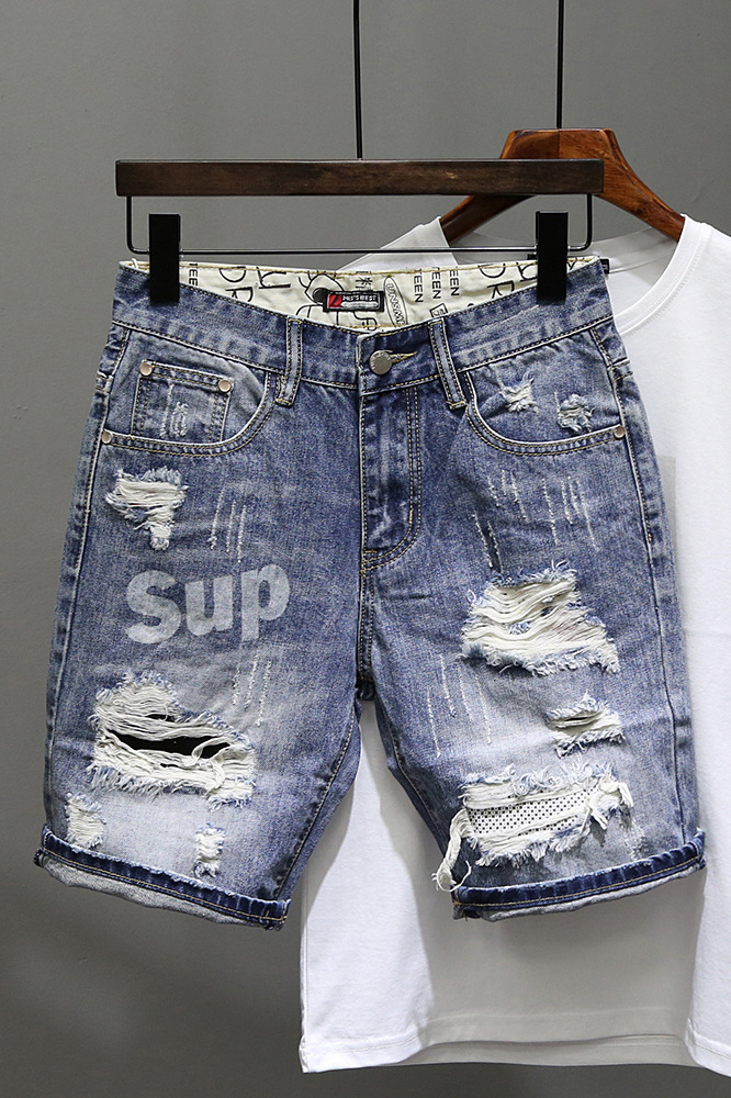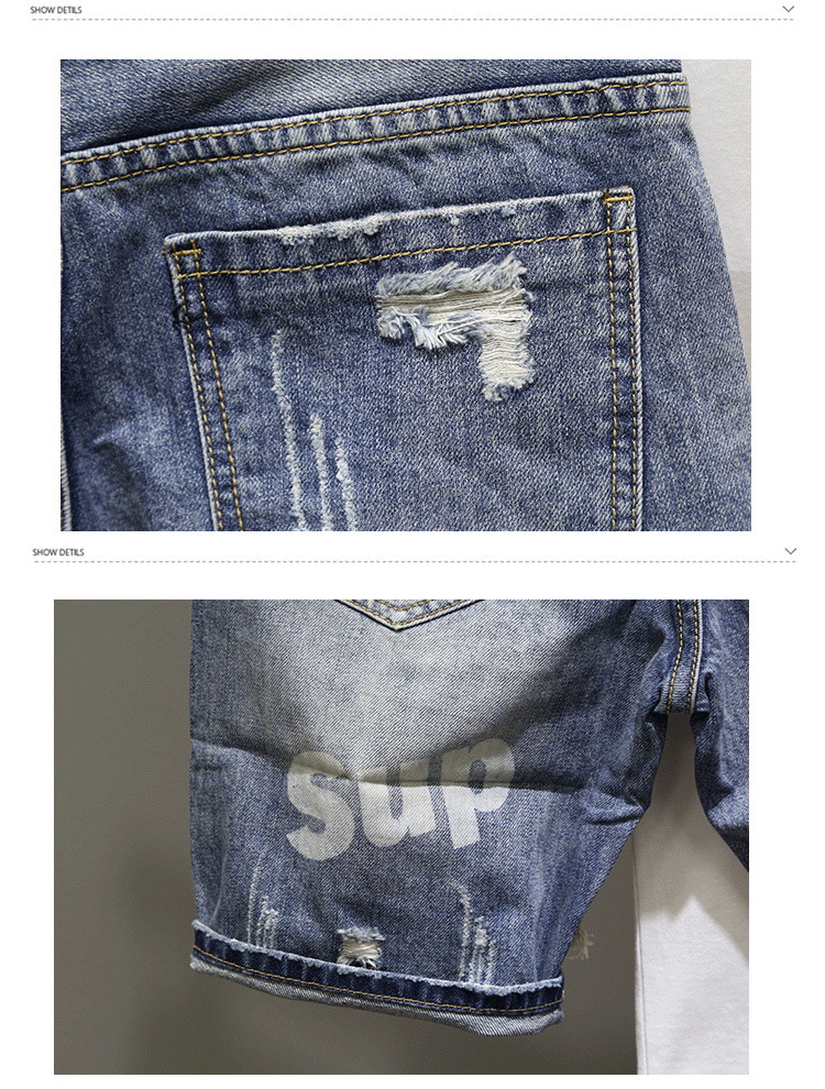 여름 아메리칸 스타일 데님 반바지 남자의 얇은 스트레치 중간 길이 바지 남자의 찢어진 긁기 5 길이 바지 슬림핏 한국 스타일