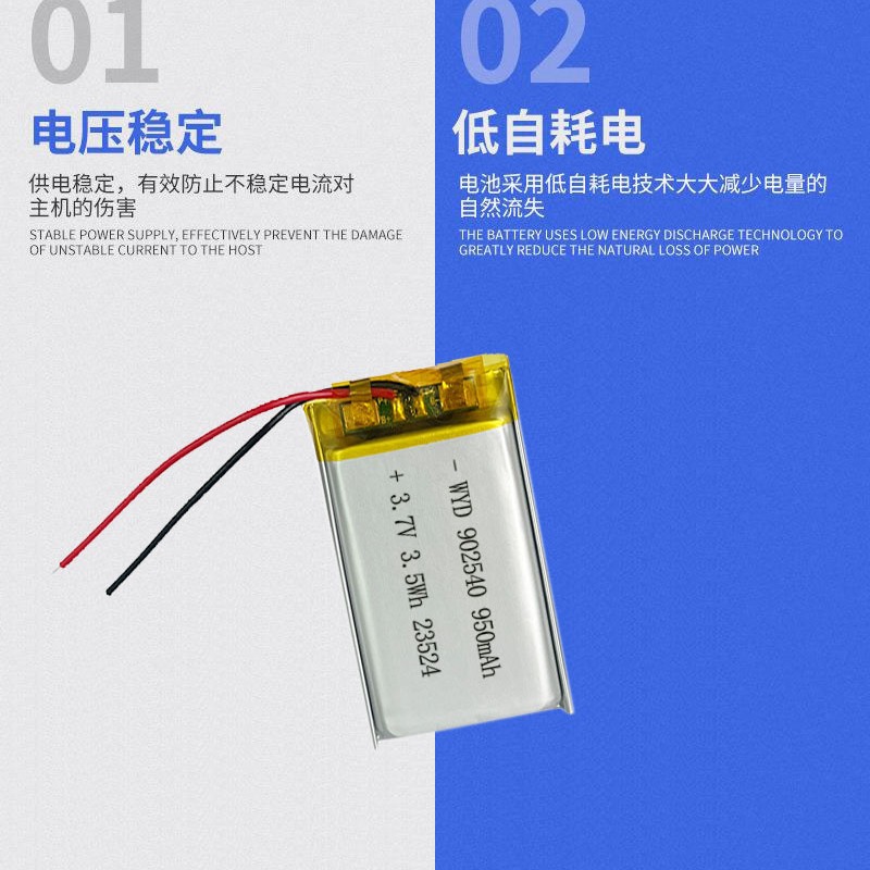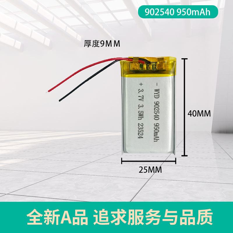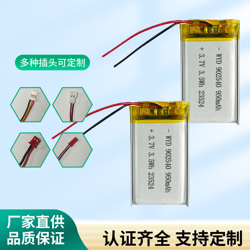Weiyueda 902540 폴리머 리튬 배터리 3.7V 950mAh 미용 기기 공기 청정기 리튬